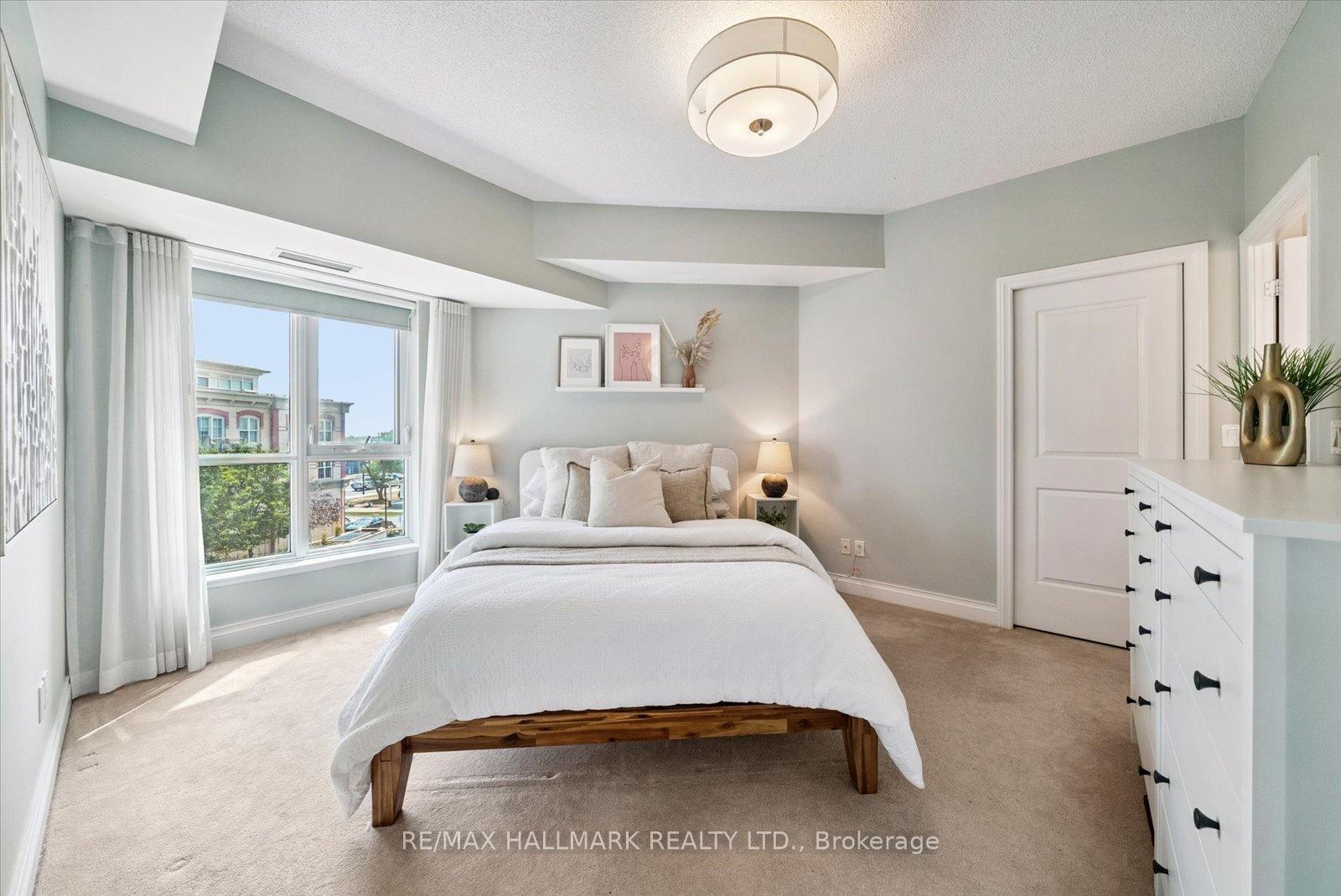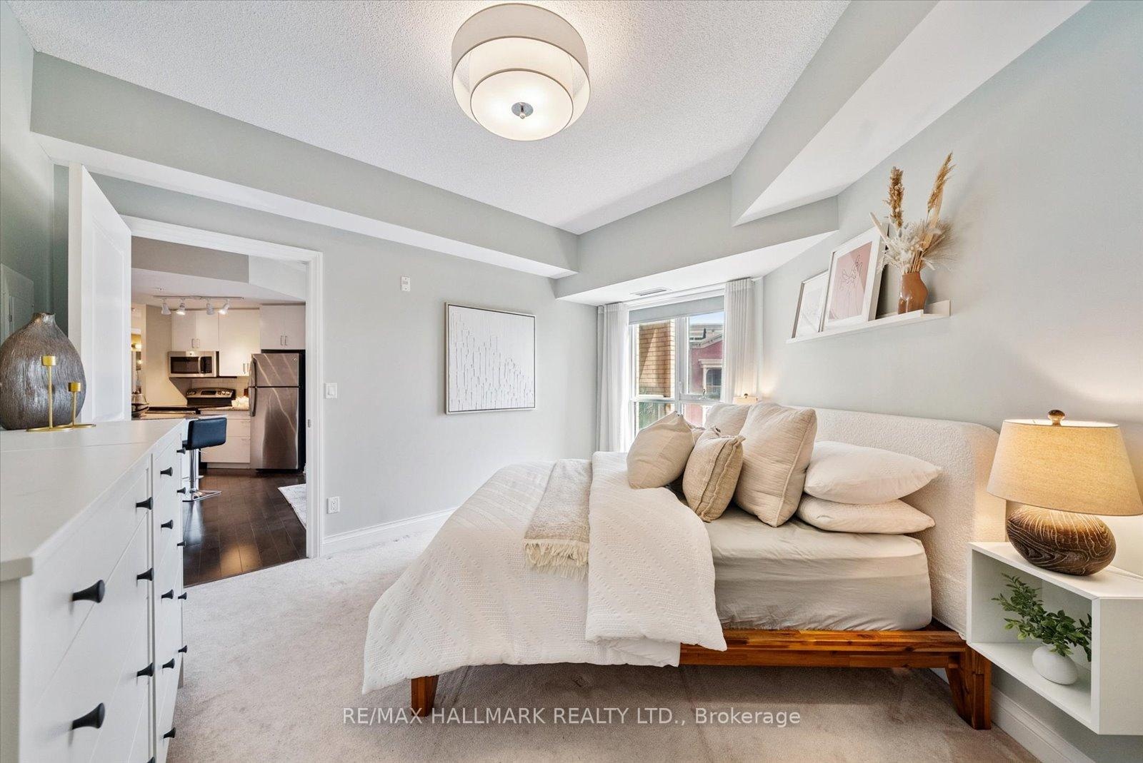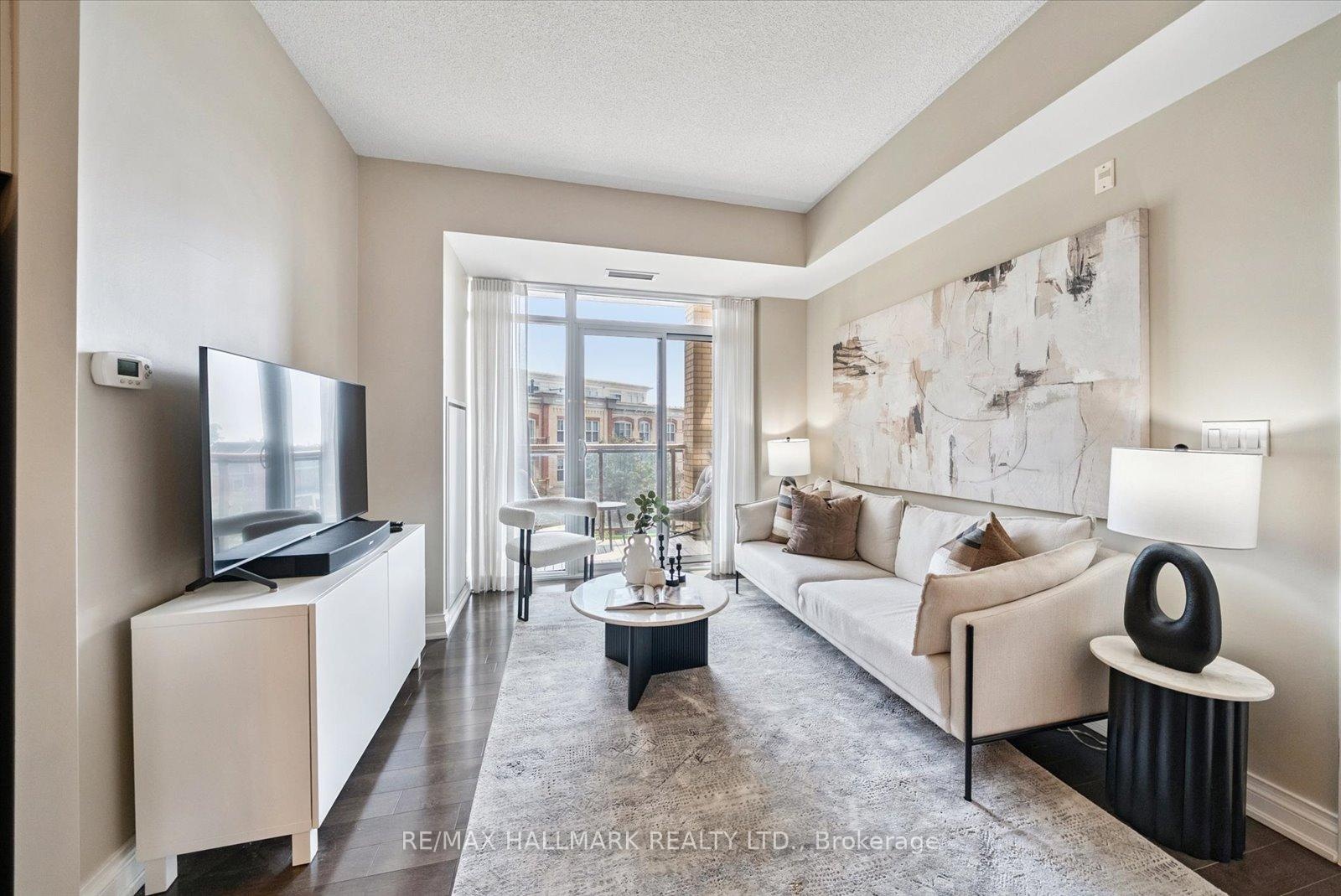 Experience the charm of Main Street living in this bright and stylish boutique condo, where modern design meets small-town warmth. With soaring 9-foot ceilings, southern exposure, and an open-concept layout, this suite offers both sophistication and comfort in one of Markhams most desirable communities.Ideally located in the heart of historic Main Street Unionville, youre just steps from cozy cafés, boutique shops, bakeries, restaurants, and scenic walking trails. Spend your weekends enjoying farmers markets, sipping coffee on sunny patios, or taking peaceful strolls by Toogood Pond all just minutes from your door.The modern kitchen features stone countertops, a breakfast bar, and stainless steel appliances, opening seamlessly to the bright living and dining area. Step onto your private balcony to take in beautiful southern views and glowing sunsets the perfect spot to unwind at the end of the day.The spacious primary bedroom offers a large window, walk-in closet, and a spa-inspired 4-piece ensuite, combining elegance with everyday comfort. Residents also enjoy access to a rooftop terrace with gardens, patio seating, and BBQs, an unbeatable feature for entertaining or relaxing outdoors.For commuters, the Unionville GO Station is just minutes away, offering easy access to downtown Toronto while allowing you to return home to the peaceful charm of Main Street living.This boutique condo captures the perfect balance of lifestyle and location offering modern luxury, walkable convenience, and a community youll love to call home.