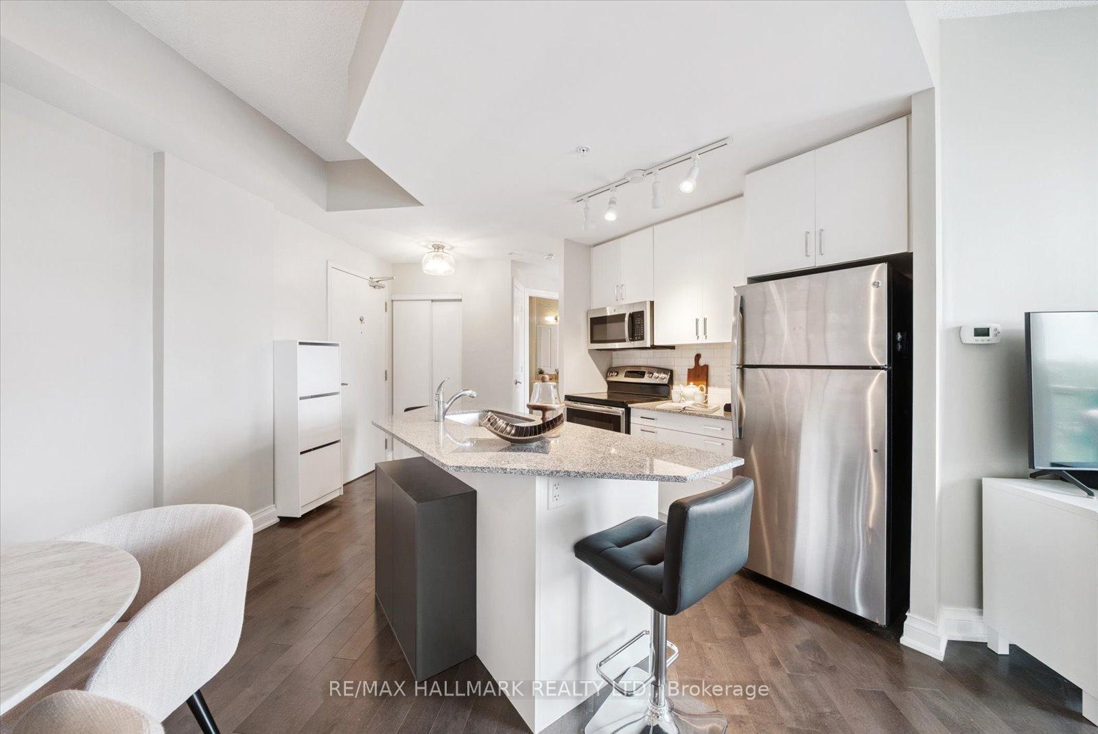 DescriptionExperience the charm of Main Street living in this bright and stylish boutique condo, where modern design meets small-town warmth. With soaring 9-foot ceilings, southern exposure, and an open-concept layout, this suite offers both sophistication and comfort in one of Markhams most desirable communities.Ideally located in the heart of historic Main Street Unionville, youre just steps from cozy cafés, boutique shops, bakeries, restaurants, and scenic walking trails. Spend your weekends enjoying farmers markets, sipping coffee on sunny patios, or taking peaceful strolls by Toogood Pond all just minutes from your door.The modern kitchen features stone countertops, a breakfast bar, and stainless steel appliances, opening seamlessly to the bright living and dining area. Step onto your private balcony to take in beautiful southern views and glowing sunsets the perfect spot to unwind at the end of the day.The spacious primary bedroom offers a large window, walk-in closet, and a spa-inspired 4-piece ensuite, combining elegance with everyday comfort. Residents also enjoy access to a rooftop terrace with gardens, patio seating, and BBQs, an unbeatable feature for entertaining or relaxing outdoors.For commuters, the Unionville GO Station is just minutes away, offering easy access to downtown Toronto while allowing you to return home to the peaceful charm of Main Street living.This boutique condo captures the perfect balance of lifestyle and location offering modern luxury, walkable convenience, and a community youll love to call home.Amenities- Exercise Room