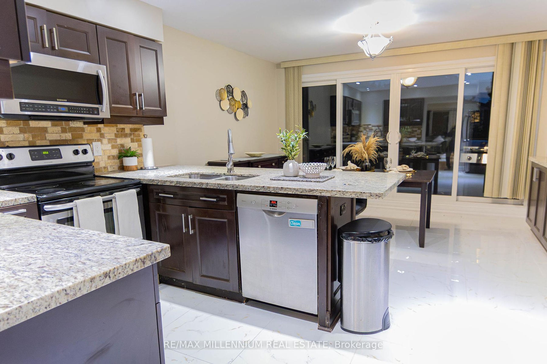 Take advantage of this rare opportunity to own a beautiful 3 level townhouse in the heart of Ajax, just steps from the lake! The maintenance fee includes water, high-speed internet, and cable TV. Featuring 3 spacious bedrooms and a custom gourmet kitchen perfect for entertaining. Enjoy the convenience of a main floor bedroom with a walkout to a private backyard ideal for relaxing or hosting guests. This is the only unit in the complex offering a full 3 piece bathroom on the main level. A new furnace (2022) provides added peace of mind. Includes 2 private parking spaces plus plenty of visitor parking. Residents enjoy resort style amenities including a fully equipped gym, indoor pool, sauna, hot tub, and a large party room. Be part of a vibrant, welcoming community offering yoga, water aerobics, walking groups, dances, card nights, and summer BBQs. This home truly combines location, lifestyle, and value. An incredible opportunity to own near the lake schedule your showing today! Explore the video walk through showcasing the beautiful property and its amazing amenities in the link below. Enjoy the tour! https://f.io/1meExxEa