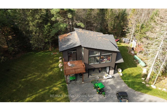DescriptionBuilt in 2023, this beautifully crafted home blends contemporary design with the peaceful charm of a forest setting. Nestled among the trees on a private one-acre lot, it offers the perfect balance of comfort, style, and practicality just 30 minutes from Huntsville. Step inside to an inviting open-concept living space featuring soaring cathedral ceilings, energy-efficient pot lighting, and large windows that frame tranquil views of nature. The kitchen is a chefs dream, equipped with a professional Wolf range and generous counter space for entertaining or everyday cooking. With two spacious bedrooms and two full bathrooms, each with its own large walk-in shower, the layout combines functionality with luxury. An extra-wide staircase easily accommodates a chair-lift, ensuring accessibility for all. The home's thoughtful features continue with a huge three-car garage, complete with in-floor heating, battery-backup garage door openers that can be operated remotely, and a full Generac generator for peace of mind. The main living level is warmed by efficient forced-air heating and air conditioning can be easily added for year-round comfort. Enjoy morning coffee or evening sunsets from the expansive decks at both the front and rear, surrounded by the quiet beauty of the forest. If you've been searching for a modern, energy-smart home with privacy, practicality, and just the right touch of luxury - this one checks every box.Amenities- Deck