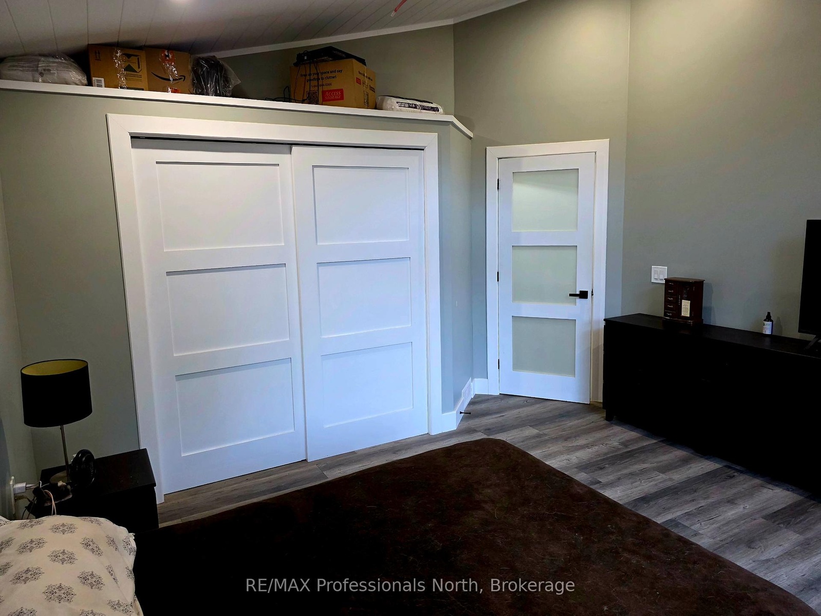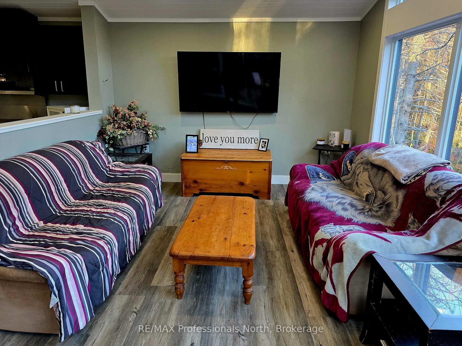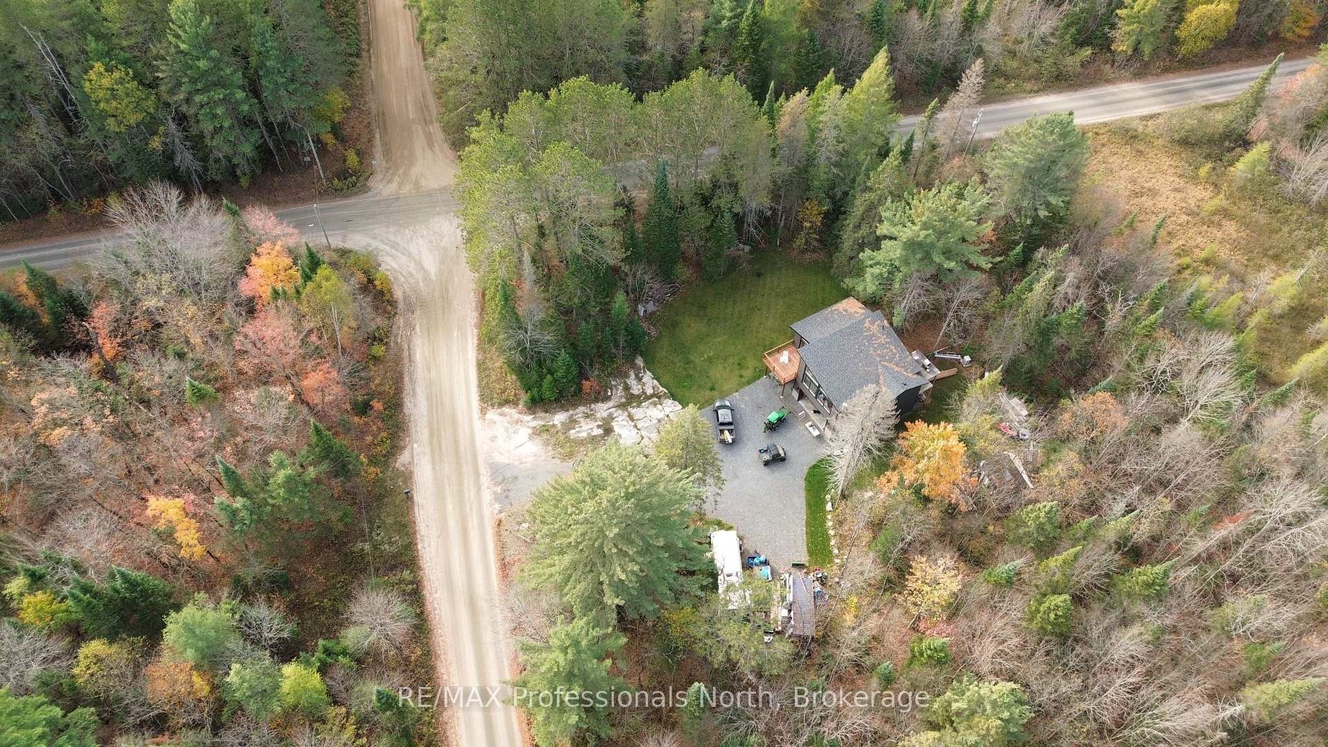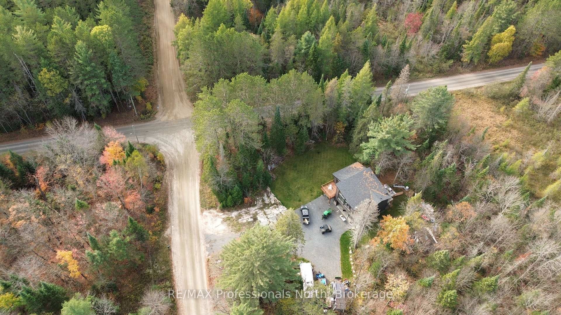 Built in 2023, this beautifully crafted home blends contemporary design with the peaceful charm of a forest setting. Nestled among the trees on a private one-acre lot, it offers the perfect balance of comfort, style, and practicality just 30 minutes from Huntsville. Step inside to an inviting open-concept living space featuring soaring cathedral ceilings, energy-efficient pot lighting, and large windows that frame tranquil views of nature. The kitchen is a chefs dream, equipped with a professional Wolf range and generous counter space for entertaining or everyday cooking. With two spacious bedrooms and two full bathrooms, each with its own large walk-in shower, the layout combines functionality with luxury. An extra-wide staircase easily accommodates a chair-lift, ensuring accessibility for all. The home's thoughtful features continue with a huge three-car garage, complete with in-floor heating, battery-backup garage door openers that can be operated remotely, and a full Generac generator for peace of mind. The main living level is warmed by efficient forced-air heating and air conditioning can be easily added for year-round comfort. Enjoy morning coffee or evening sunsets from the expansive decks at both the front and rear, surrounded by the quiet beauty of the forest. If you've been searching for a modern, energy-smart home with privacy, practicality, and just the right touch of luxury - this one checks every box.