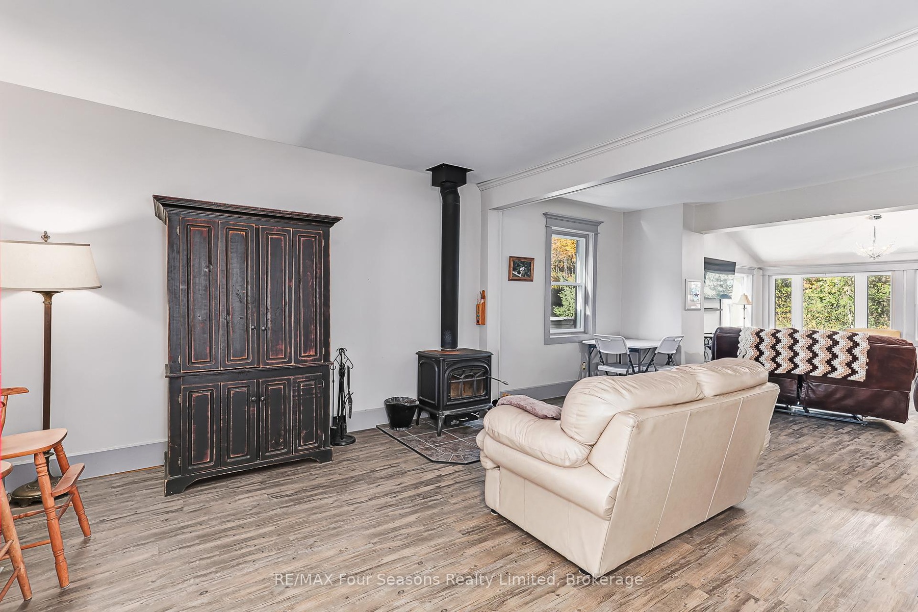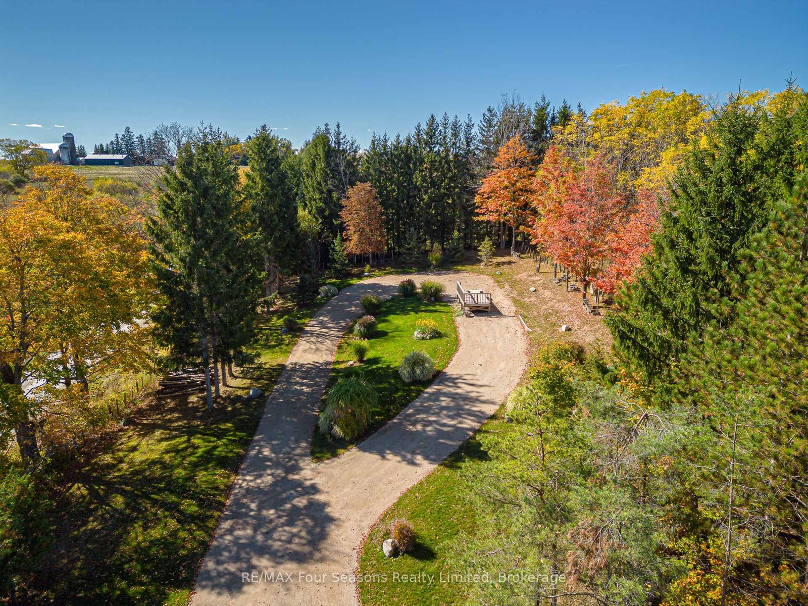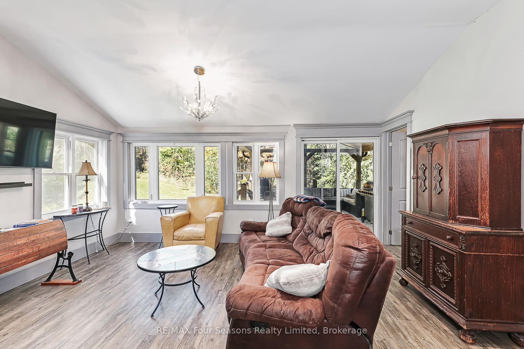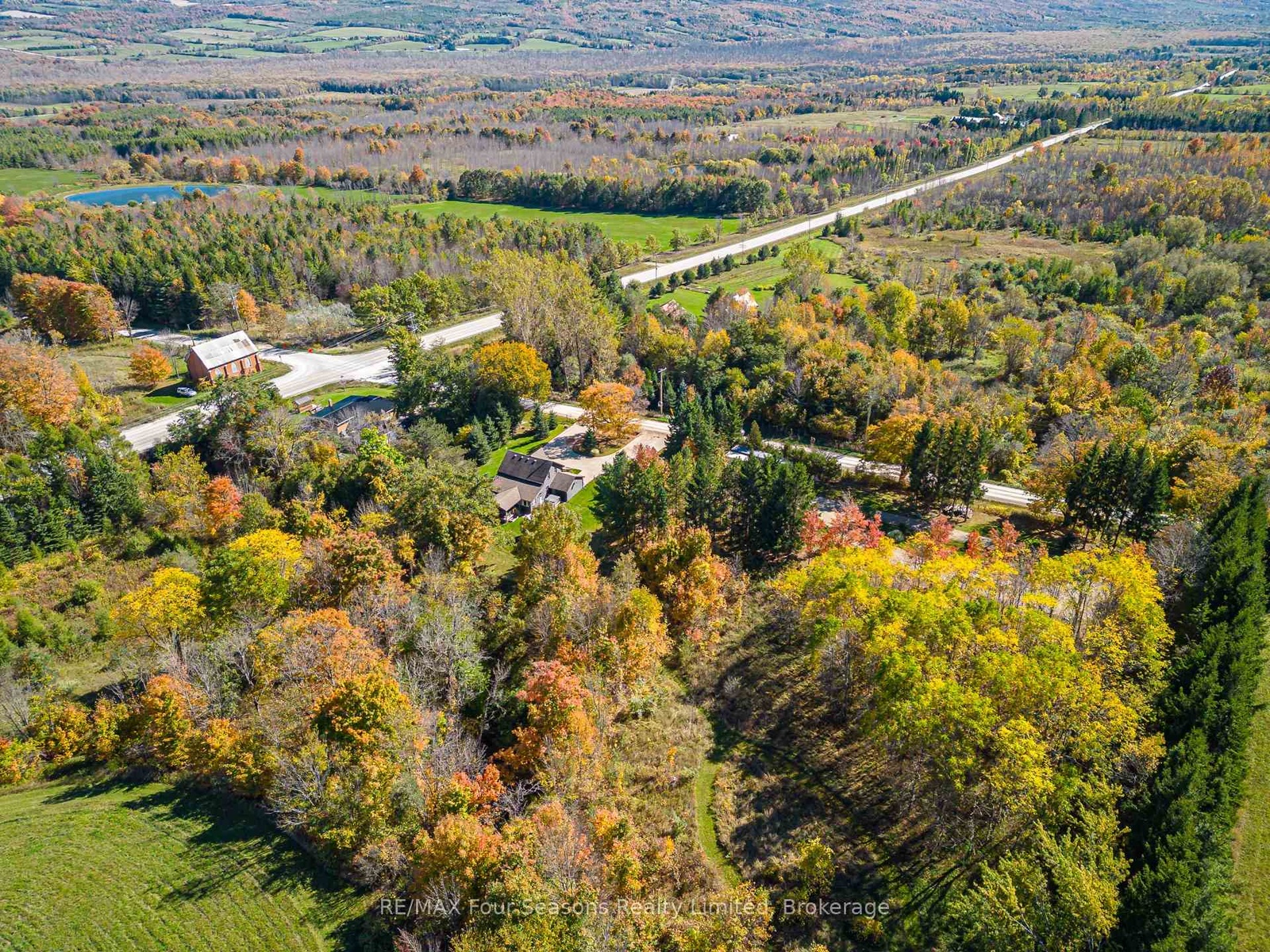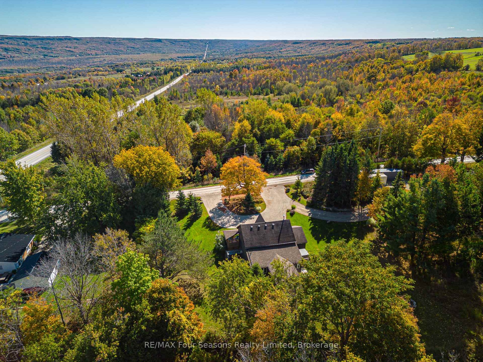Classic country style Beaver Valley home on 1.3 beautifully landscaped acres of land. Full width covered porch with seating area at the front door. Spacious and bright interior main floor with large seating areas and dining room with wood stove. Sliding door walk out to 16'x14' covered back deck with glass railings overlooking ravine, stream and mature trees. Main floor primary suite with 3pc ensuite bath. Upstairs 4 guest bedrooms. House is heated and cooled by Geothermal forced air furnace. Full unfinished basement has plenty of storage and a walk out to ground level greenhouse. Single car attached garage. Ornamental grasses, mature trees and natural wooded surroundings combine to create a private setting. On the hillside above the house is a perfect spot for a guest house or rv / trailer capturing countryside views to Old Baldy. This home is in close proximity to the Bruce Trail, only 8 kms to Kimberley and 11kms to Beaver Valley Ski Club. Meaford Harbour is 15km to the north, as well as many other recreation areas. A peaceful location for comfortable year round country living.