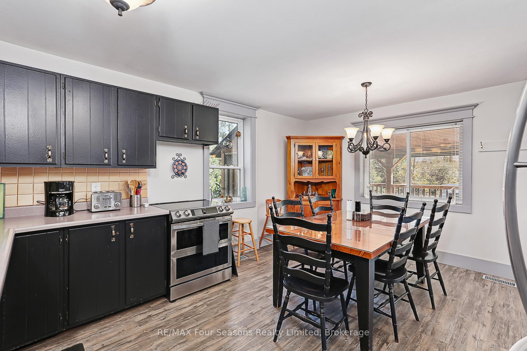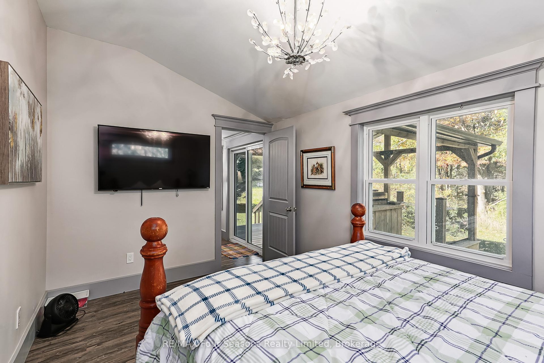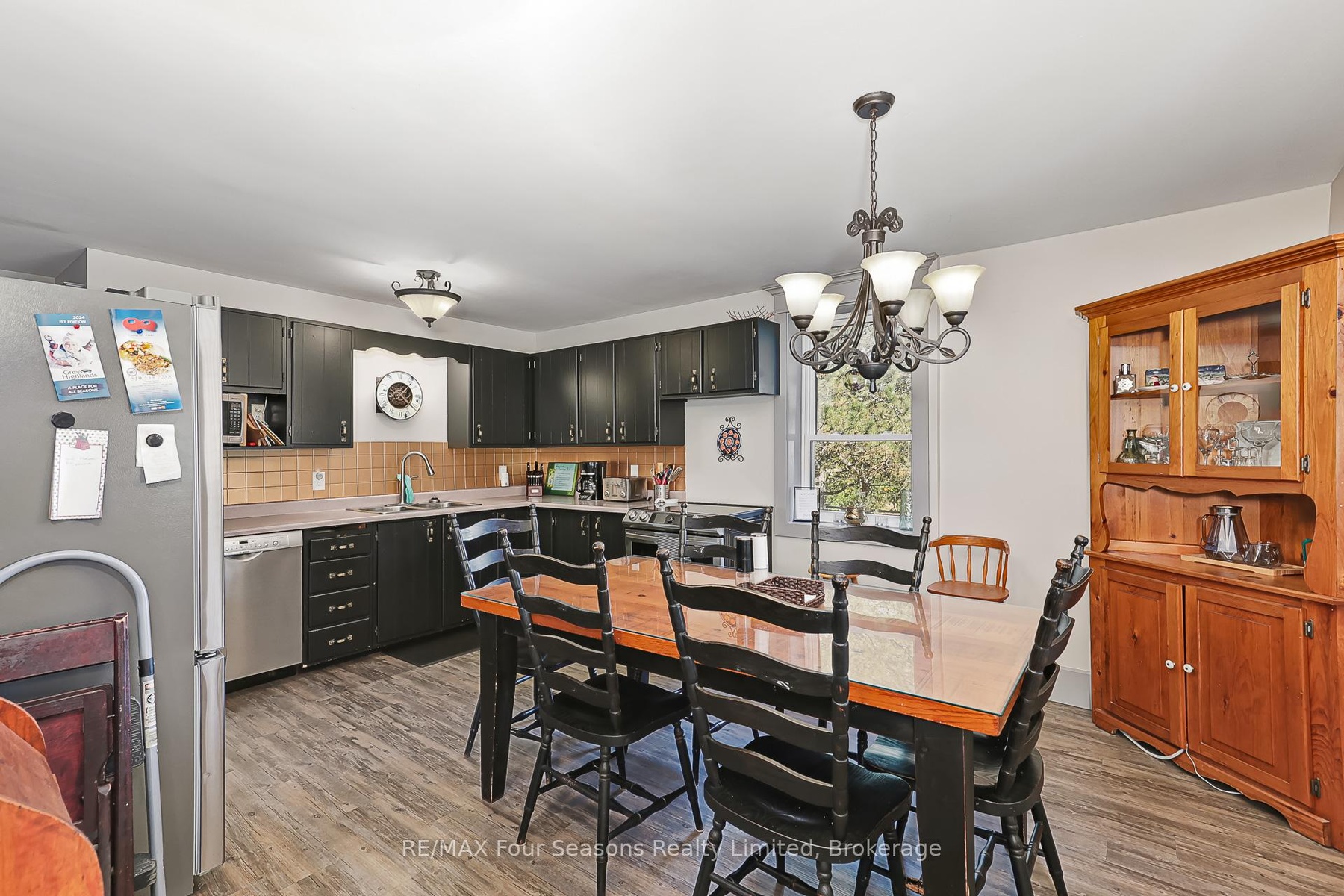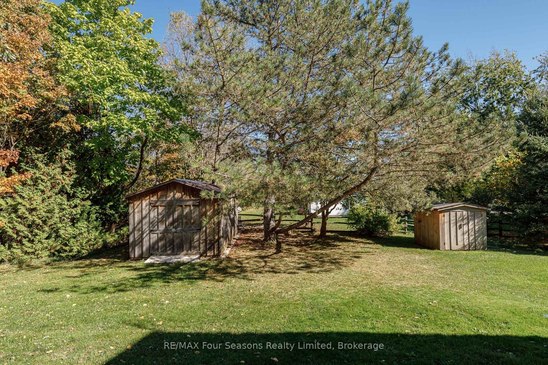 Classic country style Beaver Valley home on 1.3 beautifully landscaped acres of land. Full width covered porch with seating area at the front door. Spacious and bright interior main floor with large seating areas and dining room with wood stove. Sliding door walk out to 16'x14' covered back deck with glass railings overlooking ravine, stream and mature trees. Main floor primary suite with 3pc ensuite bath. Upstairs 4 guest bedrooms. House is heated and cooled by Geothermal forced air furnace. Full unfinished basement has plenty of storage and a walk out to ground level greenhouse. Single car attached garage. Ornamental grasses, mature trees and natural wooded surroundings combine to create a private setting. On the hillside above the house is a perfect spot for a guest house or rv / trailer capturing countryside views to Old Baldy. This home is in close proximity to the Bruce Trail, only 8 kms to Kimberley and 11kms to Beaver Valley Ski Club. Meaford Harbour is 15km to the north, as well as many other recreation areas. A peaceful location for comfortable year round country living.
