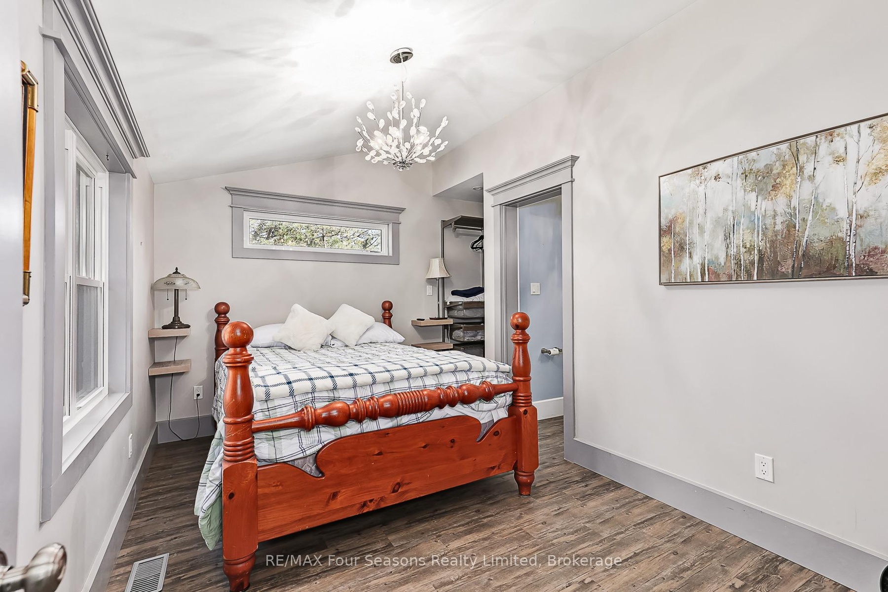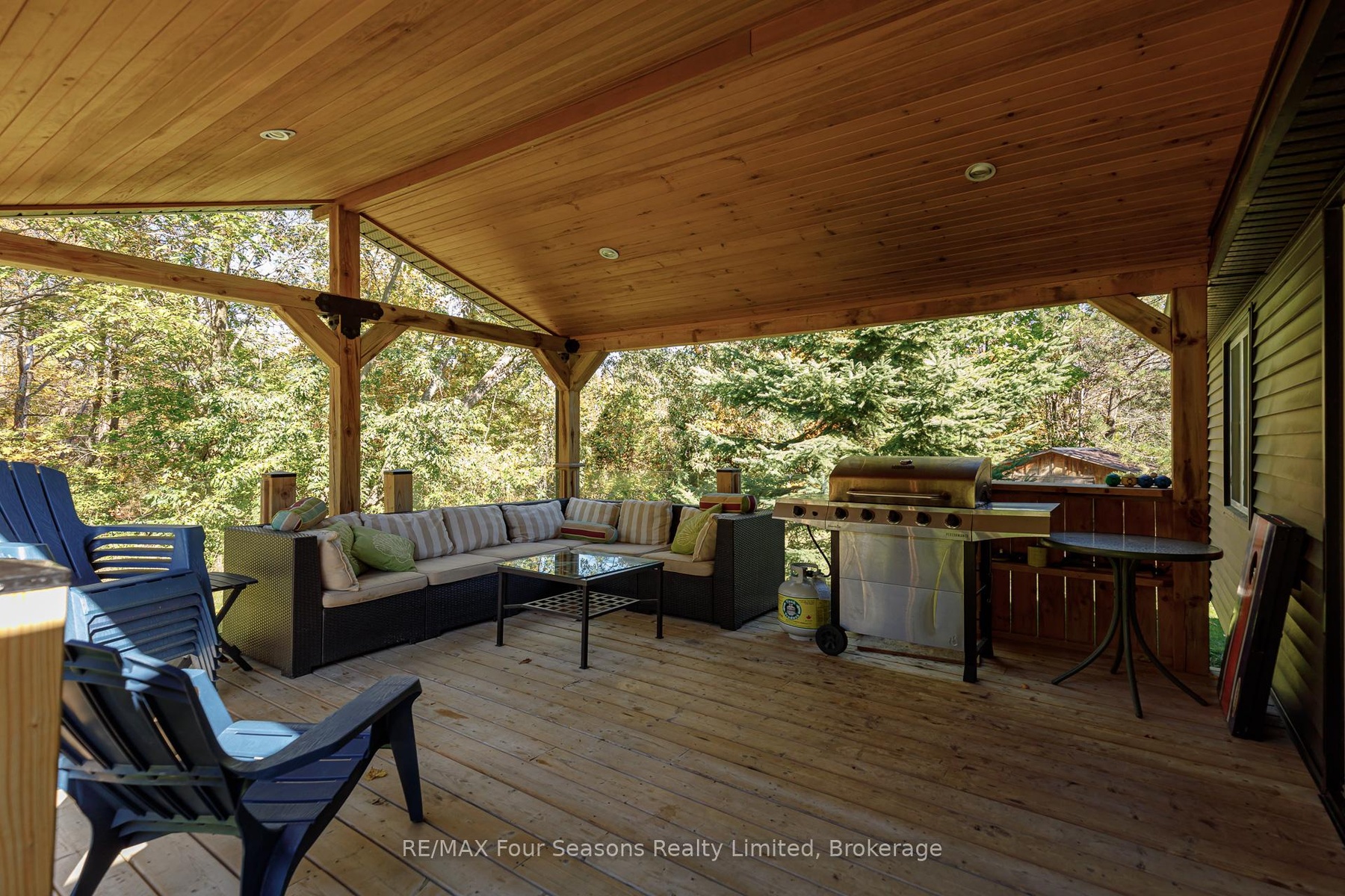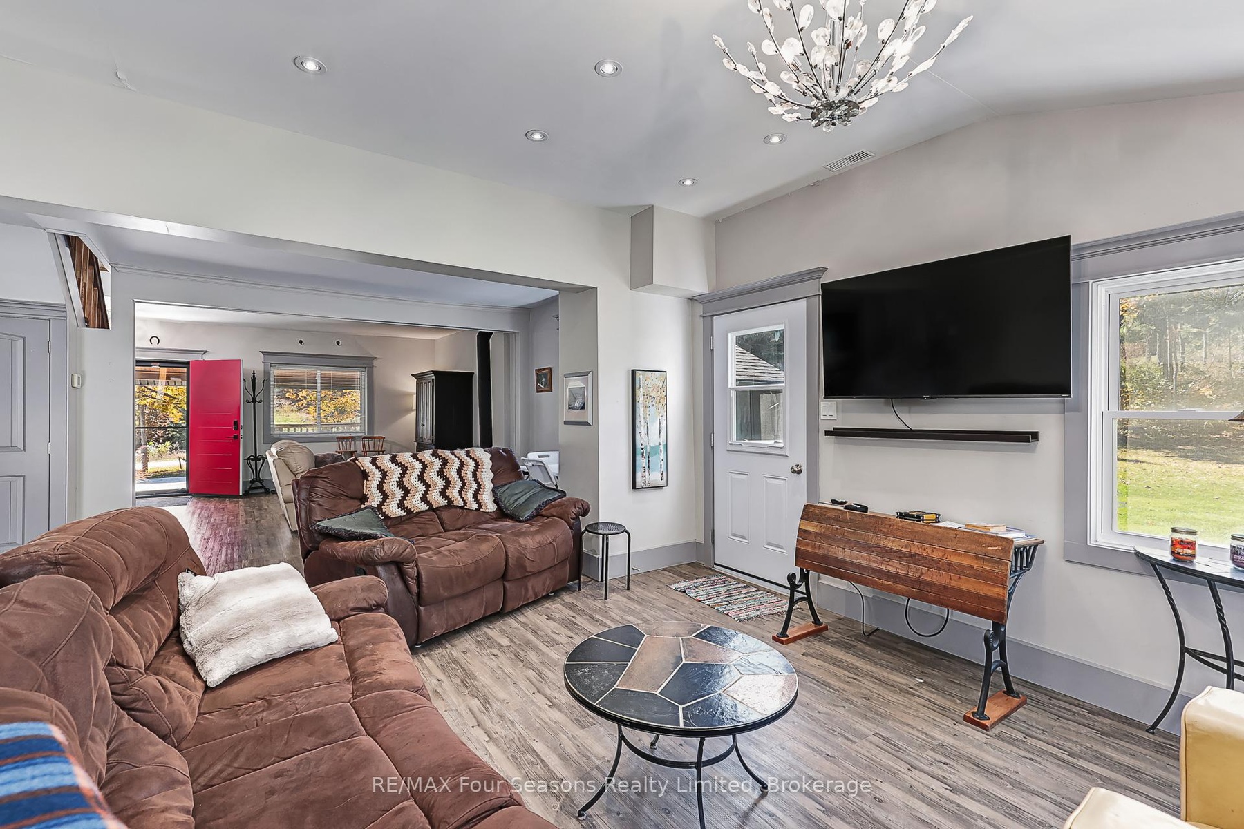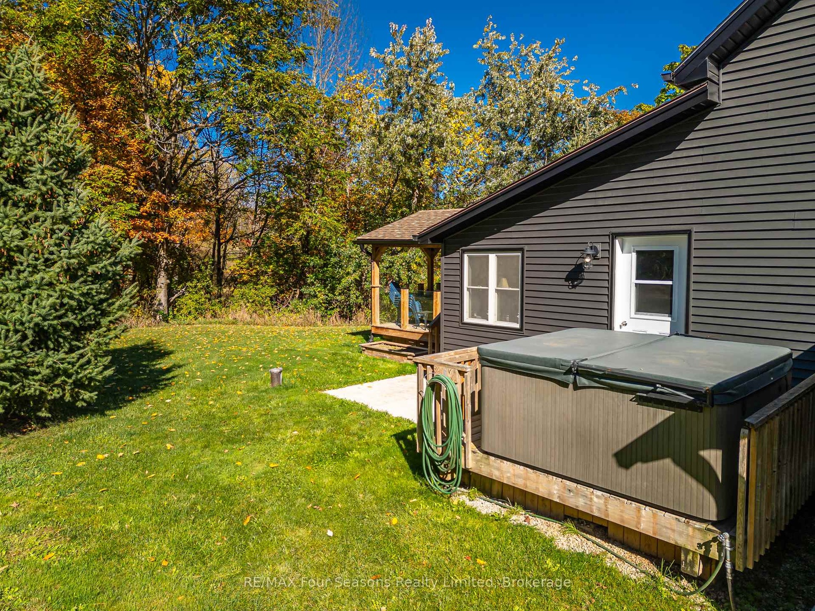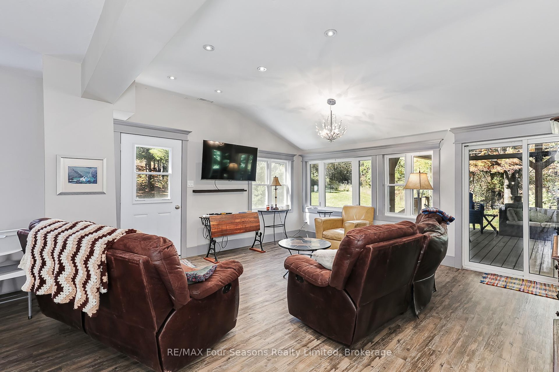 Classic country style Beaver Valley home on 1.3 beautifully landscaped acres of land. Full width covered porch with seating area at the front door. Spacious and bright interior main floor with large seating areas and dining room with wood stove. Sliding door walk out to 16'x14' covered back deck with glass railings overlooking ravine, stream and mature trees. Main floor primary suite with 3pc ensuite bath. Upstairs 4 guest bedrooms. House is heated and cooled by Geothermal forced air furnace. Full unfinished basement has plenty of storage and a walk out to ground level greenhouse. Single car attached garage. Ornamental grasses, mature trees and natural wooded surroundings combine to create a private setting. On the hillside above the house is a perfect spot for a guest house or rv / trailer capturing countryside views to Old Baldy. This home is in close proximity to the Bruce Trail, only 8 kms to Kimberley and 11kms to Beaver Valley Ski Club. Meaford Harbour is 15km to the north, as well as many other recreation areas. A peaceful location for comfortable year round country living.