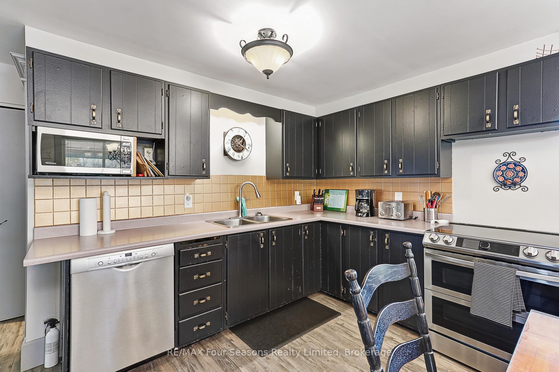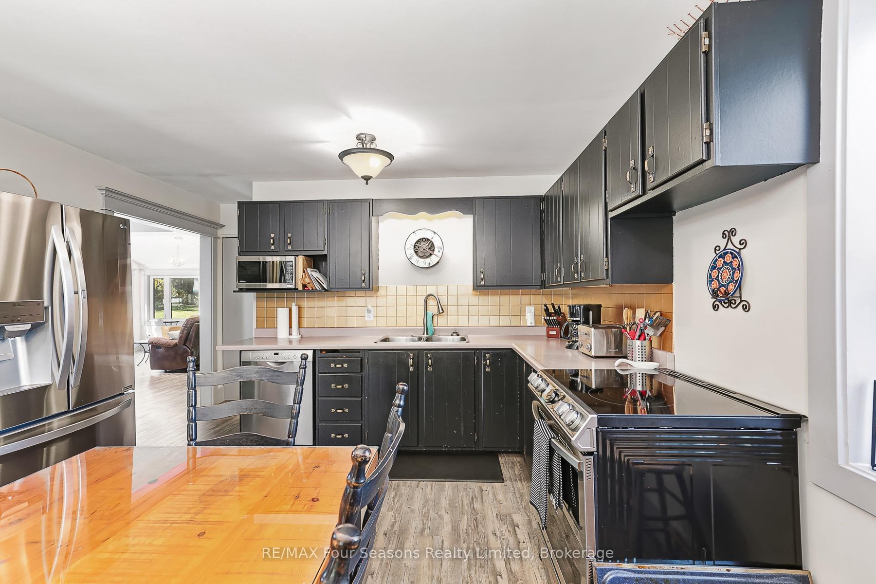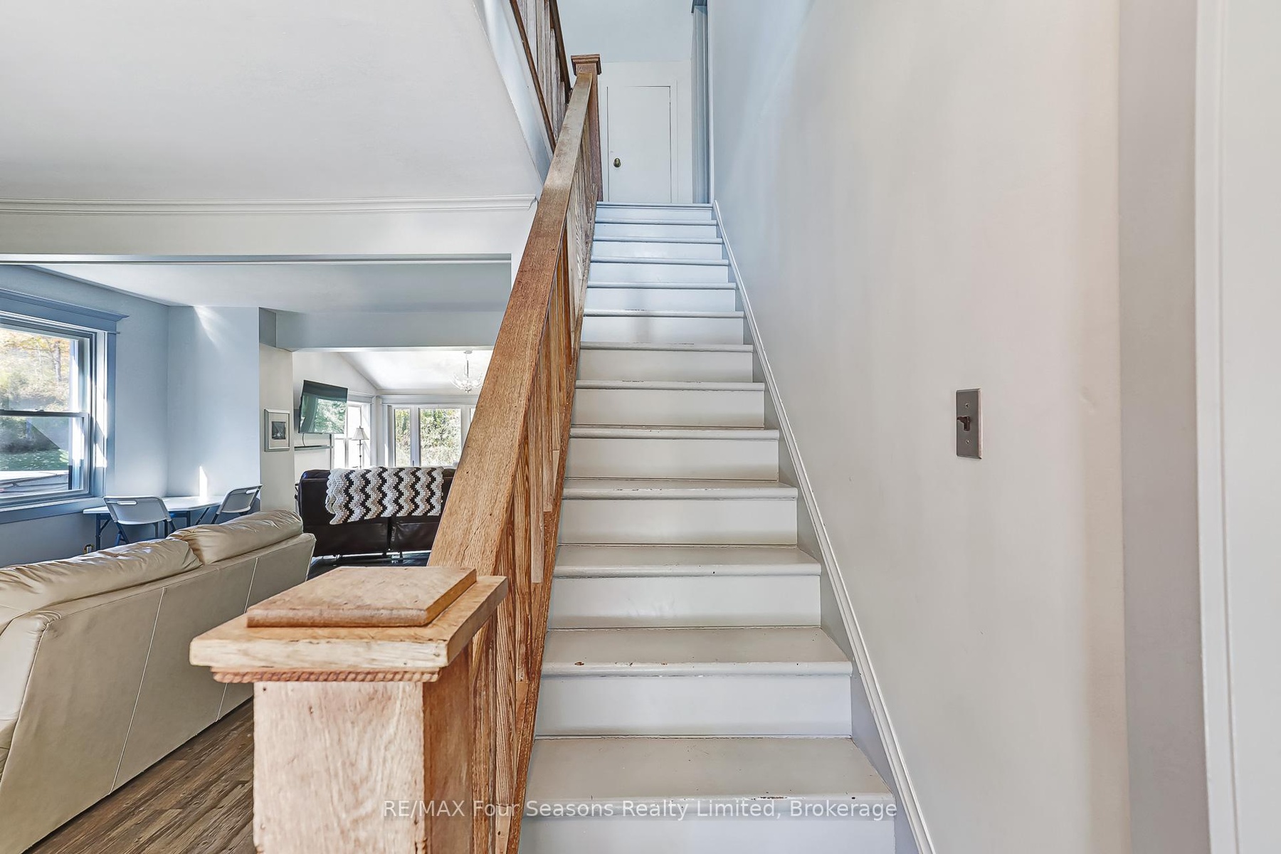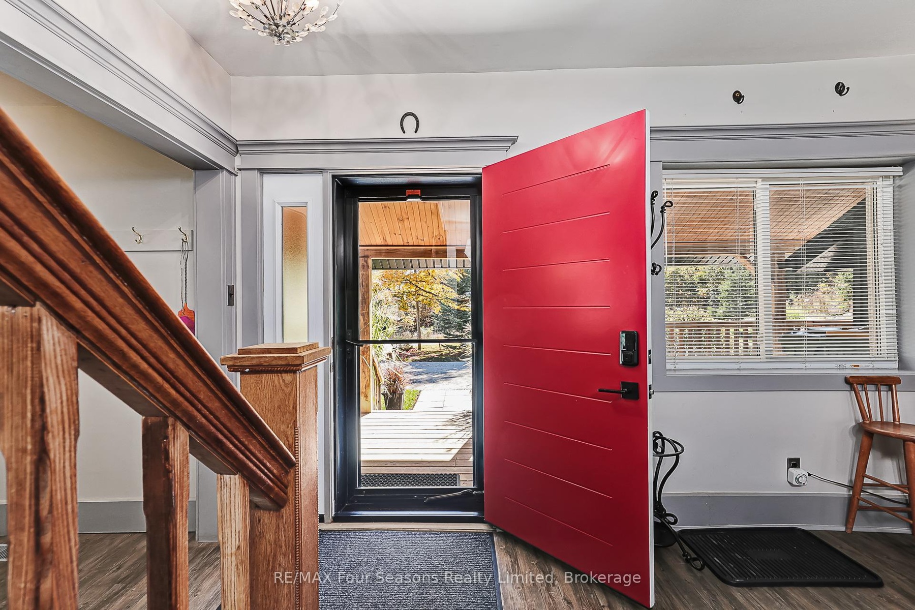 DescriptionClassic country style Beaver Valley home on 1.3 beautifully landscaped acres of land. Full width covered porch with seating area at the front door. Spacious and bright interior main floor with large seating areas and dining room with wood stove. Sliding door walk out to 16'x14' covered back deck with glass railings overlooking ravine, stream and mature trees. Main floor primary suite with 3pc ensuite bath. Upstairs 4 guest bedrooms. House is heated and cooled by Geothermal forced air furnace. Full unfinished basement has plenty of storage and a walk out to ground level greenhouse. Single car attached garage. Ornamental grasses, mature trees and natural wooded surroundings combine to create a private setting. On the hillside above the house is a perfect spot for a guest house or rv / trailer capturing countryside views to Old Baldy. This home is in close proximity to the Bruce Trail, only 8 kms to Kimberley and 11kms to Beaver Valley Ski Club. Meaford Harbour is 15km to the north, as well as many other recreation areas. A peaceful location for comfortable year round country living.Amenities- Auto Garage Door Remote
