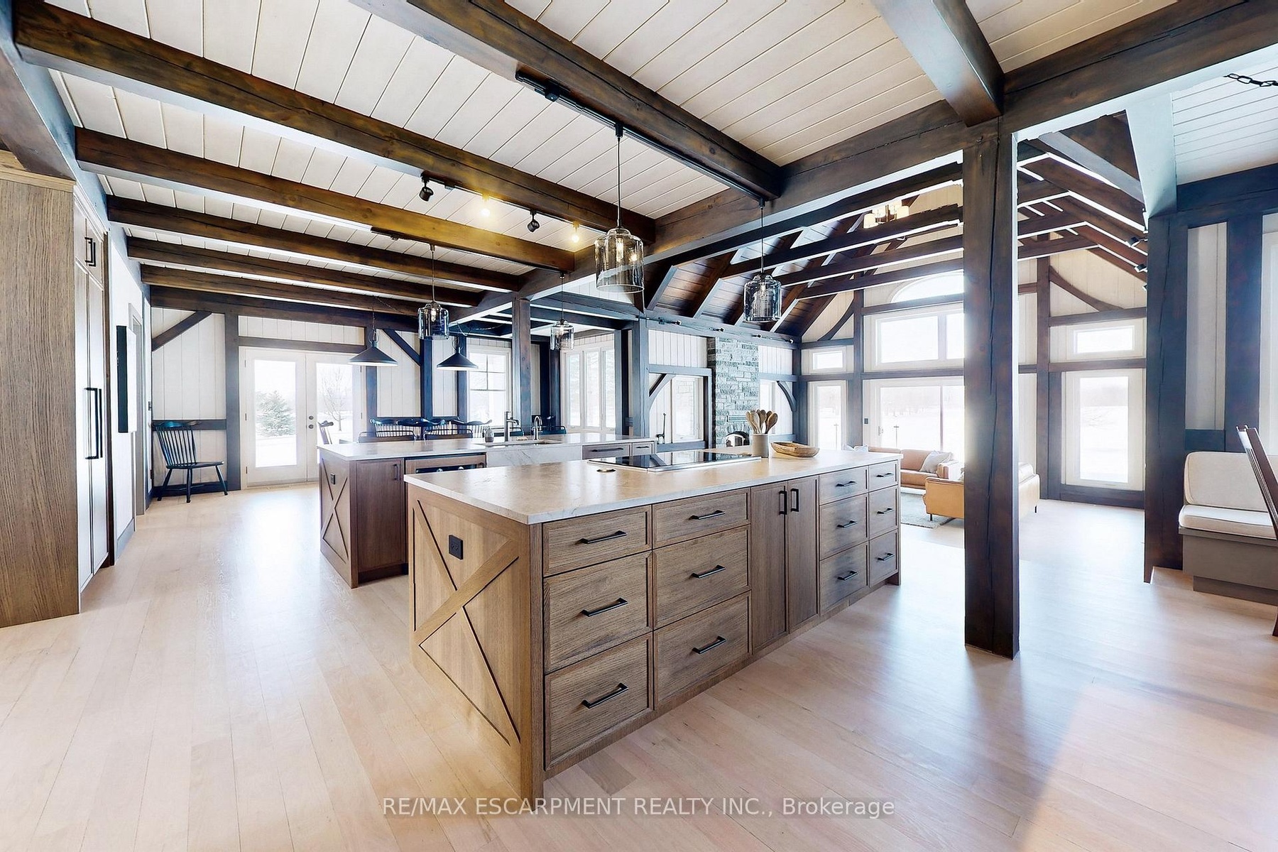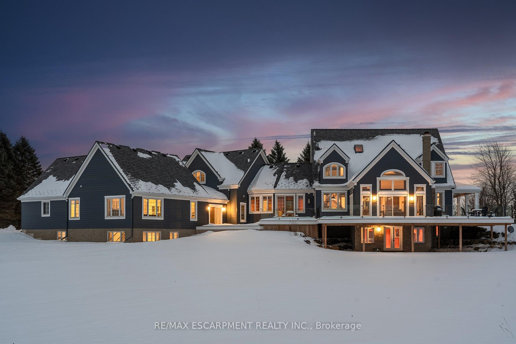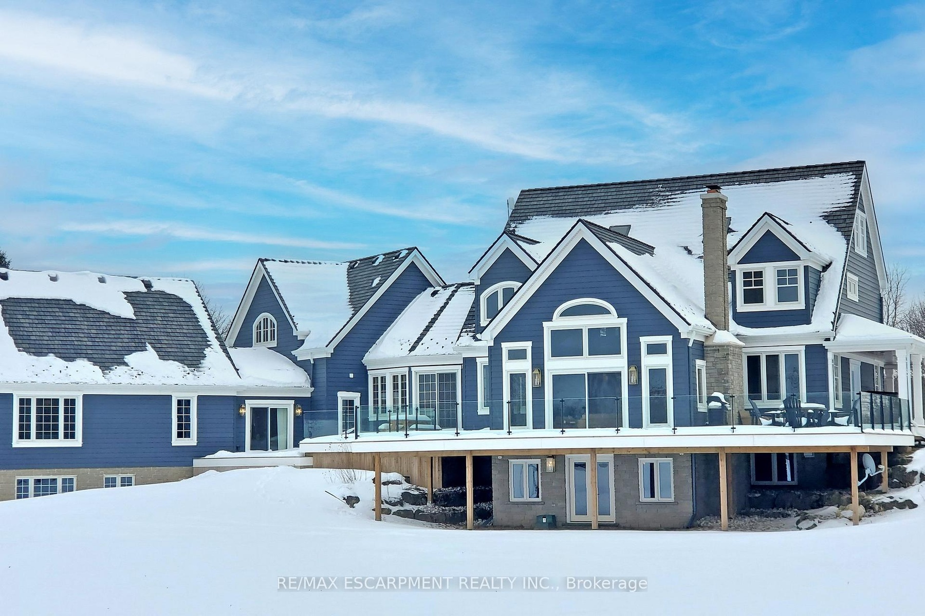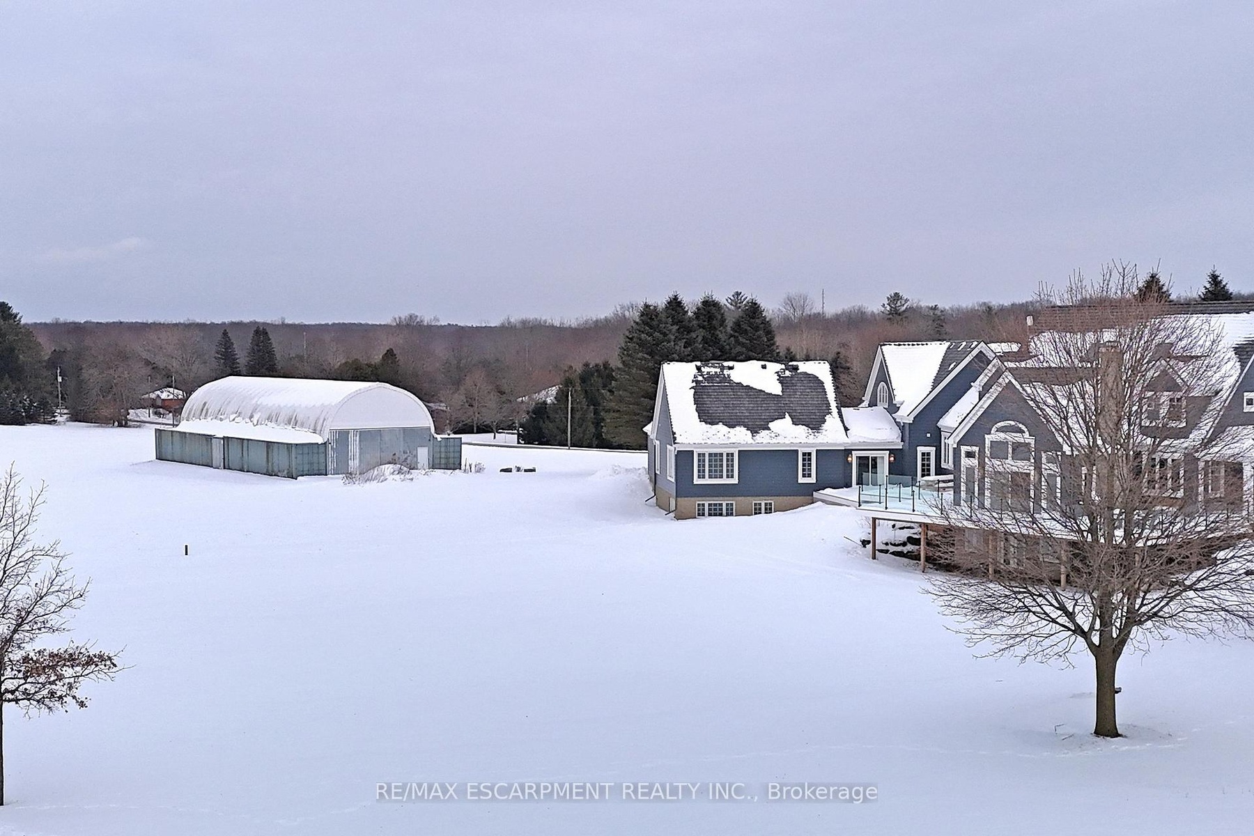 Experience the ultimate country living dream home at 485 Concession 5 Rd E-where refined luxury, beauty, and everyday ease come together, just a 4-minute drive to downtown Waterdown. Set on a breathtaking 91.6-acres of rolling farmland, mature woodlands, and a serene spring-fed pond, this property offers exceptional privacy, calm and a restorative lifestyle. The land has been organically farmed, blending sustainability with long-term peace of mind. The property includes 63 acres of actively farmed/leased farmland with Farm Property Class tax status, offering substantially reduced prop. taxes (approx. 25% of the residential rate on eligible farmland). The current farmer pays approx. $12,000 /yr to lease, helping offset ownership costs while preserving the landscape. The fully renovated 2.5-storey, 6-bed, 6-bath main residence with attached 2-bed, 2-bath guest house was exquisitely remodelled by Neven Custom Homes (2022/23) with $2M+ in premium renovations. Exceptional craftsmanship throughout, including a DaVinci composite shake roof, Gentek siding, custom windows and doors, and beautifully curated finishes. A wrap-around veranda and glass-railed deck create effortless indoor-outdoor living. The heart of the home is the stunning, highly functional chef's kitchen with two expansive islands, luxury appliances, abundant storage, and a separate prep kitchen, ideal for daily living and entertaining. Spa-inspired bathrooms, 20'8"ceilings in the great room, and a stone fireplace elevate comfort and elegance. The primary suite features timber accents and a luxurious 5-piece ensuite. The lower level is ideal for extended family, while the guest house offers privacy, high-end finishes, and panoramic views. Additional features incl a 30'x90' Quonset hut, 800+ evergreen trees, two septic systems, and two geothermal systems. Close to amenities yet worlds away, this is a rare, thoughtfully designed country estate built for living well. LUXURY CERTIFIED.