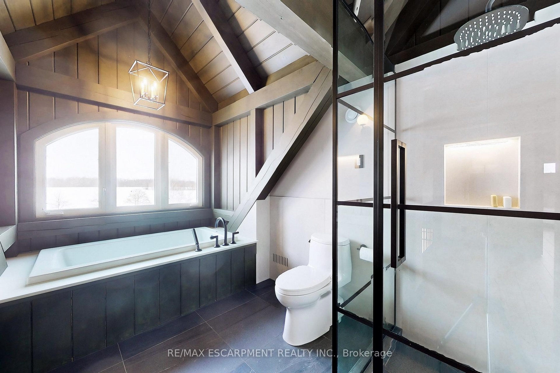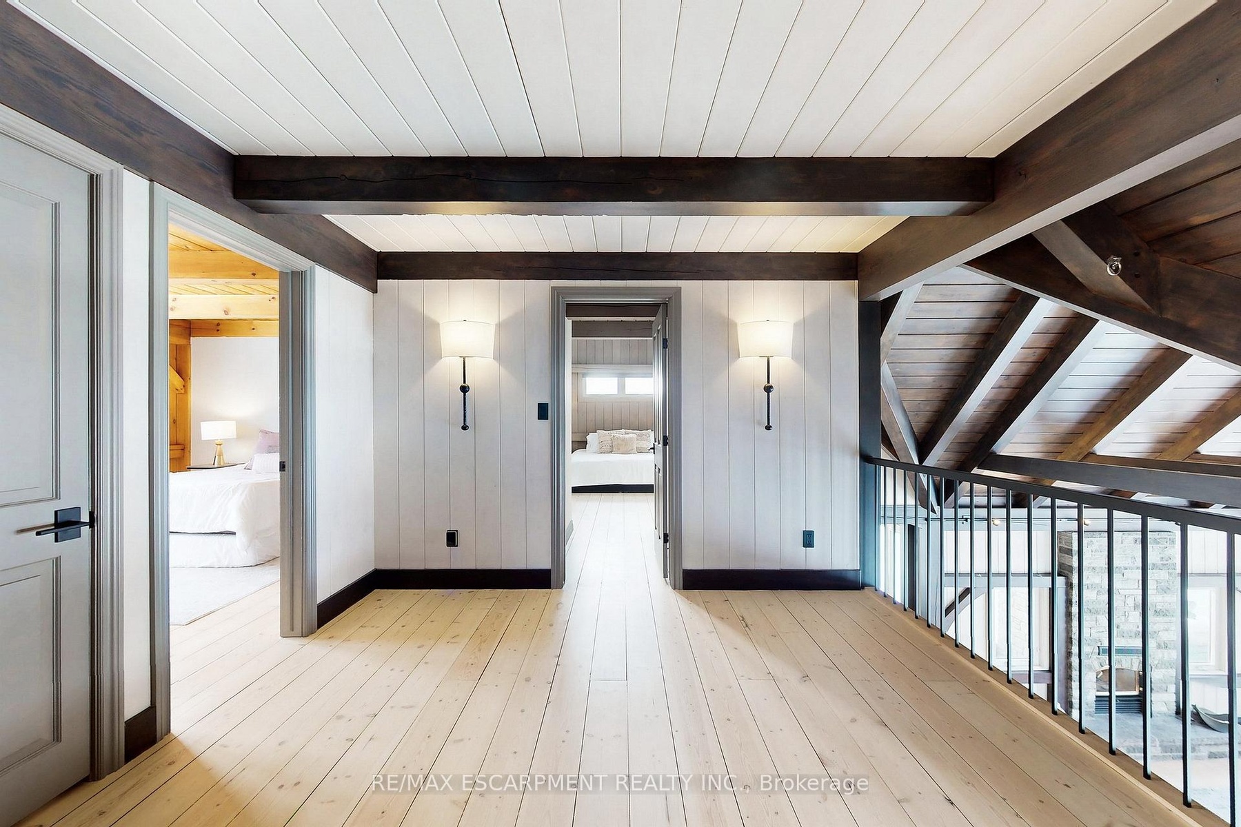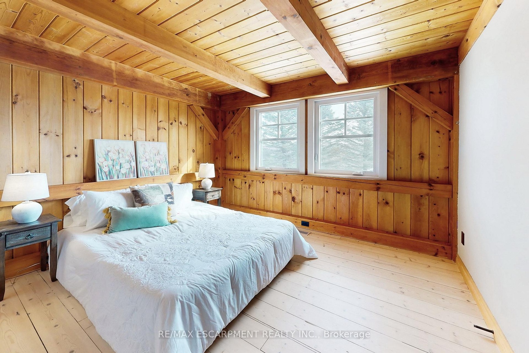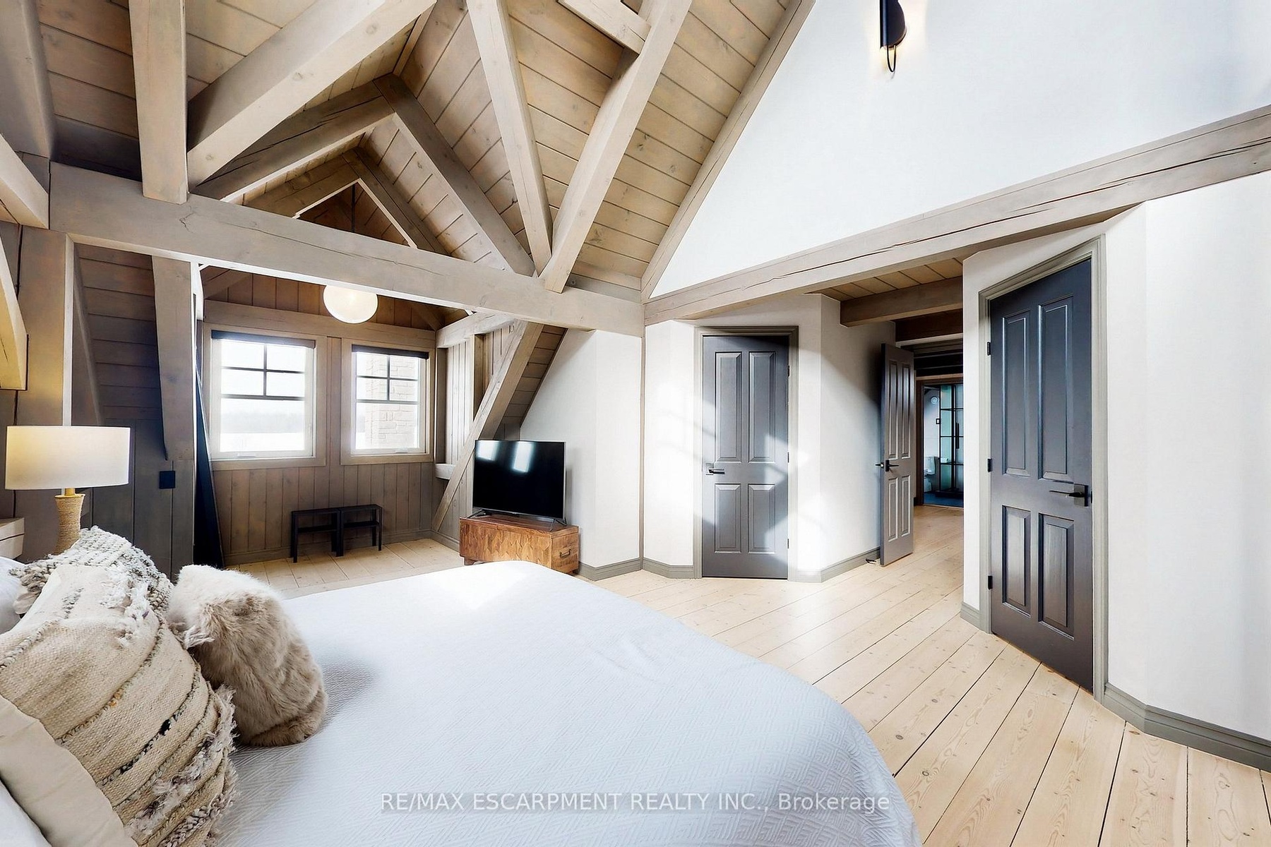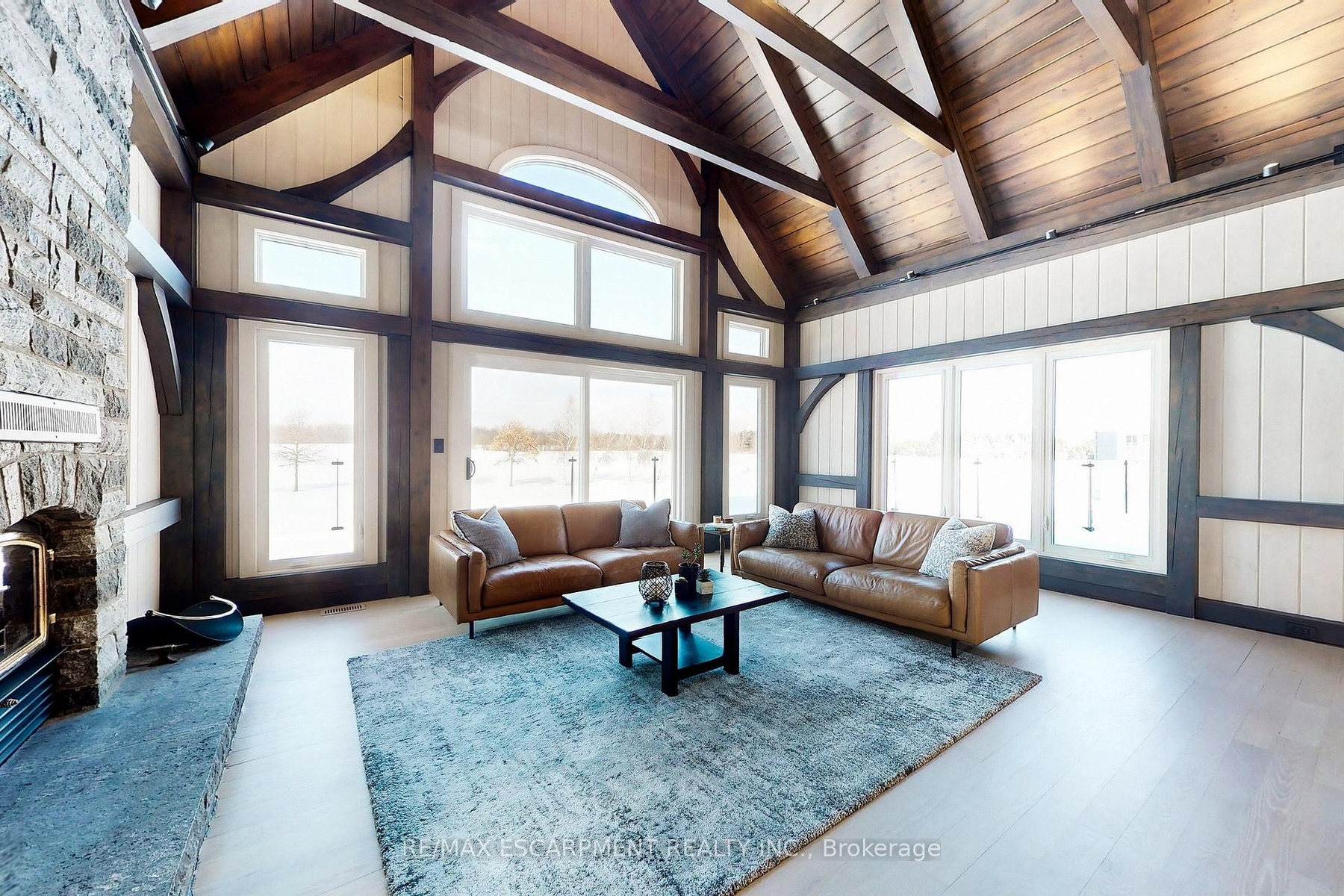 Experience the ultimate country living dream home at 485 Concession 5 Rd E-where refined luxury, beauty, and everyday ease come together, just a 4-minute drive to downtown Waterdown. Set on a breathtaking 91.6-acres of rolling farmland, mature woodlands, and a serene spring-fed pond, this property offers exceptional privacy, calm and a restorative lifestyle. The land has been organically farmed, blending sustainability with long-term peace of mind. The property includes 63 acres of actively farmed/leased farmland with Farm Property Class tax status, offering substantially reduced prop. taxes (approx. 25% of the residential rate on eligible farmland). The current farmer pays approx. $12,000 /yr to lease, helping offset ownership costs while preserving the landscape. The fully renovated 2.5-storey, 6-bed, 6-bath main residence with attached 2-bed, 2-bath guest house was exquisitely remodelled by Neven Custom Homes (2022/23) with $2M+ in premium renovations. Exceptional craftsmanship throughout, including a DaVinci composite shake roof, Gentek siding, custom windows and doors, and beautifully curated finishes. A wrap-around veranda and glass-railed deck create effortless indoor-outdoor living. The heart of the home is the stunning, highly functional chef's kitchen with two expansive islands, luxury appliances, abundant storage, and a separate prep kitchen, ideal for daily living and entertaining. Spa-inspired bathrooms, 20'8"ceilings in the great room, and a stone fireplace elevate comfort and elegance. The primary suite features timber accents and a luxurious 5-piece ensuite. The lower level is ideal for extended family, while the guest house offers privacy, high-end finishes, and panoramic views. Additional features incl a 30'x90' Quonset hut, 800+ evergreen trees, two septic systems, and two geothermal systems. Close to amenities yet worlds away, this is a rare, thoughtfully designed country estate built for living well. LUXURY CERTIFIED.