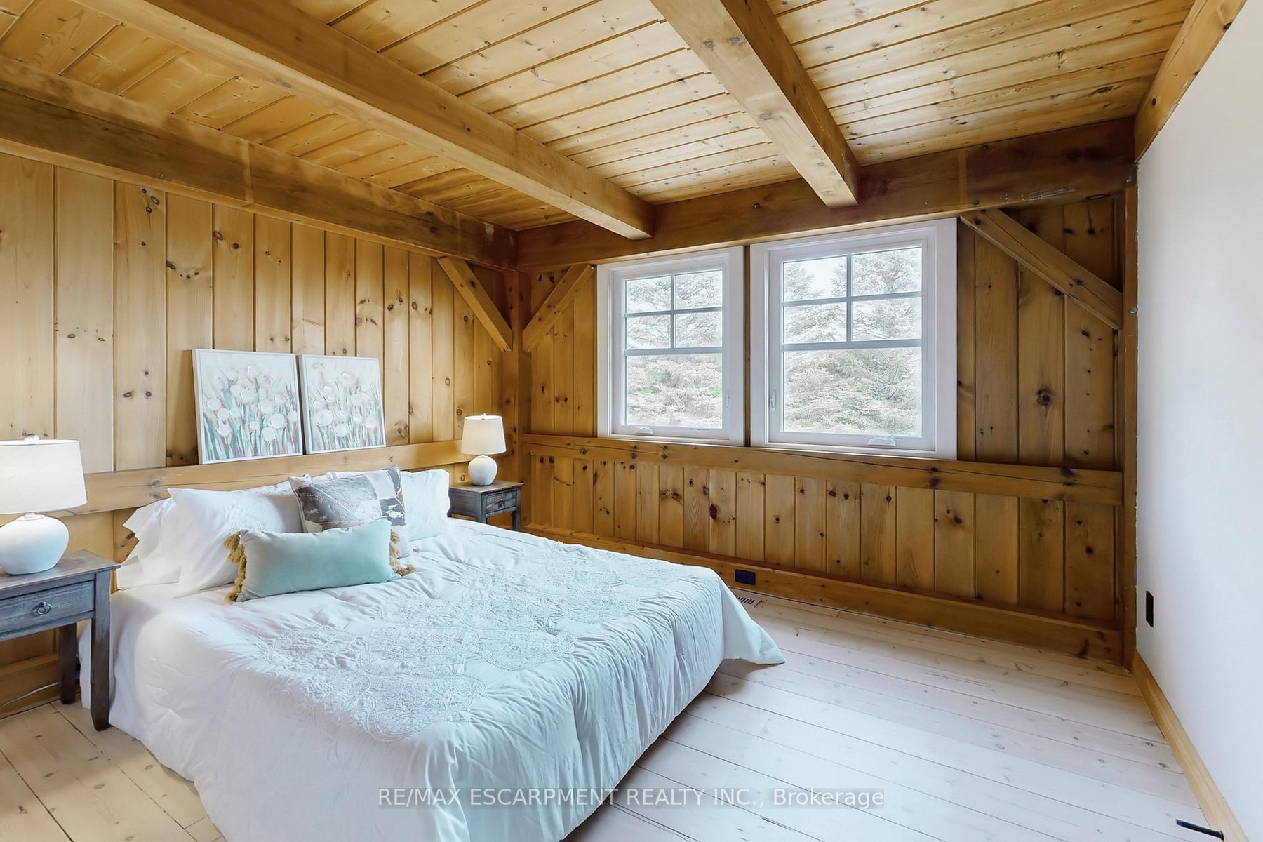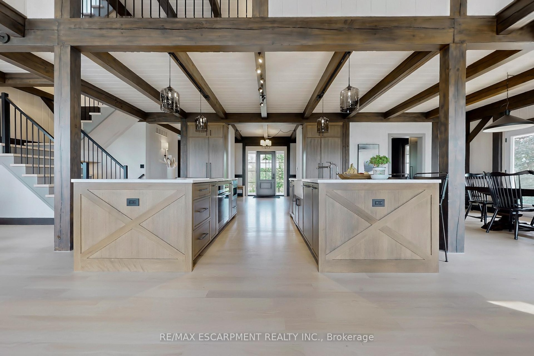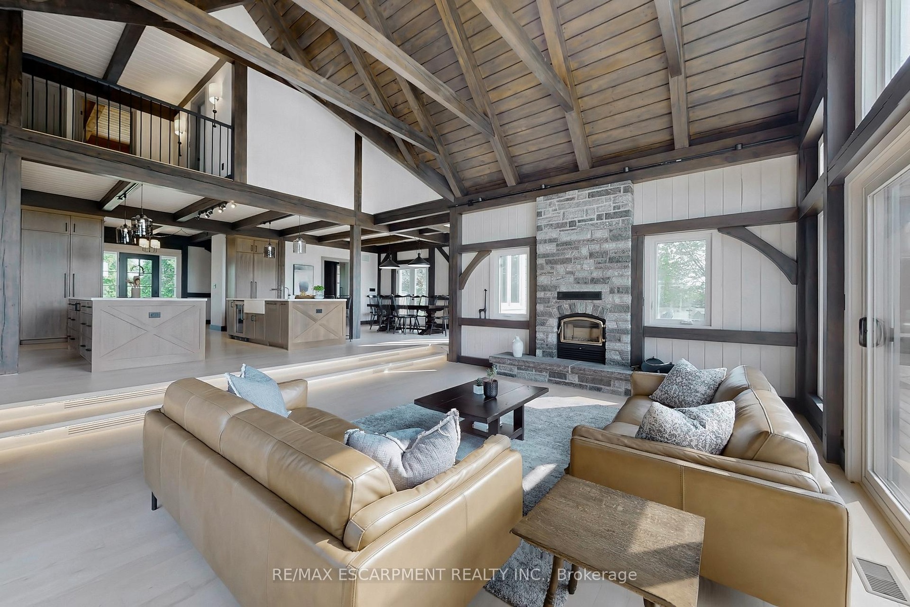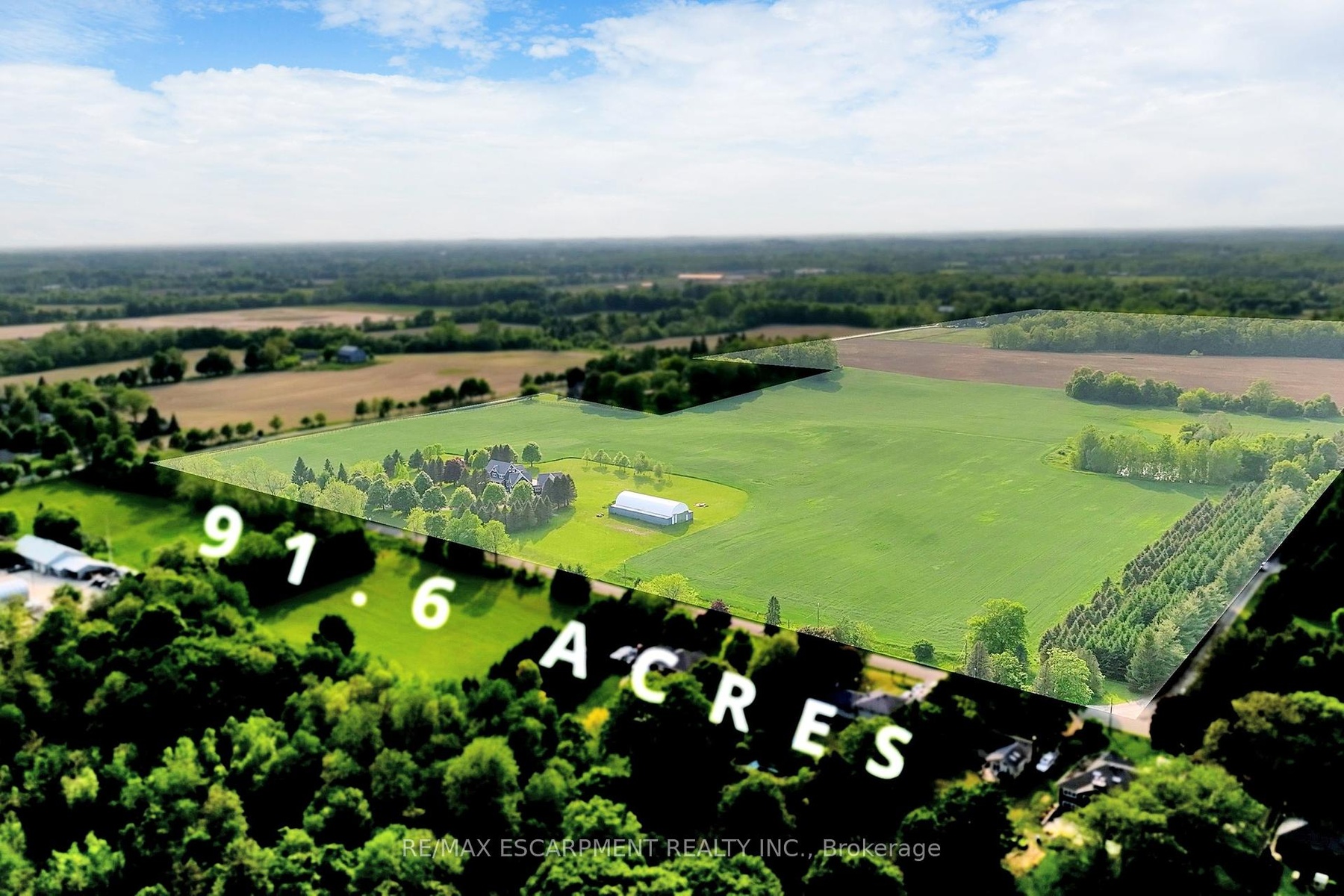 Luxury, comfort & country living! 91.6-acre estate offers rolling farmland, dense woodlands & a spring-fed pond, approx. 45ft deep. The property is currently farmed organically, creating a peaceful, sustainable setting. Fully renovated 2.5-storey, 6 bed, 6 bath home w/ attached 2 bed 2 bath guest house was remodeled by Neven Custom Homes in 2022/23, featuring $2M in premium renovations. DaVinci composite shake roof, custom windows, new doors, spacious living areas & elegant details throughout. Grand wrap-around veranda & glass-railed deck. Gourmet kitchen w/ 2 expansive islands, ample storage & luxury appliances. Separate prep kitchen. Open-concept design leads to dining room, breakfast area & grand great room w/ 208 ceilings, stone fireplace & sliding doors to large deck. Main floor also includes powder room, laundry, mudroom, 3pc bath & 4-car garage. Upstairs, primary suite features timber frame accents & luxurious 5pc ensuite, while 2 additional bedrooms share a beautifully designed 4pc bath. Half-storey above offers bonus room, ideal for a studio or bedroom, along w/ a den. Lower level is perfect for extended family, w/ rec room, full kitchen, bedroom, bath & walkout to backyard. Attached guest house includes spacious kitchen, high-end appliances, separate laundry, walkout deck & open living/dining areas w/ panoramic views. Main-floor bedroom w/ walk-in closet & Jack-&-Jill ensuite. Additional features: Large Quonset hut (2010), over 800 evergreen trees, forested area, 2 septic systems & 2 geothermal systems. Located near amenities, offers rare opportunity for luxurious lifestyle w/ endless possibilities. LUXURY CERTIFIED.
