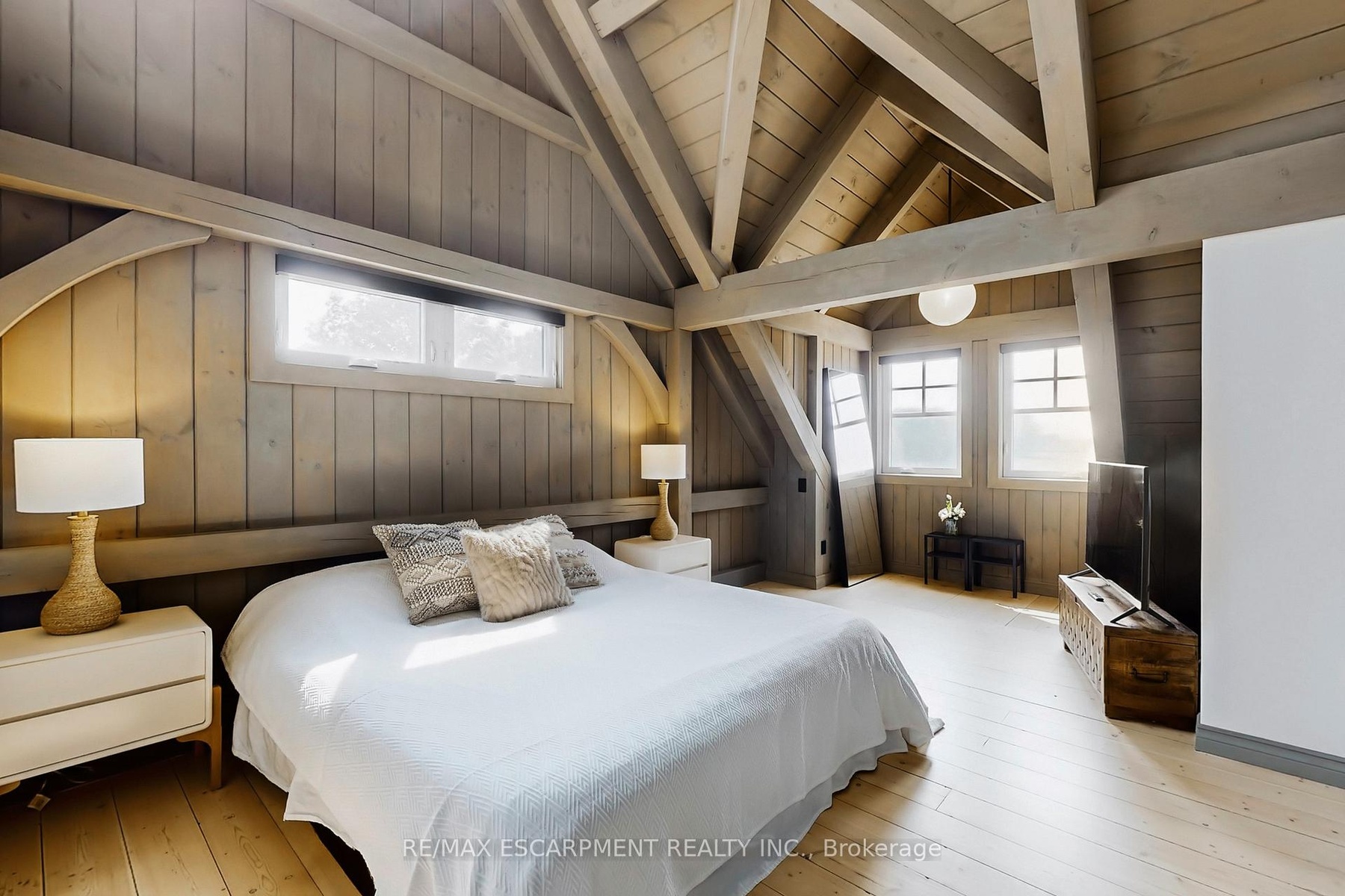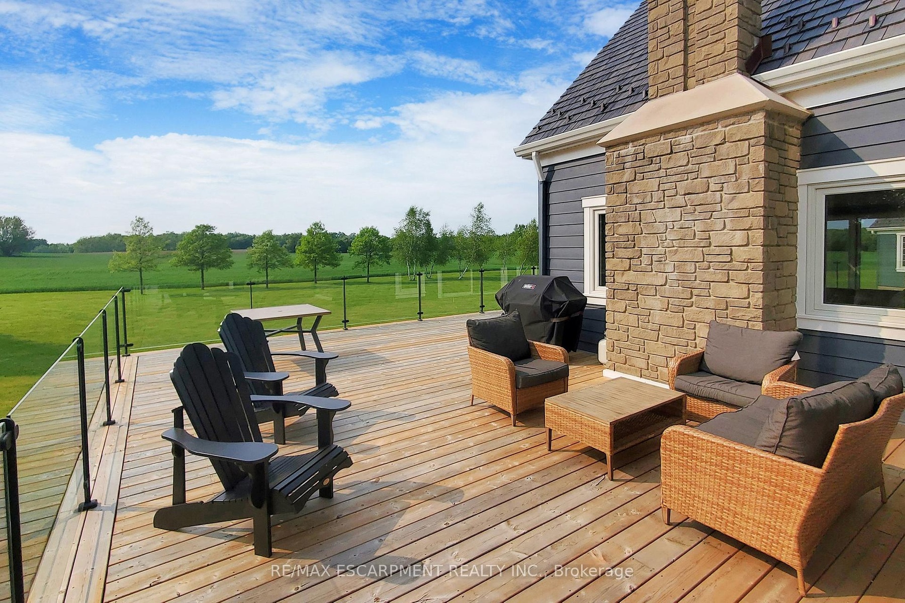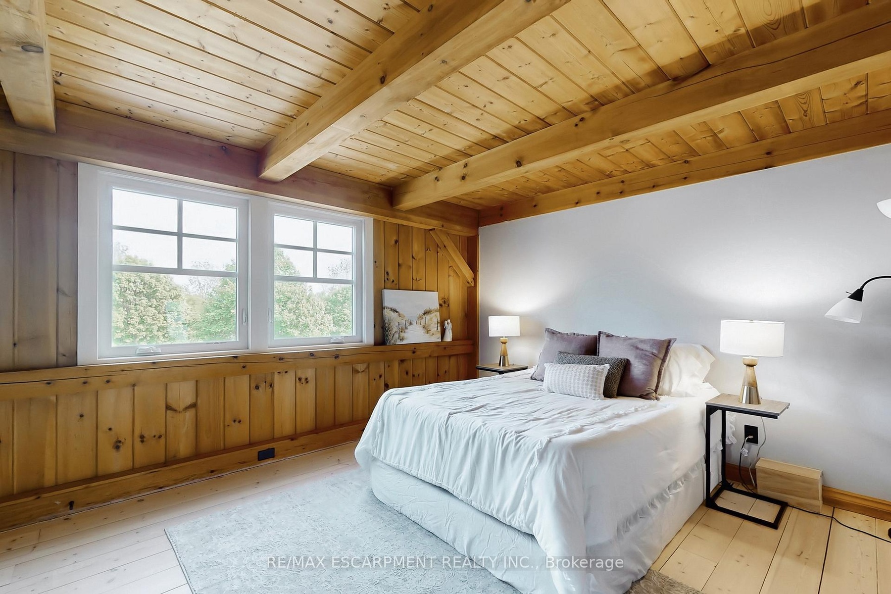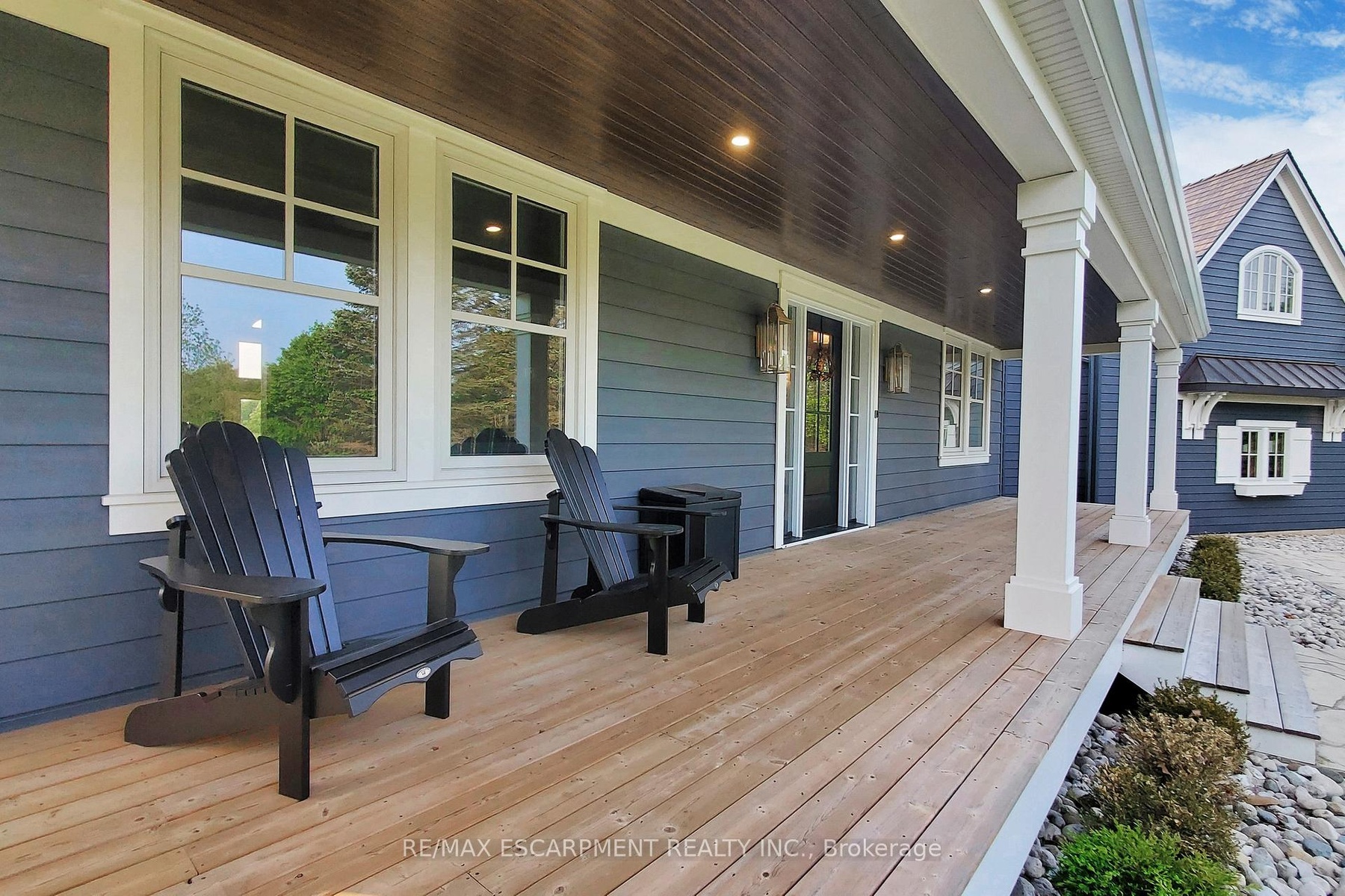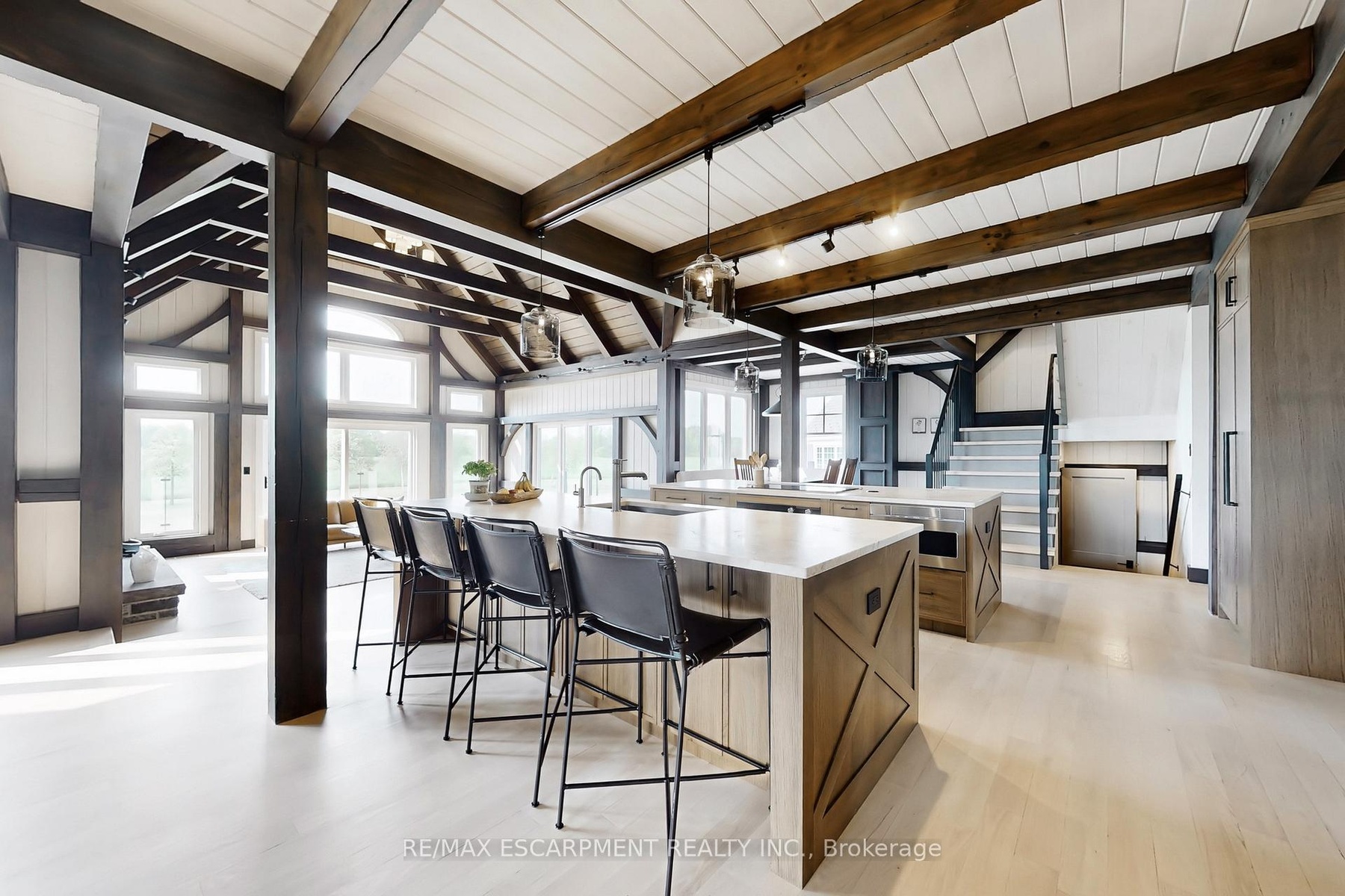 Luxury, comfort & country living! 91.6-acre estate offers rolling farmland, dense woodlands & a spring-fed pond, approx. 45ft deep. The property is currently farmed organically, creating a peaceful, sustainable setting. Fully renovated 2.5-storey, 6 bed, 6 bath home w/ attached 2 bed 2 bath guest house was remodeled by Neven Custom Homes in 2022/23, featuring $2M in premium renovations. DaVinci composite shake roof, custom windows, new doors, spacious living areas & elegant details throughout. Grand wrap-around veranda & glass-railed deck. Gourmet kitchen w/ 2 expansive islands, ample storage & luxury appliances. Separate prep kitchen. Open-concept design leads to dining room, breakfast area & grand great room w/ 208 ceilings, stone fireplace & sliding doors to large deck. Main floor also includes powder room, laundry, mudroom, 3pc bath & 4-car garage. Upstairs, primary suite features timber frame accents & luxurious 5pc ensuite, while 2 additional bedrooms share a beautifully designed 4pc bath. Half-storey above offers bonus room, ideal for a studio or bedroom, along w/ a den. Lower level is perfect for extended family, w/ rec room, full kitchen, bedroom, bath & walkout to backyard. Attached guest house includes spacious kitchen, high-end appliances, separate laundry, walkout deck & open living/dining areas w/ panoramic views. Main-floor bedroom w/ walk-in closet & Jack-&-Jill ensuite. Additional features: Large Quonset hut (2010), over 800 evergreen trees, forested area, 2 septic systems & 2 geothermal systems. Located near amenities, offers rare opportunity for luxurious lifestyle w/ endless possibilities. LUXURY CERTIFIED.