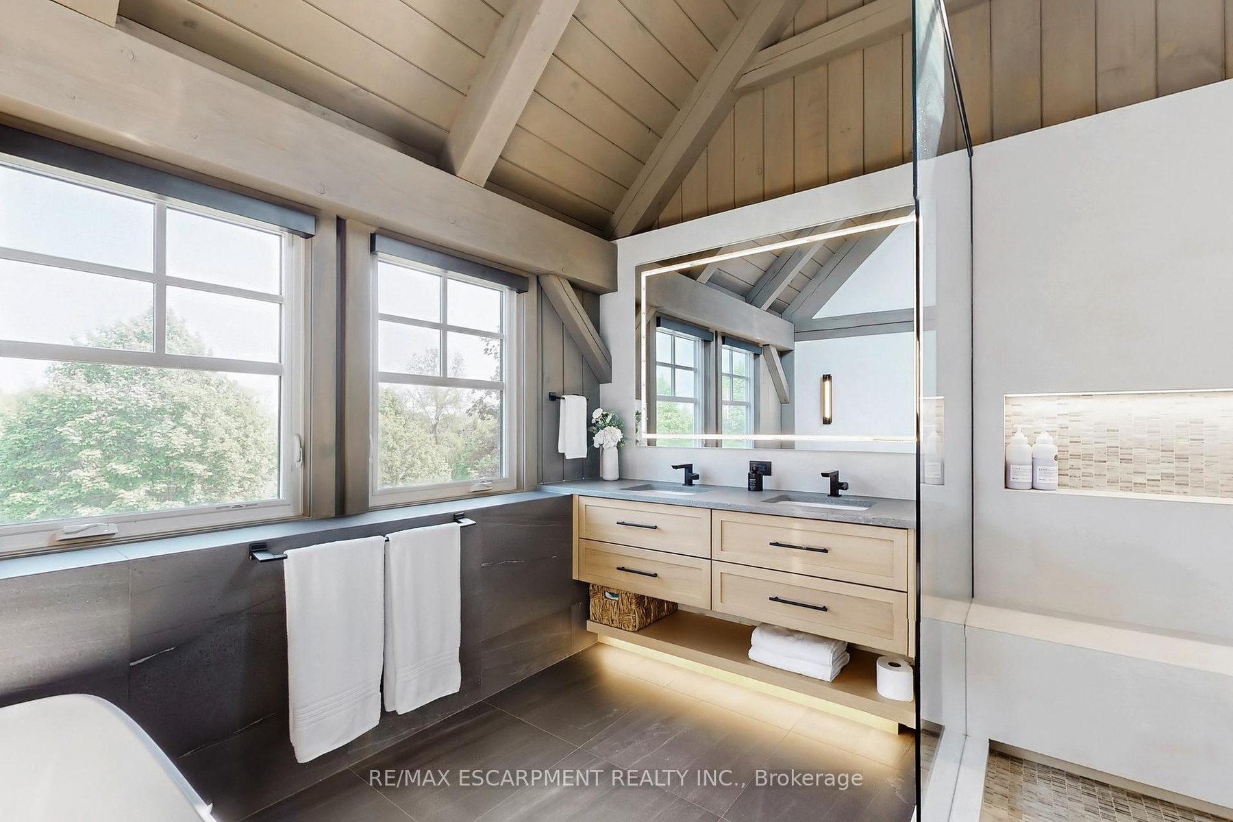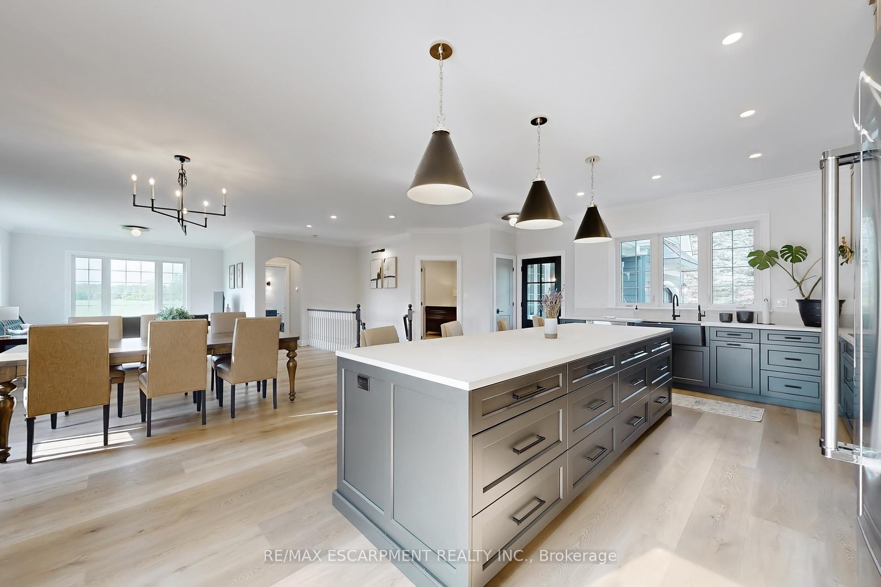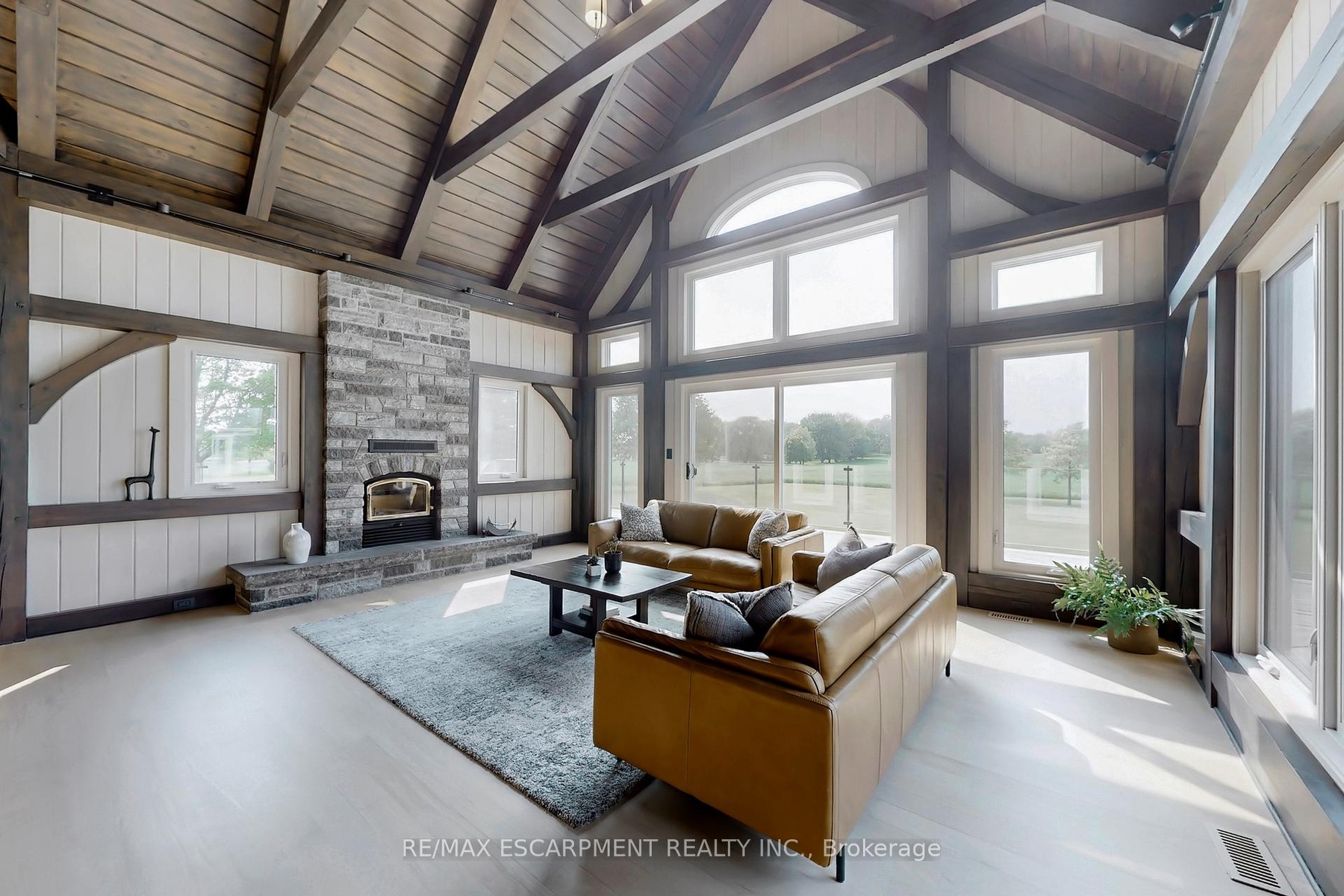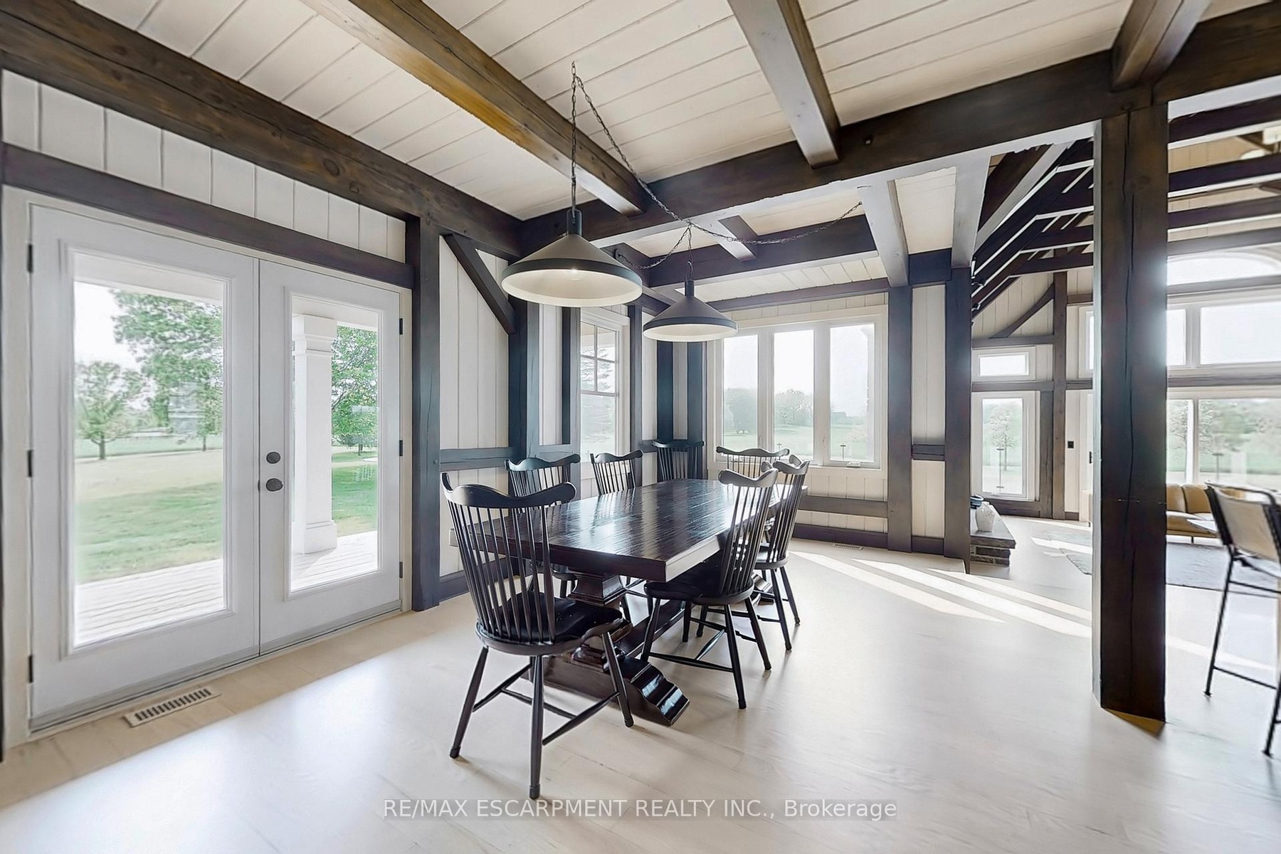 Luxury, comfort & country living! 91.6-acre estate offers rolling farmland, dense woodlands & a spring-fed pond, approx. 45ft deep. The property is currently farmed organically, creating a peaceful, sustainable setting. Fully renovated 2.5-storey, 6 bed, 6 bath home w/ attached 2 bed 2 bath guest house was remodeled by Neven Custom Homes in 2022/23, featuring $2M in premium renovations. DaVinci composite shake roof, custom windows, new doors, spacious living areas & elegant details throughout. Grand wrap-around veranda & glass-railed deck. Gourmet kitchen w/ 2 expansive islands, ample storage & luxury appliances. Separate prep kitchen. Open-concept design leads to dining room, breakfast area & grand great room w/ 208 ceilings, stone fireplace & sliding doors to large deck. Main floor also includes powder room, laundry, mudroom, 3pc bath & 4-car garage. Upstairs, primary suite features timber frame accents & luxurious 5pc ensuite, while 2 additional bedrooms share a beautifully designed 4pc bath. Half-storey above offers bonus room, ideal for a studio or bedroom, along w/ a den. Lower level is perfect for extended family, w/ rec room, full kitchen, bedroom, bath & walkout to backyard. Attached guest house includes spacious kitchen, high-end appliances, separate laundry, walkout deck & open living/dining areas w/ panoramic views. Main-floor bedroom w/ walk-in closet & Jack-&-Jill ensuite. Additional features: Large Quonset hut (2010), over 800 evergreen trees, forested area, 2 septic systems & 2 geothermal systems. Located near amenities, offers rare opportunity for luxurious lifestyle w/ endless possibilities. LUXURY CERTIFIED.