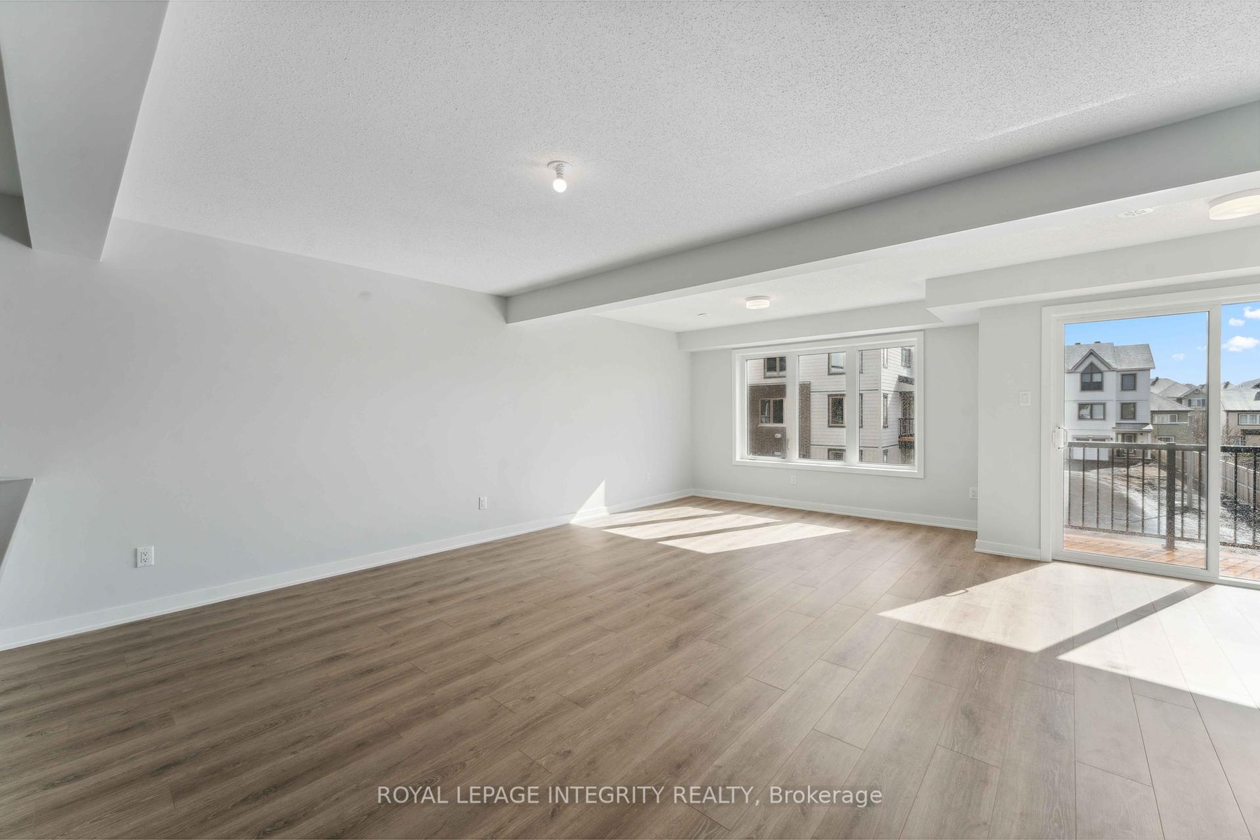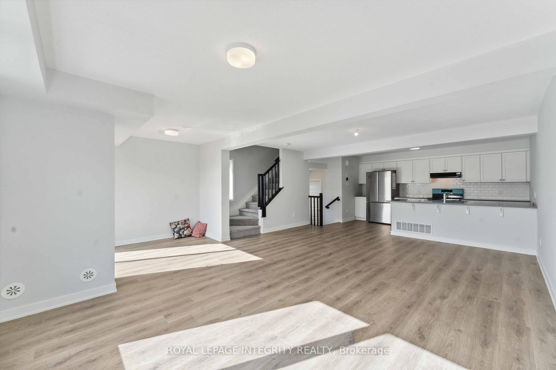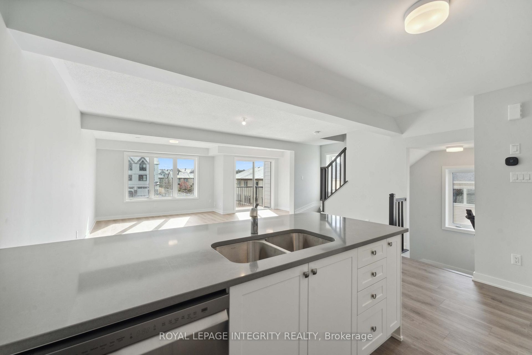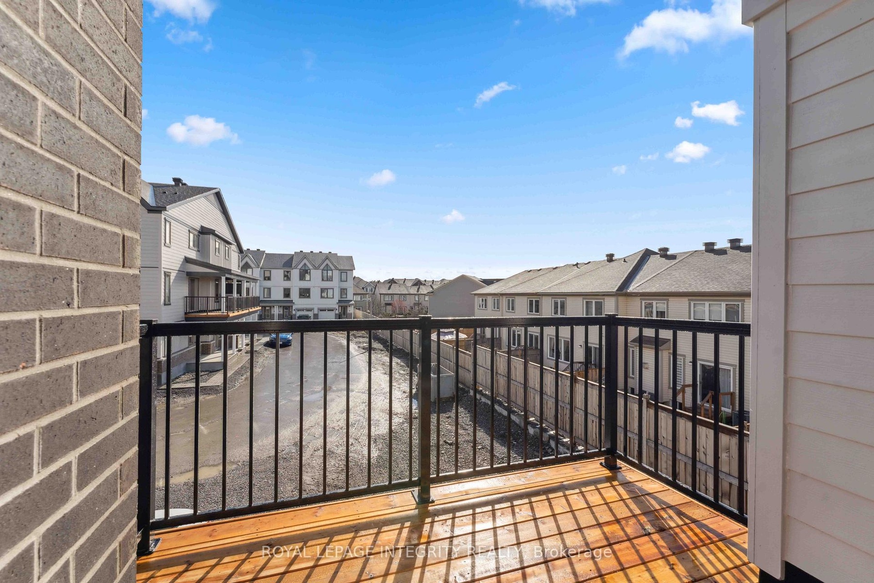 Newer End unit townhouse with a side yard! Modern 2 bed+Den in sought after Stittsville boasts full day of sun and has been fully updated! Welcoming foyer & closet in the entrance complete with a bench. Second floor has a beautifully designed open-concept layout, seamlessly connecting the dining area, living room & a convenient den space leading to the large private balcony. Lots of natural sunlight comes through windows at every level. Spacious Kitchen with upgraded stainless steel appliances, loads of cabinet space. Laminate floor on main lvl and stunning quartz counters throughout. The third floor offers a laundry room with upgraded washer/dryer, main bathroom, and two spacious bedrooms. While both bedrooms boast ample closet space, the primary bedroom boasts a sizable walk-in closet and an ensuite bathroom with a standing shower. Deep garage for extra storage space. A/C included. Close to 417 hwy, Tanger Outlet, CTC, Centrum and all major grocery stores! Rental application required. Available 1st Dec. **GRASS & DRIVEWAY HAVE BEEN COMPLETED**