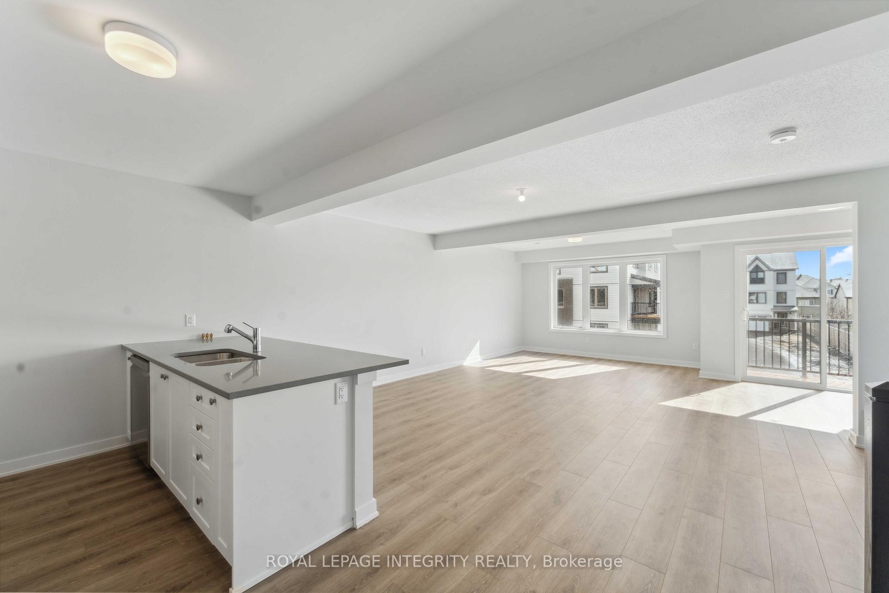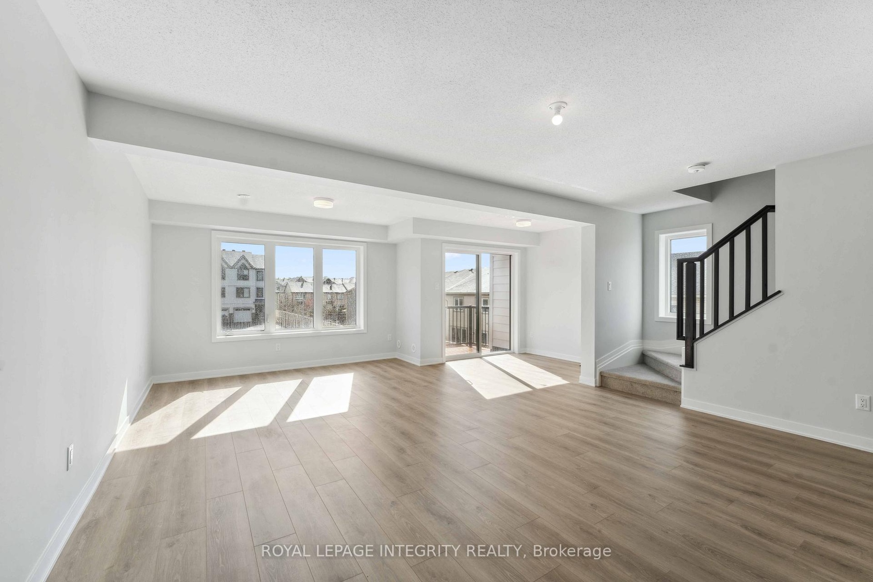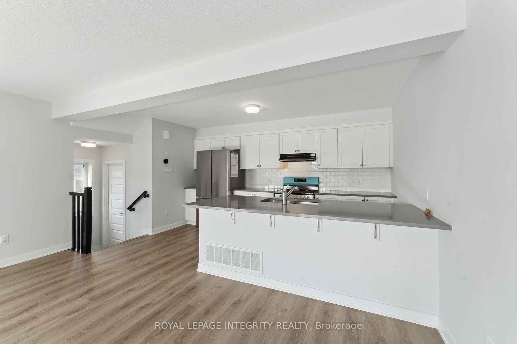 Newer End unit townhouse with a side yard! Modern 2 bed+Den in sought after Stittsville boasts full day of sun and has been fully updated! Welcoming foyer & closet in the entrance complete with a bench. Second floor has a beautifully designed open-concept layout, seamlessly connecting the dining area, living room & a convenient den space leading to the large private balcony. Lots of natural sunlight comes through windows at every level. Spacious Kitchen with upgraded stainless steel appliances, loads of cabinet space. Laminate floor on main lvl and stunning quartz counters throughout. The third floor offers a laundry room with upgraded washer/dryer, main bathroom, and two spacious bedrooms. While both bedrooms boast ample closet space, the primary bedroom boasts a sizable walk-in closet and an ensuite bathroom with a standing shower. Deep garage for extra storage space. A/C included. Close to 417 hwy, Tanger Outlet, CTC, Centrum and all major grocery stores! Rental application required. Available 1st Dec. **GRASS & DRIVEWAY HAVE BEEN COMPLETED**