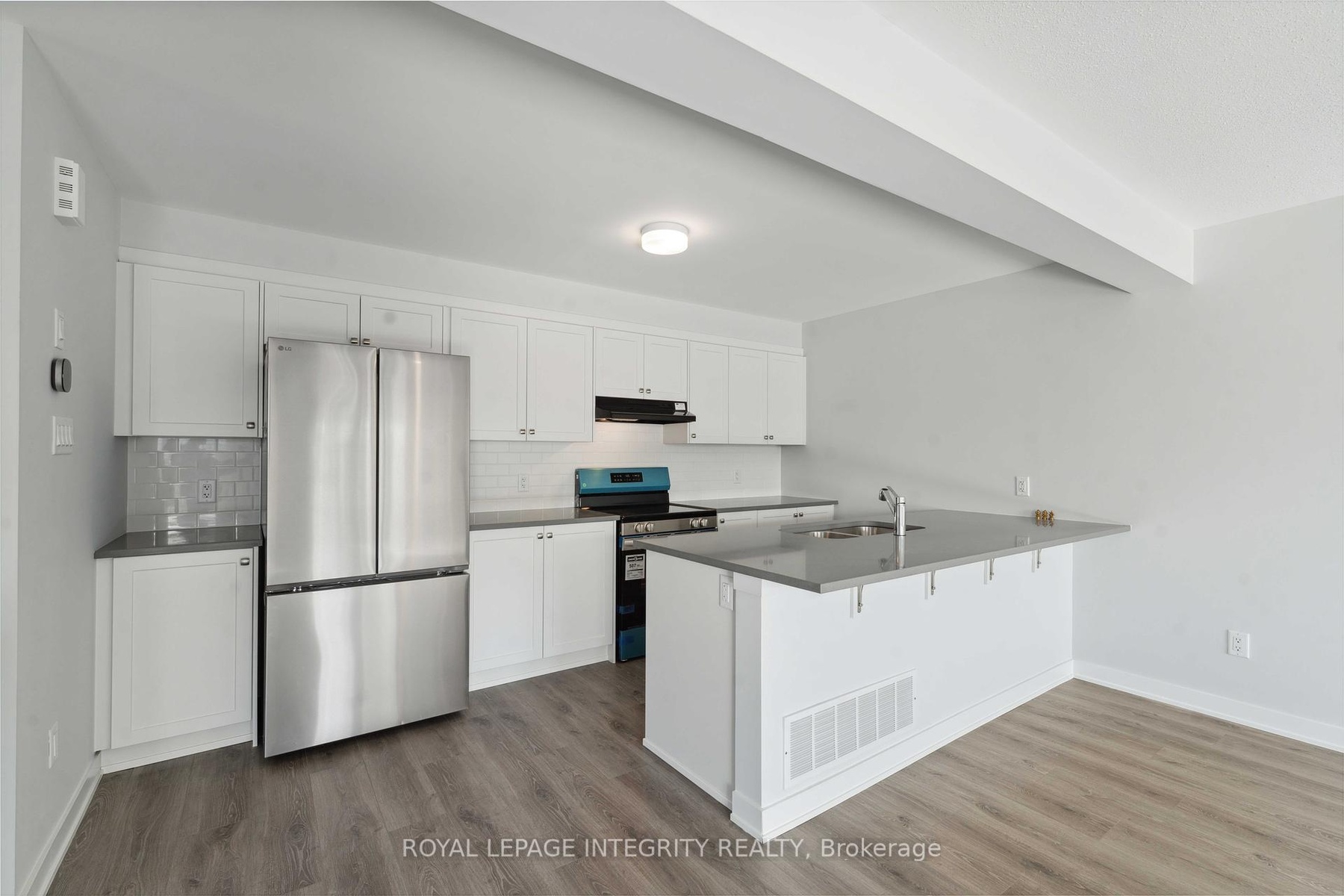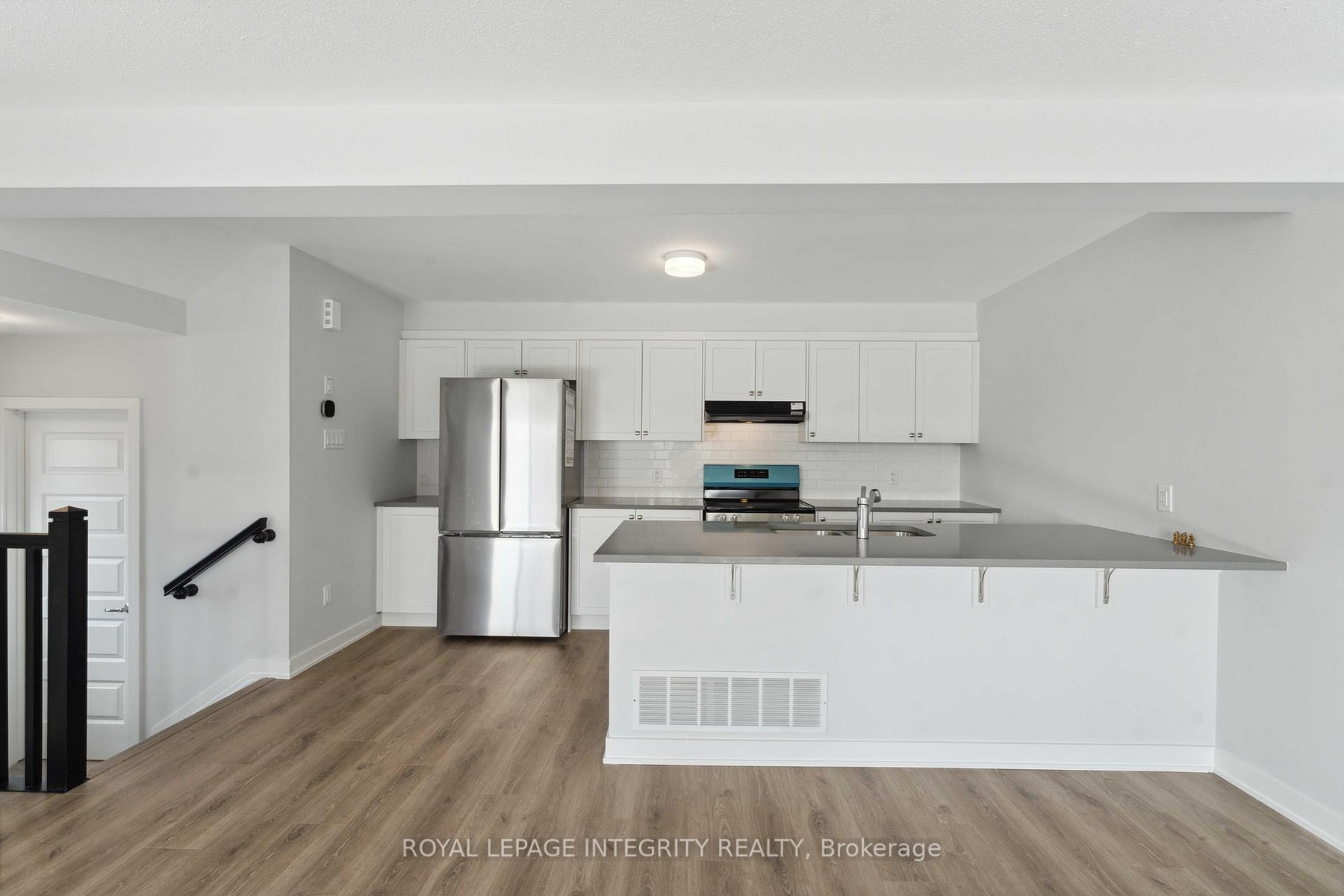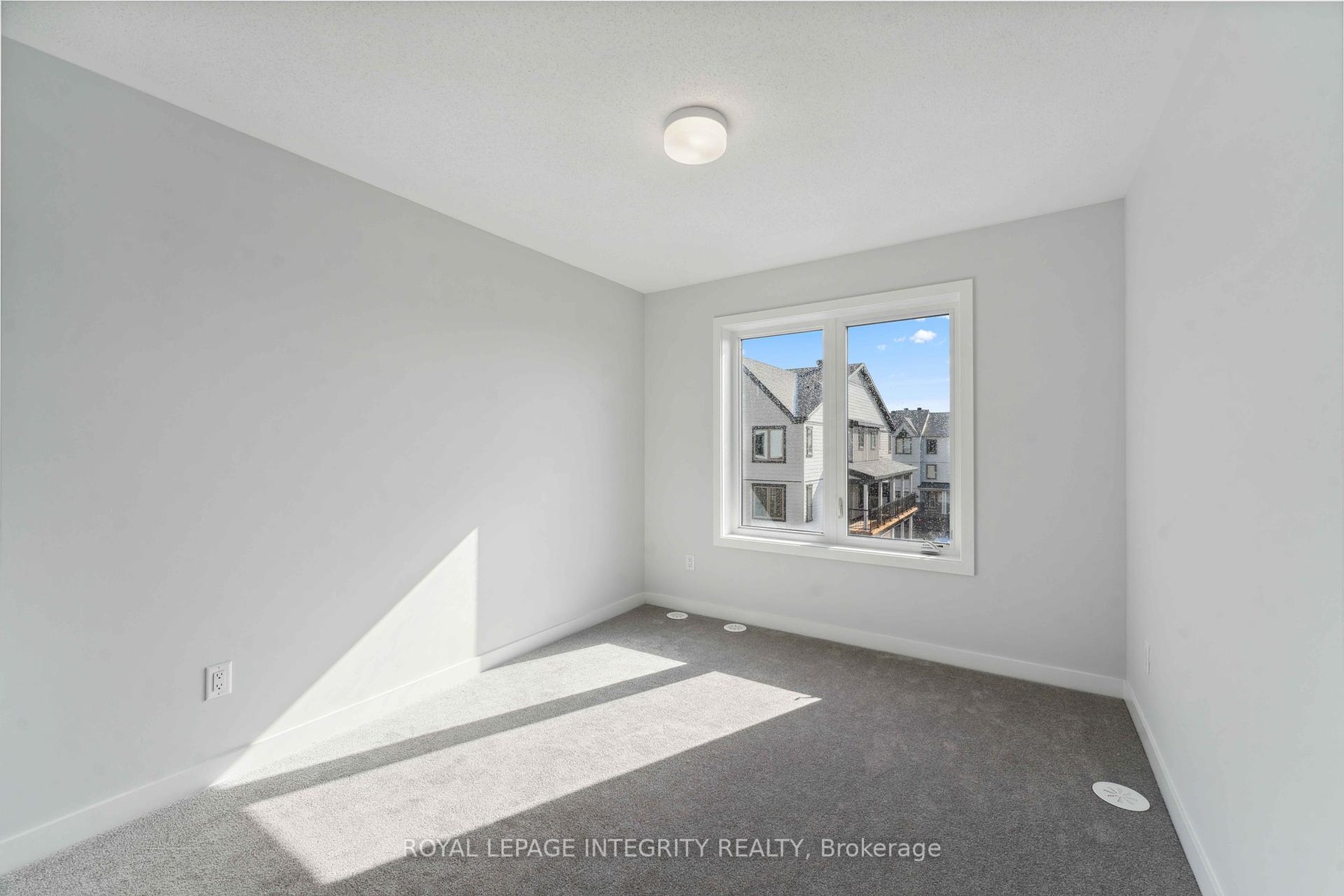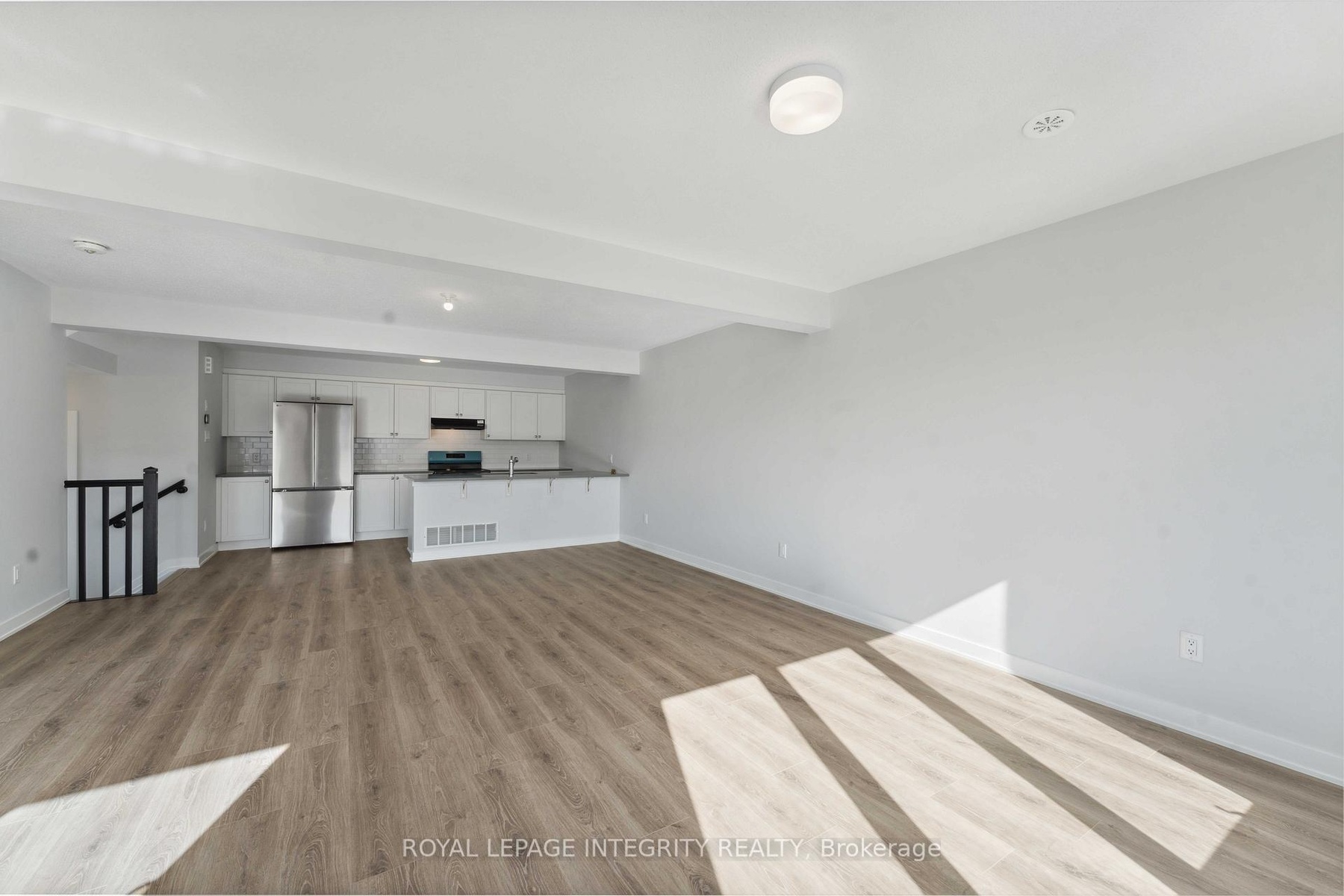 Newer End unit townhouse with a side yard! Modern 2 bed+Den in sought after Stittsville boasts full day of sun and has been fully updated! Welcoming foyer & closet in the entrance complete with a bench. Second floor has a beautifully designed open-concept layout, seamlessly connecting the dining area, living room & a convenient den space leading to the large private balcony. Lots of natural sunlight comes through windows at every level. Spacious Kitchen with upgraded stainless steel appliances, loads of cabinet space. Laminate floor on main lvl and stunning quartz counters throughout. The third floor offers a laundry room with upgraded washer/dryer, main bathroom, and two spacious bedrooms. While both bedrooms boast ample closet space, the primary bedroom boasts a sizable walk-in closet and an ensuite bathroom with a standing shower. Deep garage for extra storage space. A/C included. Close to 417 hwy, Tanger Outlet, CTC, Centrum and all major grocery stores! Rental application required. Available 1st Dec. **GRASS & DRIVEWAY HAVE BEEN COMPLETED**