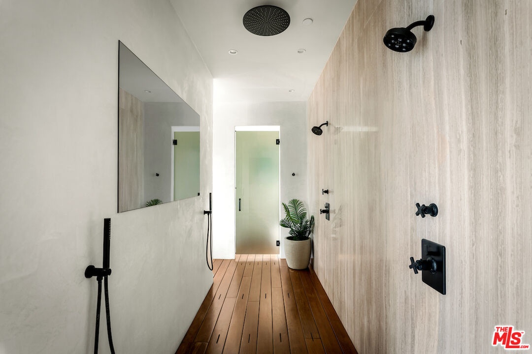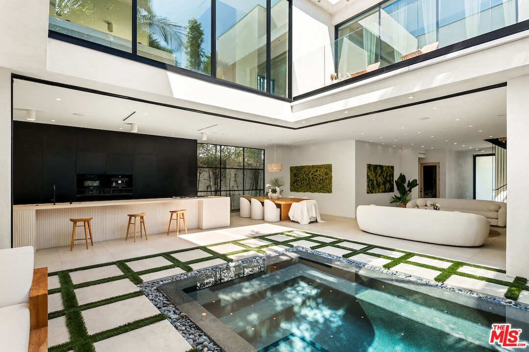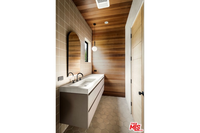 House of Shoor brings Minimalism to life in this 6,500+ square-foot residence set in the heart of the Melrose Arts District." The five-bedroom, six-bathroom floor plan showcases a resort-style primary suite, a private home theater, and an entertainer's backyard complete with a pool, lounge, and dining areas. At the heart of the home, the kitchen is outfitted with state-of-the-art Miele appliances and anchored by a striking hand-carved stone island. Designed with intention, the expansive open layout creates a seamless flow to the serene, secluded backyard, while a rooftop deck delivers unobstructed 360-degree views of the city skyline. Free of unnecessary ornamentation, the architecture embodies the essence of minimalismclean lines, natural materials, and thoughtfully integrated spacesresulting in a tranquil, luxurious retreat tucked into the energy of one of the world's most dynamic neighborhoods.