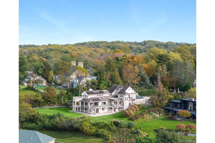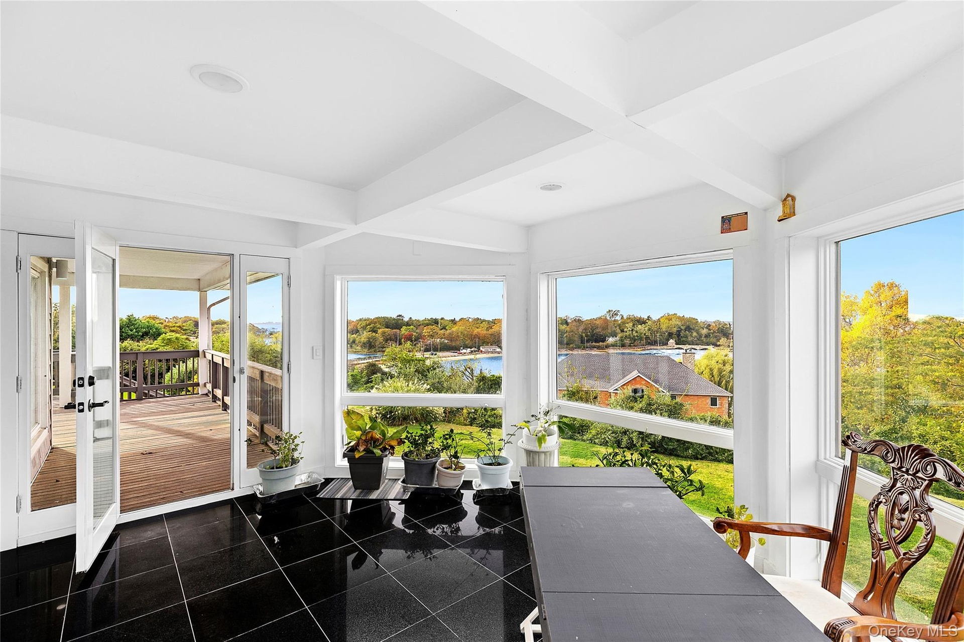 Stunning waterviews from almost every room, multiple decks and rooftop of the Long Island Sound, Dosoris Pond and NYC skyline can be seen from this homes' unique high vantage point. ALL NEW RENOVATIONS COMPLETED 2022!! As you enter the newly paved stone driveway with parking for multiple vehicles, you are surrounded with lush gardens and waterviews. This is only the beginning, as you continue along towards the back of the home you will encounter new bluestone patios, a refinished wraparound upper deck and immense emerald green lawns. Once inside this newly equipped SMART HOME with solar heating you will find an enormous eat in kitchen, formal dining room/den with fireplace, formal living room, sunroom and an office overlooking the spectacular grounds and waterviews. Enjoy sunsets over the NYC skyline just outside your kitchen window!! Upstairs the primary en-suite has a double spa tub, standalone shower, double sinks and a walk in closet. The ground level recreation room has a new a bar, 3 additional bedrooms/gym and a laundry room with outside entrance. Adding to the uniqueness of this home is a large one bedroom guest suite with a separate outside entrance, living room, eat in kitchen, full bathroom, a deck and a spiral staircase leading to a bonus home office/retreat space all with breathtaking waterviews!!