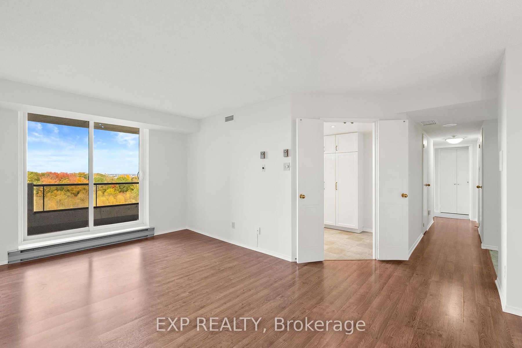 Welcome to this very rarely offered, beautifully updated 3-bedroom or 2 Bed + huge den, 2-bathroom condo offering approximately 1,244 sq ft of bright living space with incredible views overlooking the forest and downtown skyline, and located in the sought-after Playfair Park and Alta Vista area. Step into a tiled foyer with a large closet and continue into the open-concept living and dining area featuring updated vinyl flooring, creating an inviting atmosphere, and large patio door leading to a private balcony with stunning views of the city skyline and surrounding greenery. The updated white kitchen is both beautiful and functional, featuring a gorgeous tiled backsplash, custom pot lights, abundant cabinetry, generous counter space, and a large window that fills the room with natural light. The spacious primary bedroom offers a walk-in closet and a private 4-piece ensuite with a tub and shower combo. The main bathroom has also been updated and features a stylish 3-piece design with a tiled stand-up shower. The third bedroom provides flexibility as a bedroom, den or home office, perfect for remote work or a quiet reading space with walkin closet and patio door to balcony. In-unit laundry, a utility closet, and newer appliances including washer, dryer, and stove (2025) complete this thoughtfully designed space. Residents enjoy access to outstanding amenities including sauna, exercise centre, party room, games room, guest suites, and more. The unit also includes a storage locker (#145), one parking space (#43), visitor parking, and a workshop for hobby enthusiasts. Surrounded by greenspace and walking trails, this well-managed building is ideally situated beside Grasshopper Hill Park, schools, The Ottawa Hospital campuses, CHEO, shopping, and public transit. Experience comfort, convenience, and care-free living in one of Ottawas most desirable neighbourhoods.