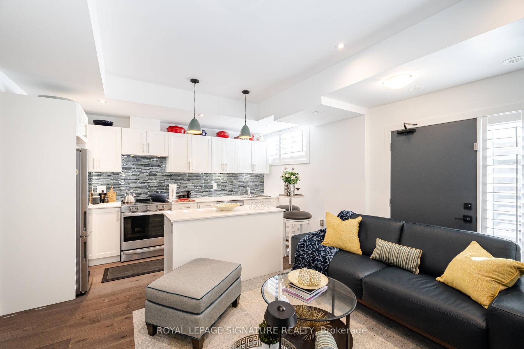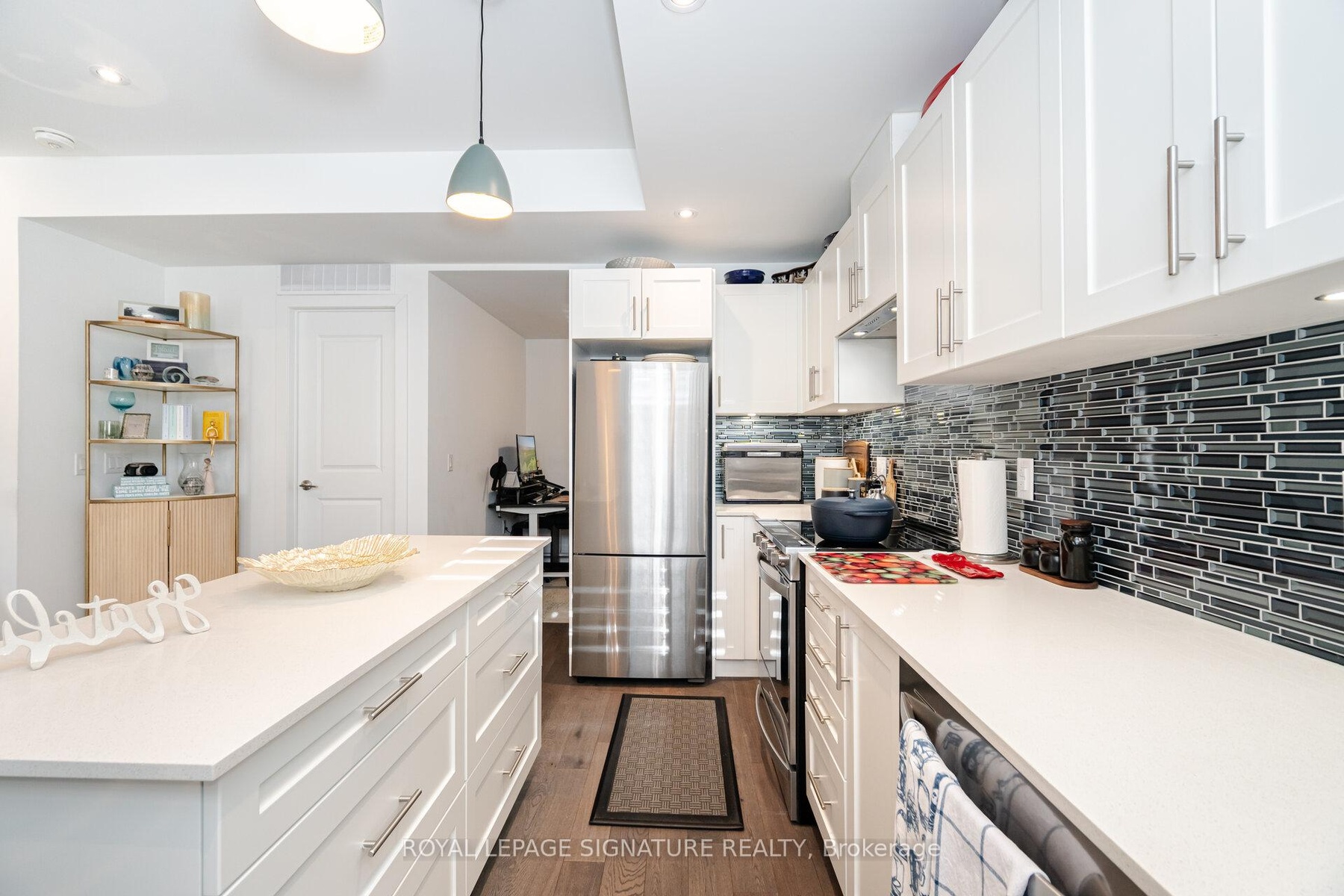 Welcome to this stunning 1-bedroom + den townhome by Kingsmen Group, featuring 823 sq. ft. of stylish, upgraded living space in a highly sought-after lakeside complex where Modern Elegance Meets Prime Location! Luxury Lakeshore Urban Townhome | 1 Bed + Den | 823 Sq.Ft. Move in ready with tons of upgrades!! check out the built-ins being left behind for your use. Designed for comfort as much as convenience, this home is perfect for professionals, couples, or small families looking for an vibrant urban lifestyle just steps from the water's edge.- Key Features:- Multifunctional Den Use as office, guest room, or nursery- Includes a double door closet(bonus item included by owner for you)- Light & Open Concept Floor Plan Seamless flow from kitchen, dining, to living spaces-Gourmet Kitchen Centre island, contemporary finishes, and ample storage-Two Entrances Enjoy ground-level and main-floor entry-Outside Patio Perfect for BBQ's and entertaining-Primary Bedroom Oasis Spacious with 4-piece ensuite & extra hanging Storage-$25K in Upgrades Pot lights, crown molding, built-in storage & entertainment wall, California shutters.- Prime Location & Unequalled Convenience:- 3-Minute Walk to the Lake & Waterfront Trails- Short Walk to Starbucks, Shops, & Restaurants- Steps to Transit & Minutes to the GO Station- Easy Access to Major Highways (QEW, 427, 401)- 20 Minutes to Downtown Toronto- 1 Underground Parking Spot Included This is a rare opportunity to own a luxury townhome in one of Mississauga's most desirable communities! Whether you're looking for a peaceful lakeside retreat or a vibrant urban lifestyle, this home has it all. Don't Miss Out! Schedule Your Private Viewing Today