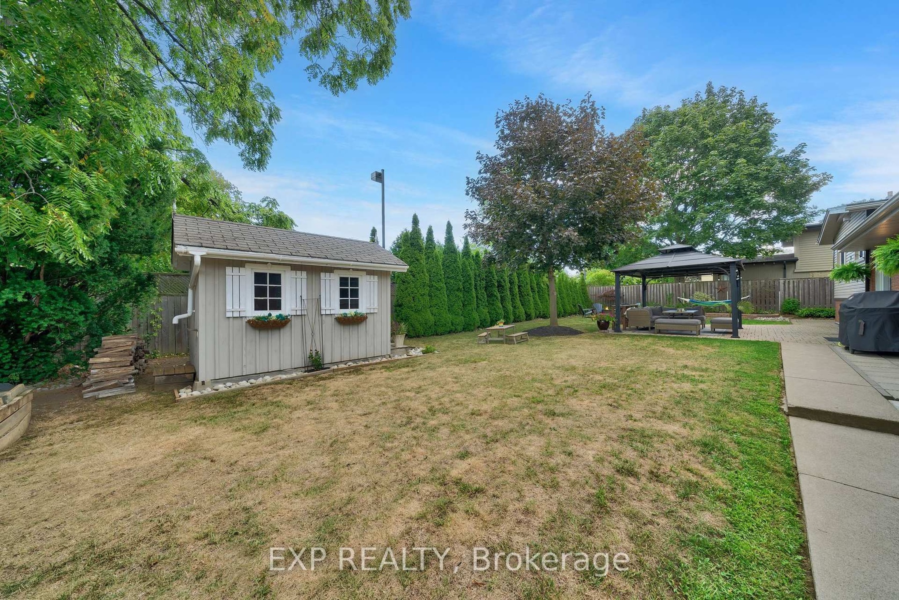 DescriptionLocated in the heart of Grimsby's beloved Nelles Estates, 7 Redwood Drive offers something that's hard to find: space, privacy, and that established neighbourhood feel. Known for its oversized lots, mature trees, and wide driveways, this area remains one of Grimsby's most sought-after pockets. You're just minutes from downtown, walking distance to cafes, restaurants, banks, grocery stores, and steps from the newly updated West Lincoln Memorial Hospital. Set on a landscaped 90 x 110 foot lot, this large 3-level side split offers 3+1 bedrooms, 1.5 baths, and approx. 1,750 sq ft of living space. Built in the 1960s, the home is solid, warm, and full of character the moment you step through the brand new front door. The foyer feels open, not cramped, and leads into a living room filled with natural light from oversized windows, all replaced in 2024. A rustic stone wood-burning fireplace and retro finishes add charm without trying too hard. The eat-in galley kitchen is bright and functional, with sliding doors leading to the backyard. Whether it's morning coffee under the covered gazebo or hosting a summer BBQ, the outdoor space delivers. Fenced and private, with mature cedars, a maple tree, a fire pit area, and a concrete walkway, it has curb appeal that pictures just can't capture. Downstairs, the finished rec-room features updated vinyl plank flooring that flows into a fourth bedroom with a smartly designed ensuite powder room and laundry combo. A large crawl space offers extra storage. Upstairs, you'll find three bedrooms and an updated bathroom with a tiled tub/shower surround. Major updates include new siding, eaves, soffits (2024), on-demand water heater (2023), and A/C (2022). A comfortable, well-located home that's ready for its next chapter. Come see it for yourself!Virtual Tour: https://youtu.be/MeiZE1pzS0EAmenities- Carpet Free