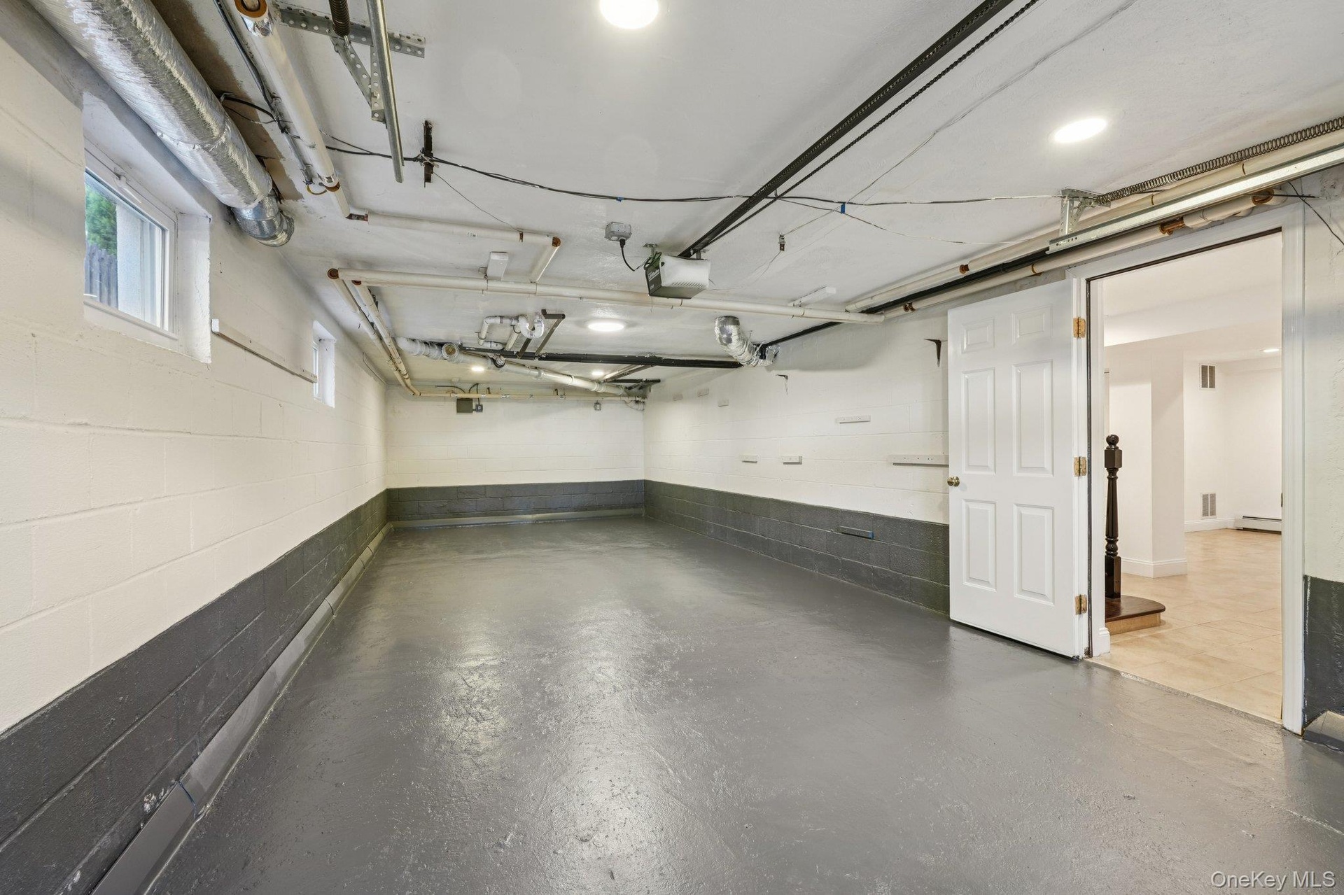- Finished below grade area with stairs, a baseboard radiator, recessed lighting, and baseboard heating
