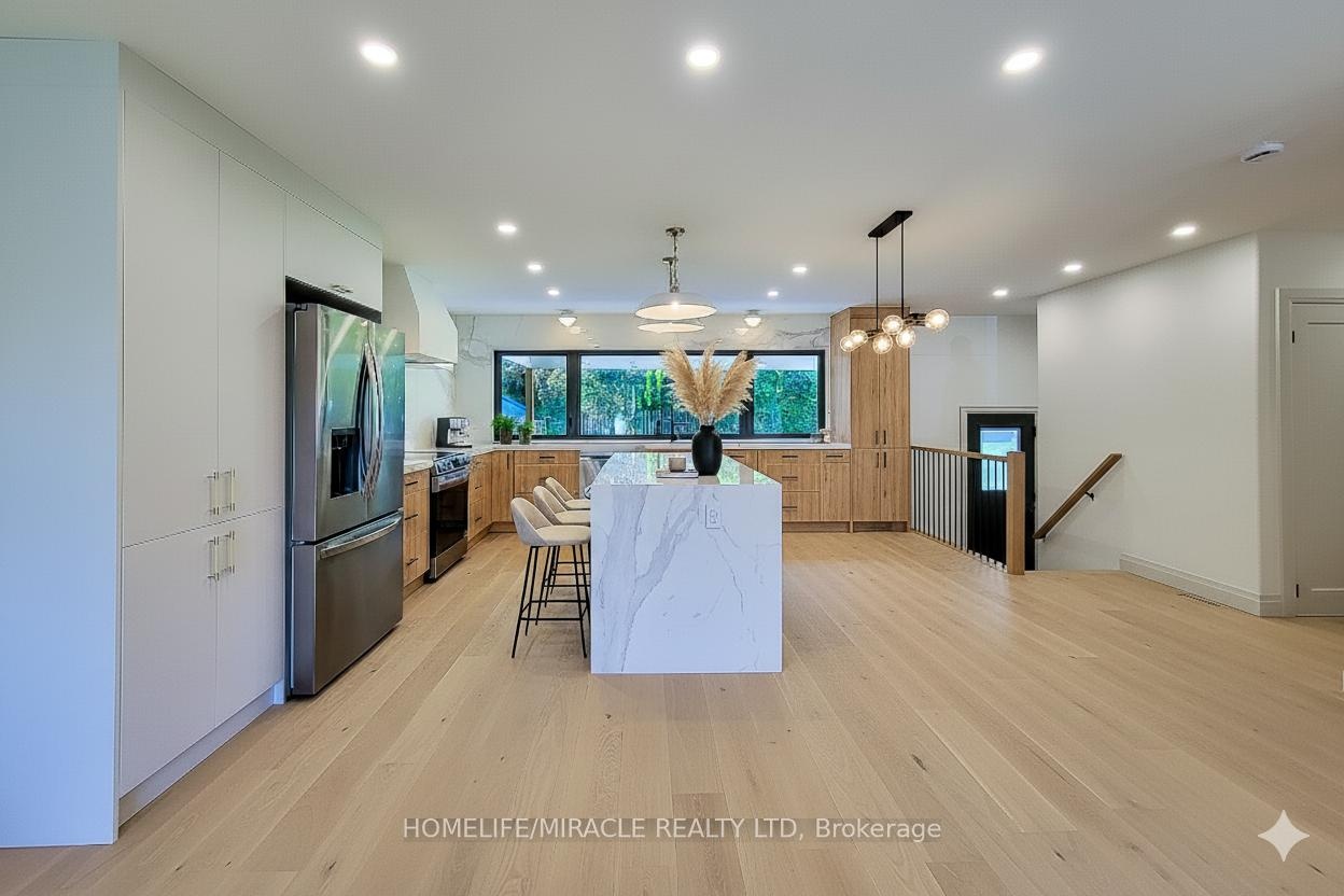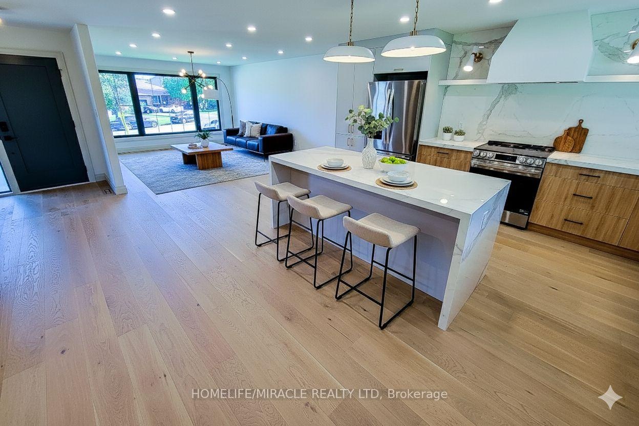 DescriptionThis immaculate 3-bedroom, 2-bath bungalow has been completely renovated, offering 1,255 sq. ft. of modern, carpet-free living. The open-concept main floor features bright, spacious living and dining areas with gleaming hardwood floors and oversized windows that fill the space with natural light. The stylish eat-in kitchen is perfect for any home chef, featuring stainless steel appliances, a tiled backsplash, generous cabinetry, and an island with a breakfast bar for casual dining. The contemporary 3-piece main bathroom showcases elegant finishes, while the primary suite includes custom built-in wardrobes and a spa-inspired 3-piece ensuite with a walk-in shower. The full, unfinished basement provides endless potential whether for additional living space or an in-law suite with a separate entrance already in place. Step outside to enjoy the private, covered concrete patio and low-maintenance backyard, perfect for relaxing or entertaining. Situated in a quiet, family-friendly neighborhood, this home is within walking distance to schools, parks, and the GO Station, with quick access to the mountain and QEW. With 200 amp service and exceptional upgrades throughout, this home is truly move-in ready a must-see!Amenities- In-Law Capability