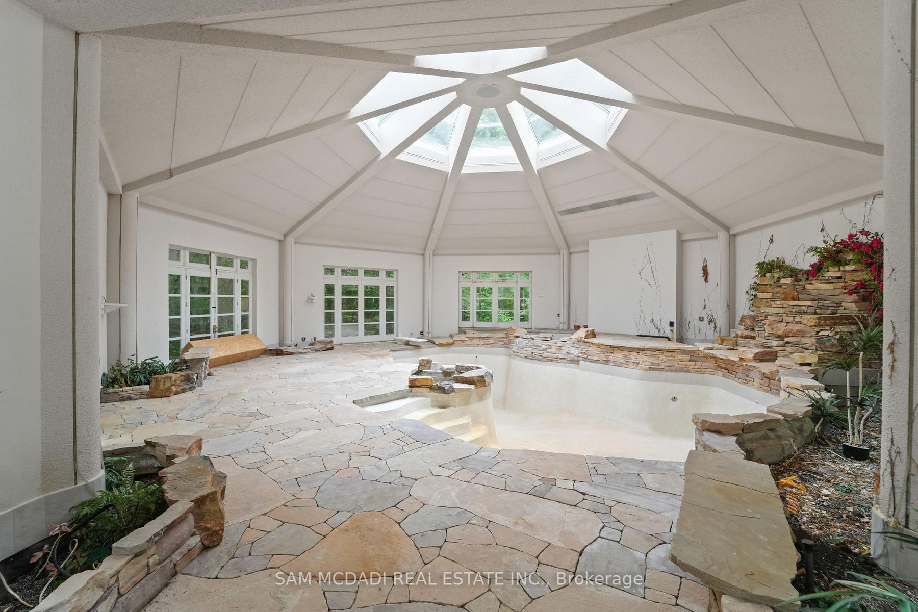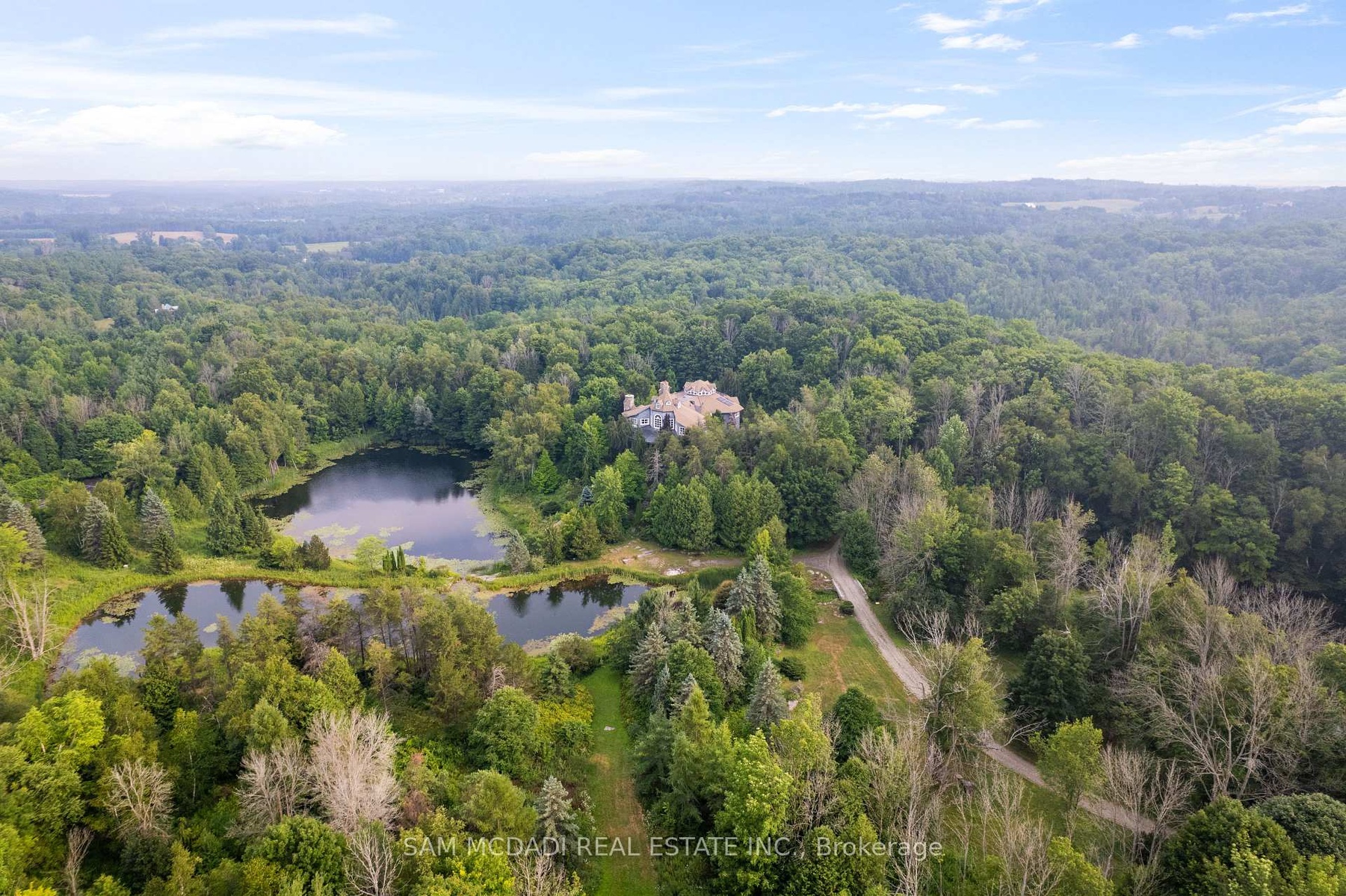 DescriptionWelcome to 9 Flaherty Lane, a breathtaking custom estate available for lease in one of Caledon's most prestigious enclaves. Set on 10.6 acres and backing onto 50 acres of conservation land, this residence offers a rare opportunity to enjoy resort-style living in complete privacy. With over 13,500 square feet above grade and more than 20,000 square feet in total, the home provides expansive space, refined finishes, and a lifestyle of unmatched comfort. Inside are five spacious bedrooms, each with its own ensuite, including a luxurious Owners Suite with dual his-and-her ensuites. A private guest suite on the lower level ensures comfort and discretion. Soaring ceilings from 10 to 21 feet span all three levels, with dramatic open-to-above living areas that flood the home with natural light, enhanced by a bespoke solarium and sunroom. Signature features include a two-level mahogany library with spiral staircase, a home theatre, a retro 1950s-style diner, and a gourmet kitchen with a 60" Wolf gas cooktop and oven. The five-car garage, multiple fireplaces, and nine geothermal systems ensure both luxury and efficiency. Outdoors, enjoy a spring-fed one-acre pond, a gazebo, and a designer patio with custom railings overlooking the water. Additional highlights include a high-capacity well pumping 120 litres per minute, an oversized septic system, a new roof completed in 2024, and a 16-camera Telus security system. Built to the highest standards with custom materials. Whether relocating or simply looking for a private retreat, this estate offers an exceptional experience.Virtual Tour: https://vimeo.com/1107228123Amenities- Alarm system