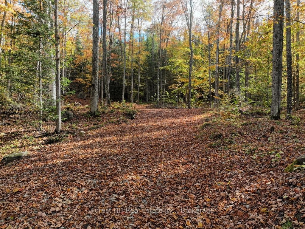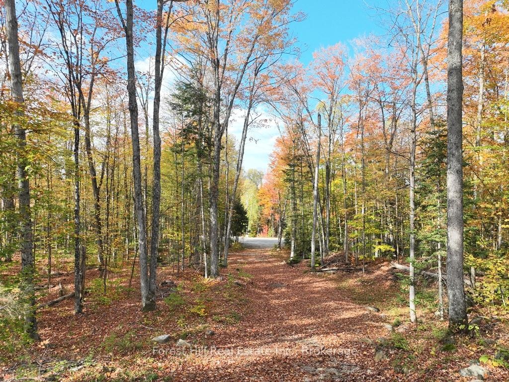 Idyllic 10 acre parcel of land consisting of a well-balanced mix of mature deciduous and coniferous trees with a depth of 725' and ample room to roam and enjoy nature. A beach and concrete public boat ramp are a few hundred meters away on the south shore of Haliburton's largest lake (aka KAWAGAMA LAKE), where one can swim or launch a boat. Smallmouth bass and lake trout are abundant. The subject lot already has a gated driveway and a cleared building site. It has some trails throughout the property, to explore and get up close to wildlife and meander around stunning natural beauty. The skies are dark at night which is a fantastic backdrop to lots of stars and planets above. It's quite common to hear owls, loons and wolves. The electrical services provided by Hydro One are along the 4-season road, at the end of the driveway. High speed internet is easily accessible. There are excellent sites to place a home on, together with a septic system and drilled well. There is a lot of crown land nearby, which is a joy to hike, snowshoe, ATV and snowmobile on, since there is a vast network of trails throughout, which is open to the public. The paved road is municipally-maintained all year long, plowed early on winter mornings and is a school bus route. The charming town of Dorset is about 20 minutes away, where there are lumber and building supplies, a general store for groceries, restaurants, outdoor ice rink, community center, post office, church, LCBO, cannabis store, gas station and more. There are various marinas on Kawagama Lake or Lake of Bays, where one can keep a boat. Build your dream home and start your memories here!