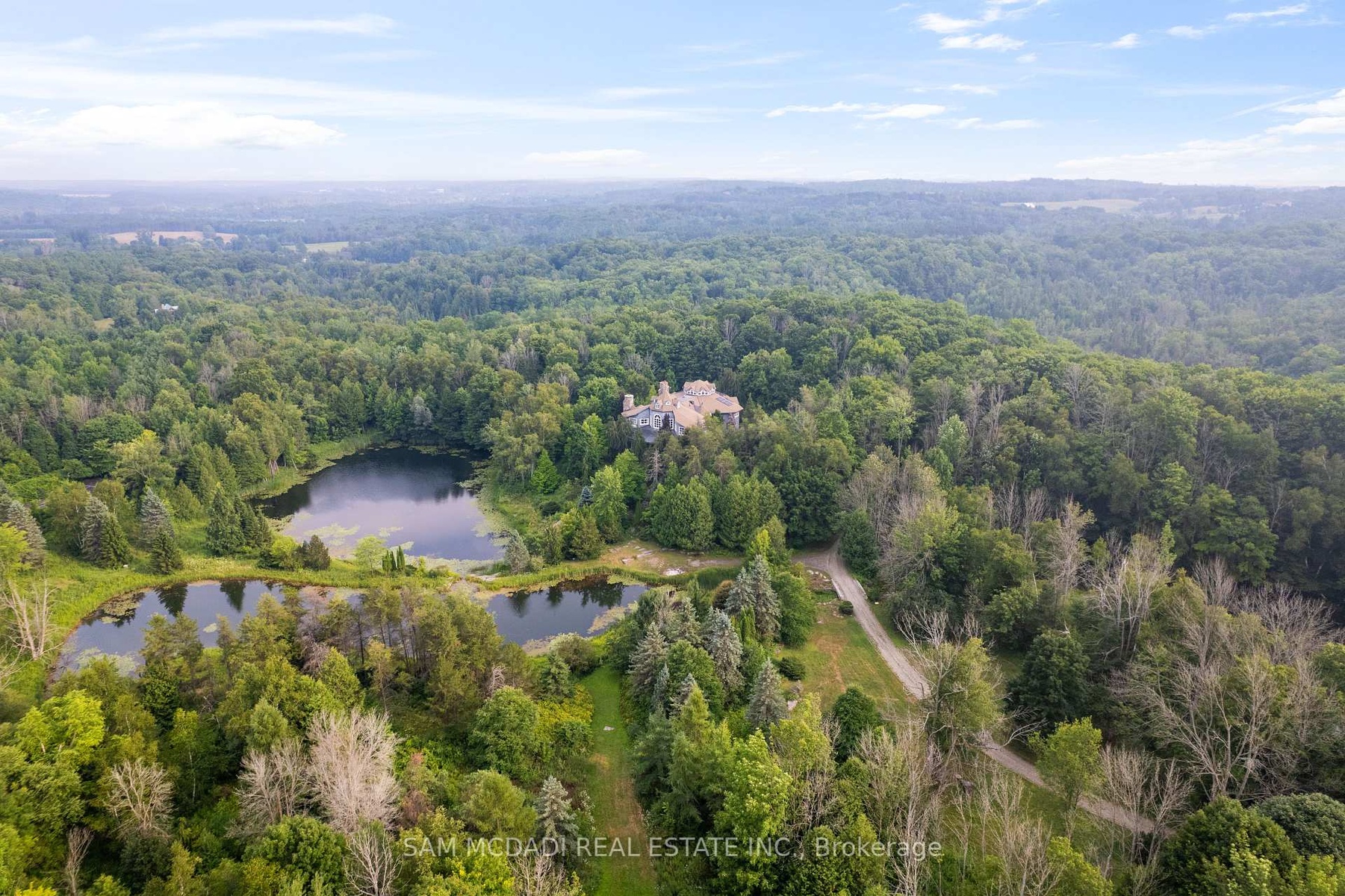 Welcome to 9 Flaherty Lane, a breathtaking custom estate nestled on over 10.6 acres in one of Caledon's prestigious enclaves and backing onto 50 acres of conservation land. Spanning over 13,500 square feet above grade and over 20,000 square feet total, this residence offers homeowners unmatched luxury, privacy, and scale. Inside, 5 prodigious bedrooms reside each with their own ensuites, including a mesmerizing Owners suite with his and her ensuites and a private guest bedroom in the lower level. Soaring ceiling heights are found across all 3 levels and range from 10 ft to 21ft with 3 open to above living areas. Both warm and inviting, this home attracts an abundance of natural light via the bespoke solarium and sunroom. As you make your way through this lovely home, signature features are found including a 2-level mahogany library with enchanting spiral staircase, a home theatre, a retro 50's inspired diner, a 5-car garage, multiple fireplaces, 9 geothermal heating and cooling systems, and a gourmet kitchen with 60" Wolf gas cooktop and oven. Winning "North America's Best Pool" award in 1997, the indoor pool is truly a space where loved ones can gather and enjoy all year round. The serene outdoors offers just as much as the inside, with a spring fed 1 acre pond, a gazebo, a large designer patio with custom railing overlooking the water, and ample green space to host large social gatherings. This home is an absolute must see and offers a rare high-capacity well pumping 120 litres of water per minute, as well as, an oversized septic tank and a new roof completed in 2024. With 16 interior and exterior cameras operated through Telus, security here is top-tier! Built to the highest standards using custom-made materials, this estate offers a rare blend of elegance and resort-style living. Whether hosting on a grand scale or seeking a private retreat, 9 Flaherty Lane delivers an extraordinary lifestyle!