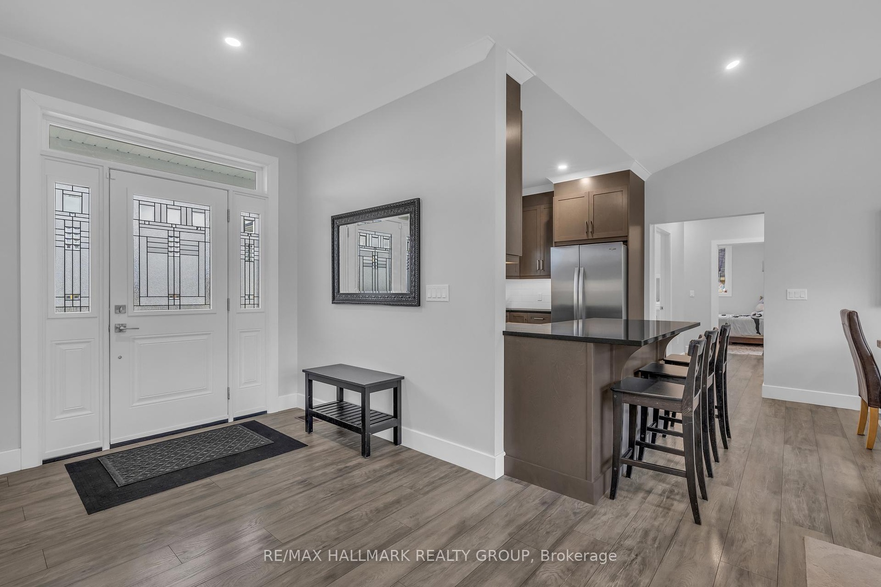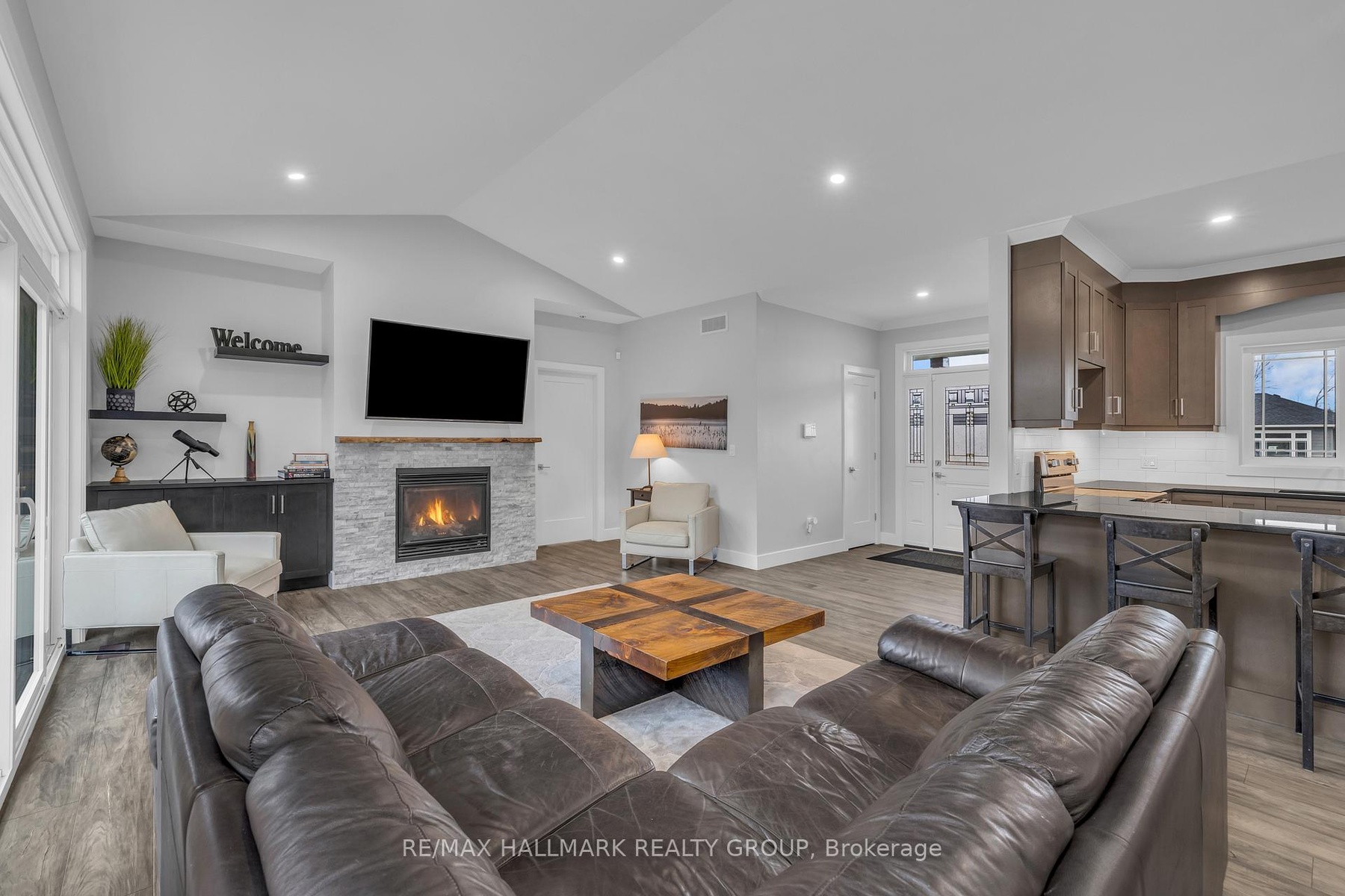DescriptionWelcome to 1077 Shearer Drive, nestled in the newest and most sought-after phase of Brockville's premium Bridlewood subdivision. This upscale bungalow sits proudly on a spacious double lot with no rear neighbours, offering privacy and room to grow. Step inside and fall in love with the bright, open-concept living and dining area, where vaulted ceilings, a cozy gas fireplace, and custom built-in cabinetry create the perfect balance of warmth and sophistication. The kitchen features moody cabinetry, sleek black quartz countertops, and a functional eat-at peninsula - the ideal setting for both family breakfasts and evening entertaining. A convenient mudroom/laundry room combination connects directly to the true two-car garage, keeping daily life organized and effortless. The primary suite is a serene retreat with a private 3-piece ensuite and walk-in closet, while two additional generously sized bedrooms and a 4-piece bath complete the main floor. Downstairs, discover a spacious finished rec room with plenty of room for a pool table and family movie nights, plus a dedicated office area, guest bedroom, and rough-in for a future bathroom - offering flexibility for multigenerational living or rental potential. Step out to your backyard oasis, where an above-ground pool promises endless summer enjoyment. The freshly paved driveway is the cherry on top, adding convenience and curb appeal. This home truly checks every box offering style, space, and smart value. Don't overpay for less elsewhere; this may be the best value in Brockville and a solid investment for the discerning home buyer.Amenities- Air Exchanger