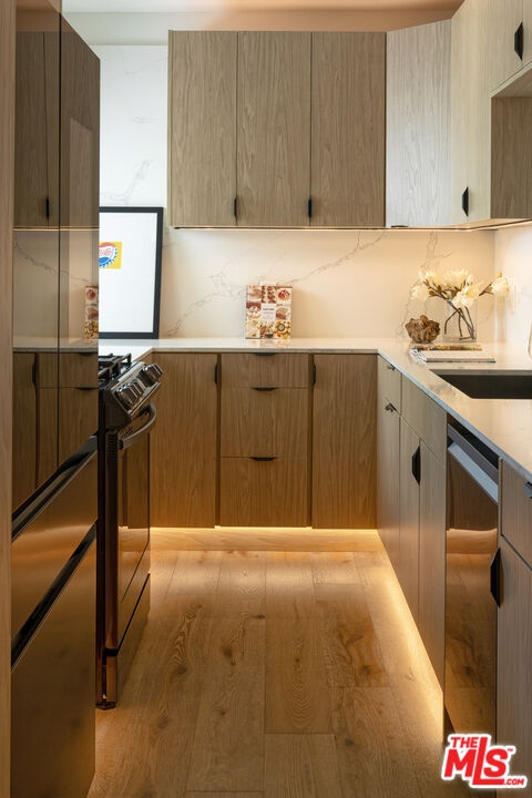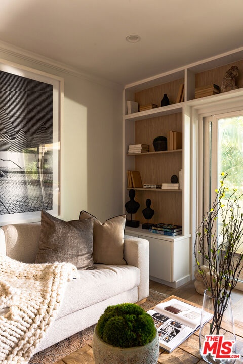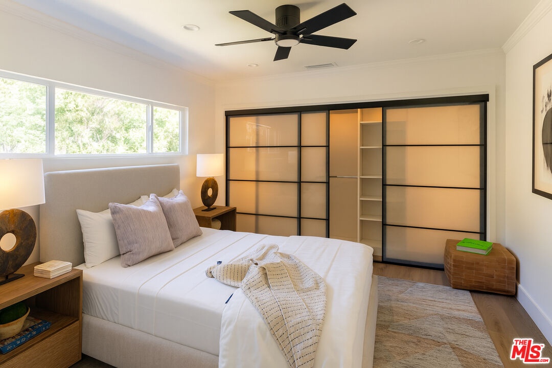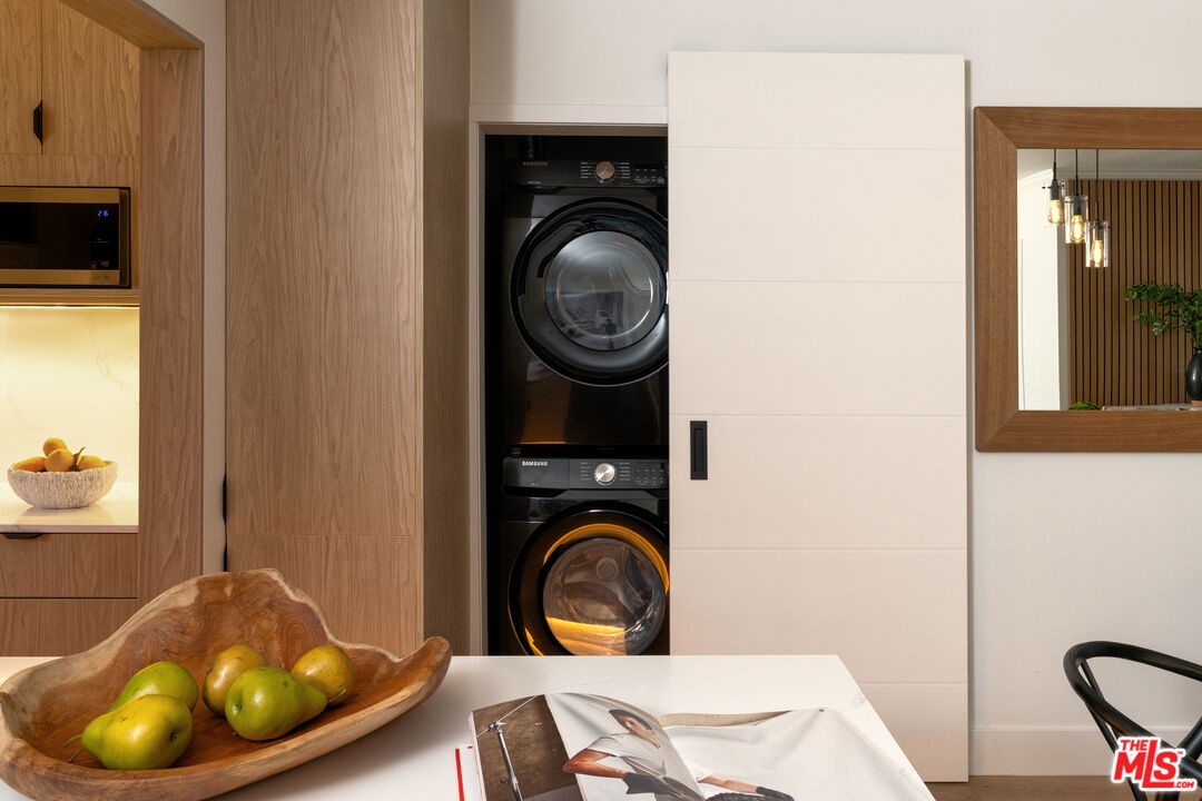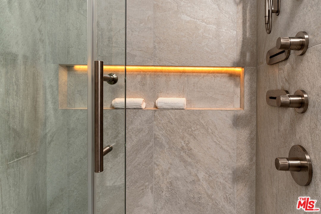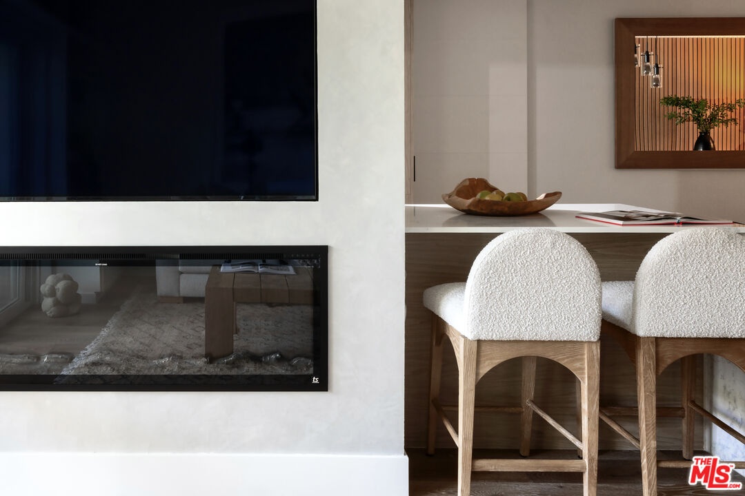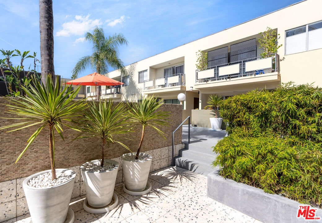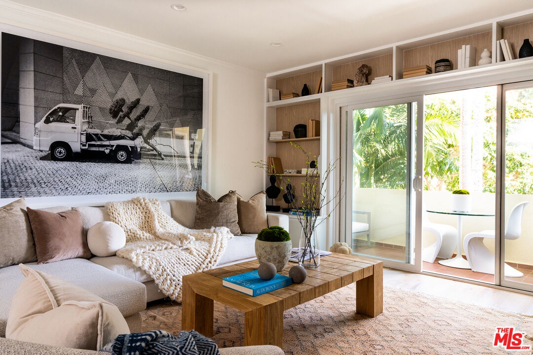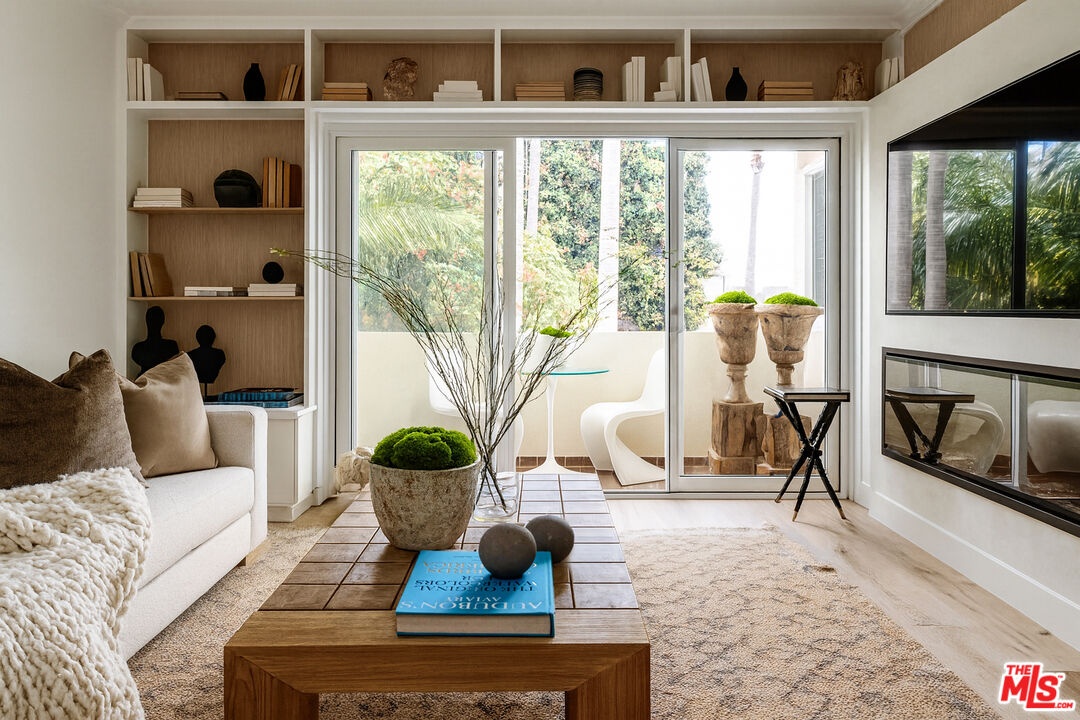 OPEN SUNDAY 1-3pm!! Perched on the top front corner of a classic mid-century building, this rarely available stunning 2Bed/2Bath condo captures the essence of refined West Hollywood living! Bathed in natural light and enjoying exceptional privacy with no adjacent neighbors on 2 sides, the home overlooks graceful palm and tulip trees and opens to a serene balcony retreat- an ideal setting for morning coffee or evening gatherings. *** Completely reimagined with a thoughtful and welcoming sense of design, the fully remodeled curated interior feature French white oak flooring throughout and a seamless open layout. The chef's kitchen is a true showpiece, with custom underlit white oak cabinetry, warm Caesarstone countertops, and top-of-the-line appliances. A waterfall peninsula offers additional seating and a large passthrough balcony window ensures a brightly lit kitchen and frames views of the lush balcony. Seamlessly connecting to the outdoor patio, the living room features a custom built-in bookcase that transitions into a stunning Venetian plastered wall unit perfectly framing a 65" flat-screen TV and contemporary fireplace (with adjustable ambient settings). The adjacent stylish dry bar, with custom underlet cabinetry, enhances the space, while the dining area's cozy corner nook offers versatility as an intimate lounge or home office. *** The primary suite is a truly light and bright retreat, featuring custom Japanese-inspired screen closet system and beautifully designed built-ins that will be the envy of all. The ensuite bath evokes a spa-like ambiance with a floating vanity, bidet toilet, limestone-inlaid walls, and a generous walk-in shower, all adorned with designer trim-work and lighting. The secondary bedroom is equally spacious and includes a fully customized closet, while the hall bath feels like a boutique hotel suite with elegant finishes and a step-in shower. ***Beyond the residence itself, the building embodies the effortless elegance of its mid-century heritage. Residents are greeted by a terrazzo-lined lobby while the central courtyard pool is surrounded by palms, cushioned lounges and sitting areas, offering a perfect escape reminiscent of quintessential Palm Springs. It's a place that feels as welcoming as it is stylish! *** Additional highlights include in-unit laundry, Eero wifi and smart home control system, upgraded LED lighting, custom doors and trim work throughout, HVAC, custom storage cabinetry, rare two side-by-side parking spaces with universal electric charger, and a level of detail and craftsmanship that sets this home apart from any other. *** Perfectly situated in one of West Hollywood's most sought-after and convenient locations, this quiet street, top-floor corner residence blends thoughtful design, comfort, and timeless mid-century character in one exceptional offering.