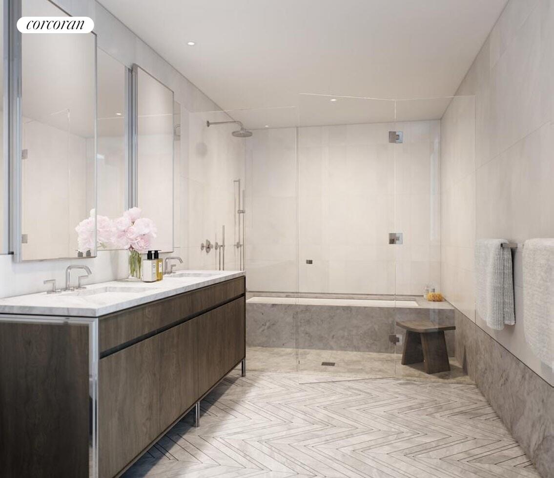 Two generously proportioned bedrooms are located on the main level, each complemented by spa-inspired bathrooms. Upstairs, the enchanting primary suite features its own private terrace to enjoy your morning coffee while watching the sunrise over the East River. The home's thoughtful layout provides exceptional privacy, flexibility, and sophistication-creating an endearing contemporary oasis in the heart of Gramercy.