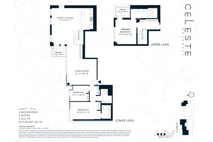Fall in love with this brand new duplex with two private terraces! The last Sponsor unit at the boutique new development - Celeste Gramercy, this bright and airy home spans 2,432 square feet of finely crafted interior space and 162 square feet of private outdoor space. Elegantly designed by ODA for both entertaining and everyday living, this three-bedroom, three-bathroom gem blends contemporary style with abundant natural light and seamless indoor-outdoor living. Enjoy the floor-to-ceiling windows, wide-plank walnut flooring, and an open-concept living and dining area anchored by a chef's kitchen appointed with Gaggenau appliances and custom white lacquer cabinetry.