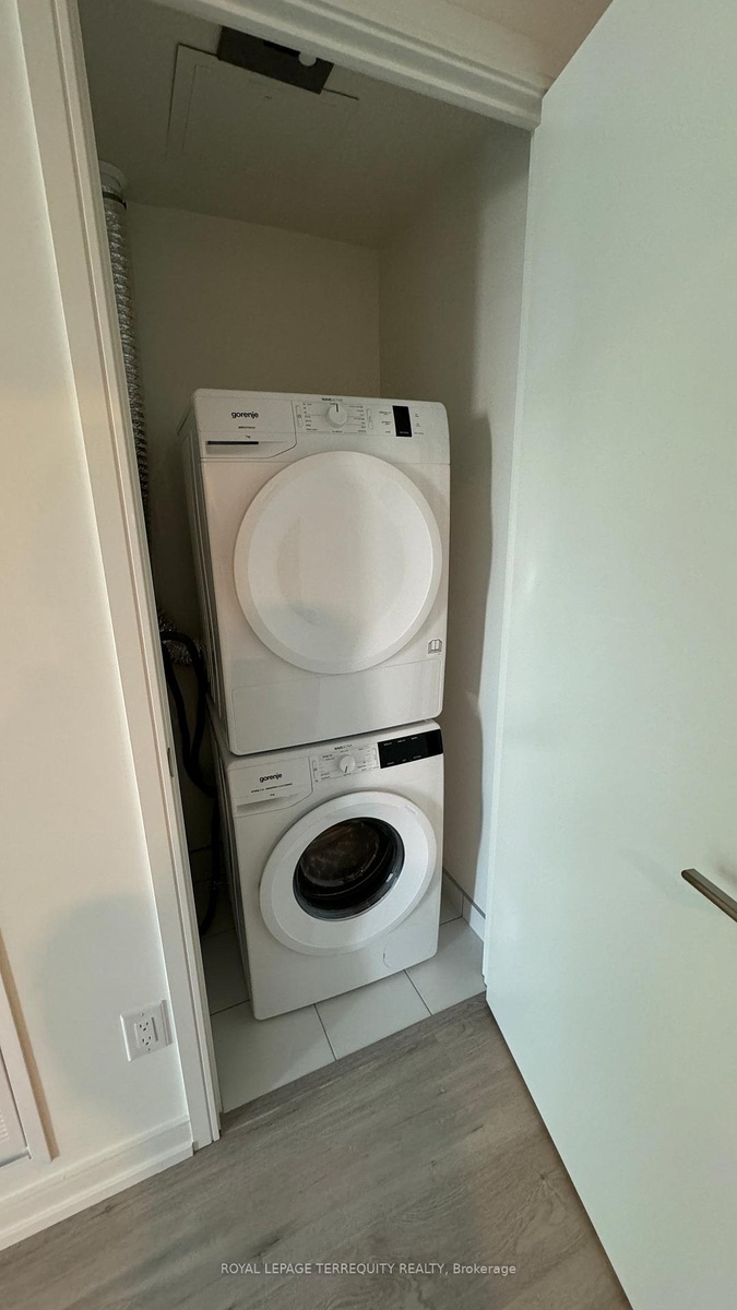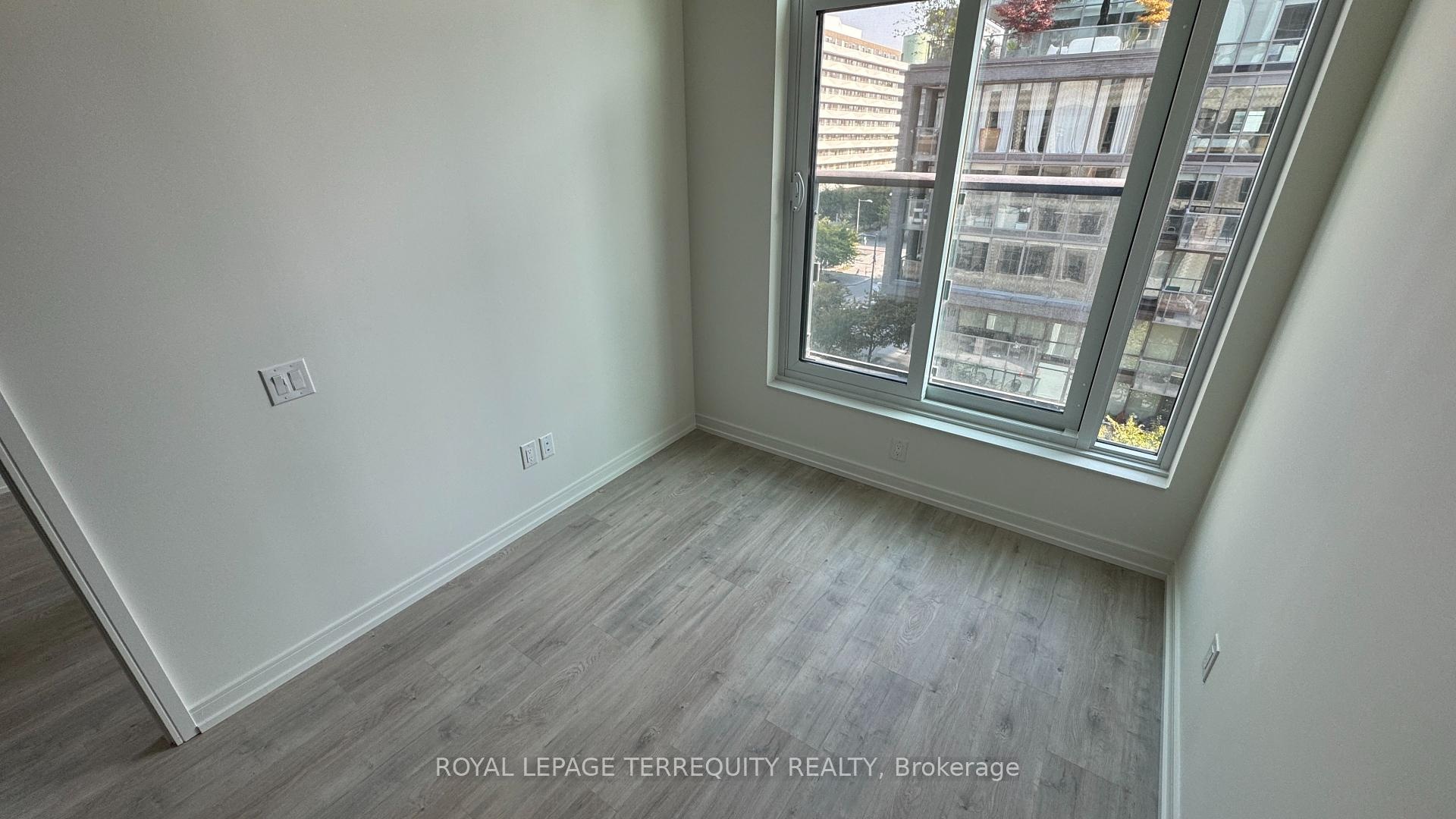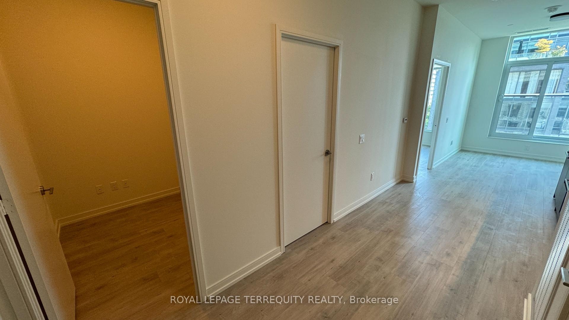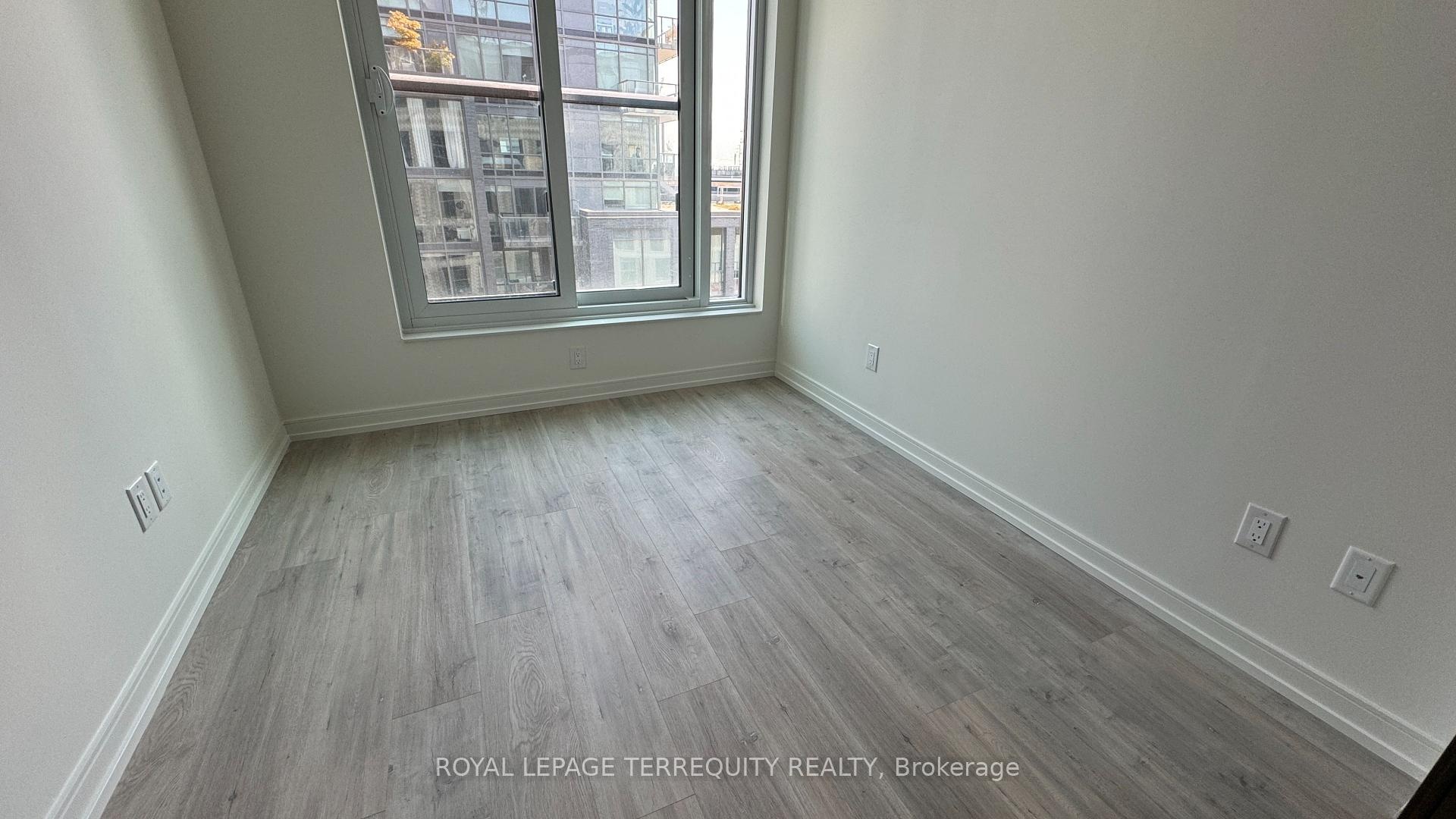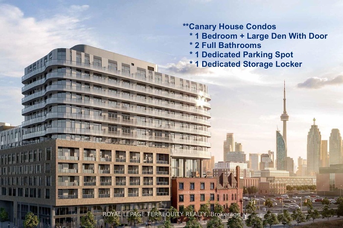 Available Nov 15th 2025, this like-new 1-bedroom plus large den condo *Including Parking* in the Canary District offers modern urban living with a Juliet balcony and 9-ft ceilings. Spanning 556 sqft, this east-facing unit features premium finishes, including custom European style cabinetry, quartz countertops, and high-end appliances. Enjoy sleek laminate flooring, contemporary lighting, and in-suite laundry for added convenience. The Canary House building includes top-notch amenities such as an entertainment room, private movie lounge, billiards, karaoke facilities, and a fitness room with stunning city views. The vistas, al fresco dining, and a cozy fire pit. Additional offerings include a party room, library, and terrace for private events. Located in the vibrant Canary District, you're steps from restaurants like Gusto 501 and Terroni Sud Forno, and minutes from the Distillery District and Corktown Common Park. Nearby grocery options include Aisle 24 Market, with streetcar access just a short walk away for quick trips to the Financial District. With easy access to the DVP and Gardiner Expressway, commuting is effortless. Schedule an appointment today to explore this exceptional unit and its prime location!