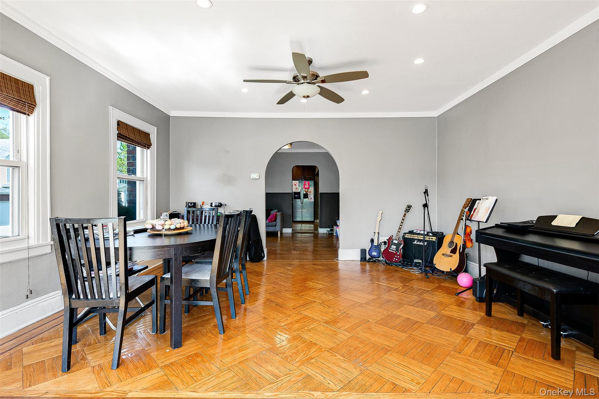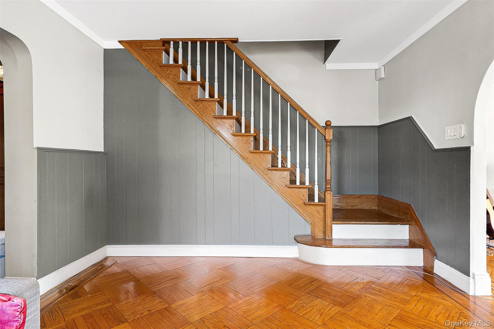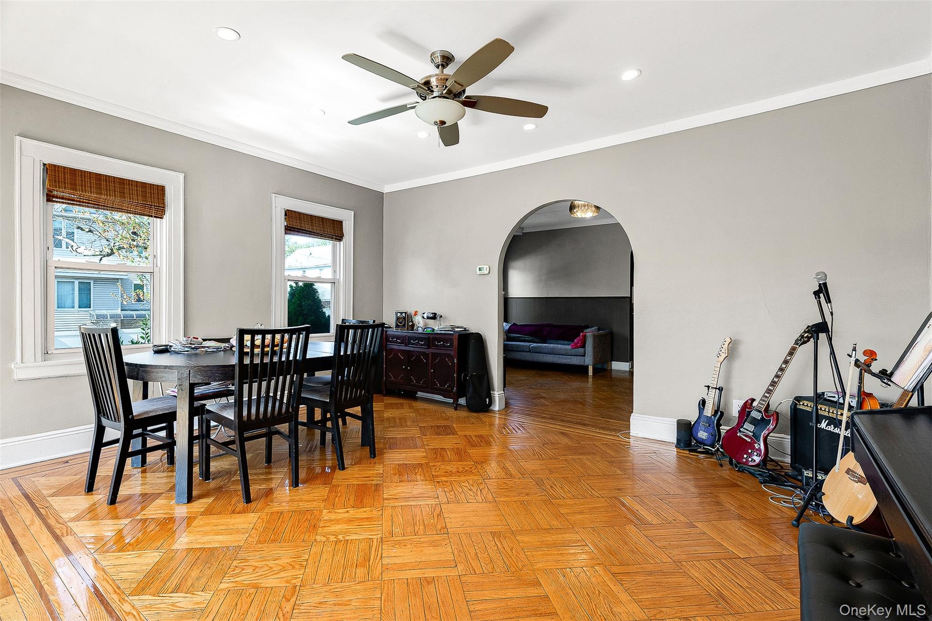 Welcome to this beautifully updated home in the heart of Forest Hills with a charming brick and vinyl facade. Southeastern exposure floods the space with natural light. Step inside to a generous open living and dining area wrapped in new windows and finished with new floors—perfect for everyday living and entertaining. The renovated eat-in kitchen is a modern centerpiece, ideal for casual meals or hosting guests with ease. Upstairs features three bright bedrooms, including a primary suite with custom floor to ceiling closets. The third-floor walk-up attic, with its high ceilings and new windows is finished to be used as home office, playroom, or creative space. Downstairs, the finished basement offers a family room, dedicated office, laundry room, and full bath—flexible living at its best.