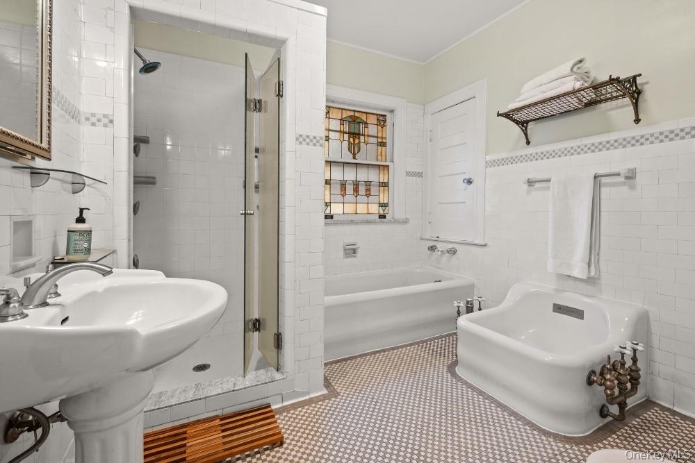 Second Floor. Two spacious light filled Second Bedrooms with bay window seats, walk-in closets, with one having an adjoining washroom and linen cupboard. Oversized Primary with adjoining bright Sunroom (full house width) with large walk-in closet area. Oversized bathroom with separate deep shower, bathtub alcove with stained glass window and hip bath. Stair hall with linen closet.