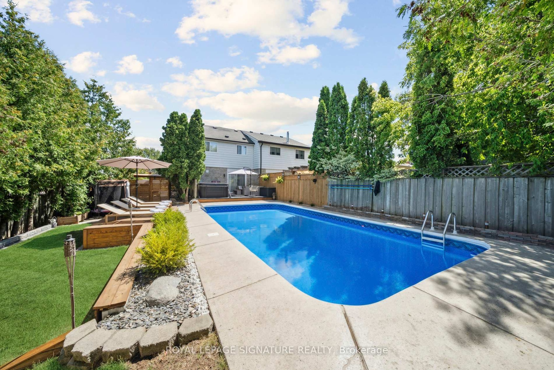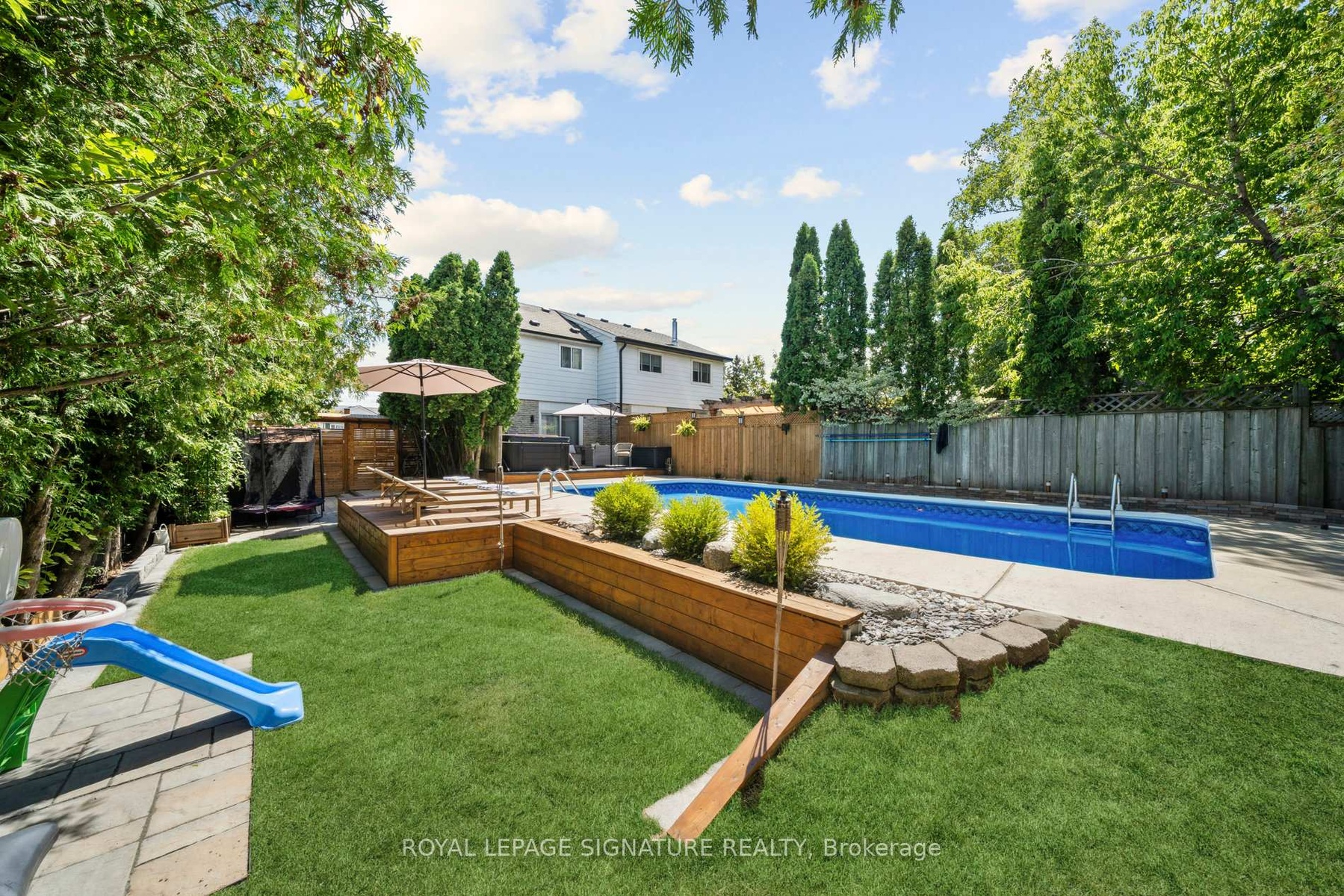 Welcome to 519 Galedowns Court A Rarely Offered Corner-Lot Retreat in the Heart of Mississauga. This stunning home is situated on a premium, landscaped corner lot that offers both beauty and privacy. From the moment you arrive, you'll be impressed by the long, wide private 5-spaces driveway, the brand-new front porch, and the elegant double-door entry that sets the tone for what awaits inside. Step into a home that has been fully renovated from top to bottom, designed with modern style and everyday functionality in mind. Featuring 3+1 spacious bedrooms and 2 new washrooms, this residence blends open, inviting living spaces with warm, thoughtful finishes that are ready for your family to enjoy. The outdoor living spaces are truly exceptional. Entertain with ease or simply relax in your own backyard paradise, complete with a sparkling pool, rejuvenating jacuzzi, and two expansive decks ideal for summer barbecues, family gatherings, or quiet evenings under the stars. The landscaping has been carefully planned to enhance both curb appeal and privacy, creating a peaceful oasis right at home. This property combines luxury, comfort, and convenience, making it a rare opportunity in one of Mississauga's most desirable neighbourhoods. Whether you're hosting friends, spending time with family, or enjoying the serene setting on your own, 519 Galedowns Court is a home where every detail has been considered. Steps to the schools, parks, community centre, Square One, grocery stores, public transport. Do not miss the opportunity! Electric Vehicle Charger, New Fence, 2 Decks, Landscaping, Jacuzzi, New Pool Liner Summer 2025, Water Filled Summer 2025, Pool System Upgraded, Thermal Windows, Front Door Double Opener, New Electrical Breaker, NEST Thermostat, Video Camera Installed On Front Door, High-Efficiency Furnace And A/C. Water Heater Owned. Basement Finished In Summer 2025. Kitchen Aid Appliances, Gas Stove. Porch 2024 natural stone, 2 sheds, Hot Tub Has Seperate Breaker