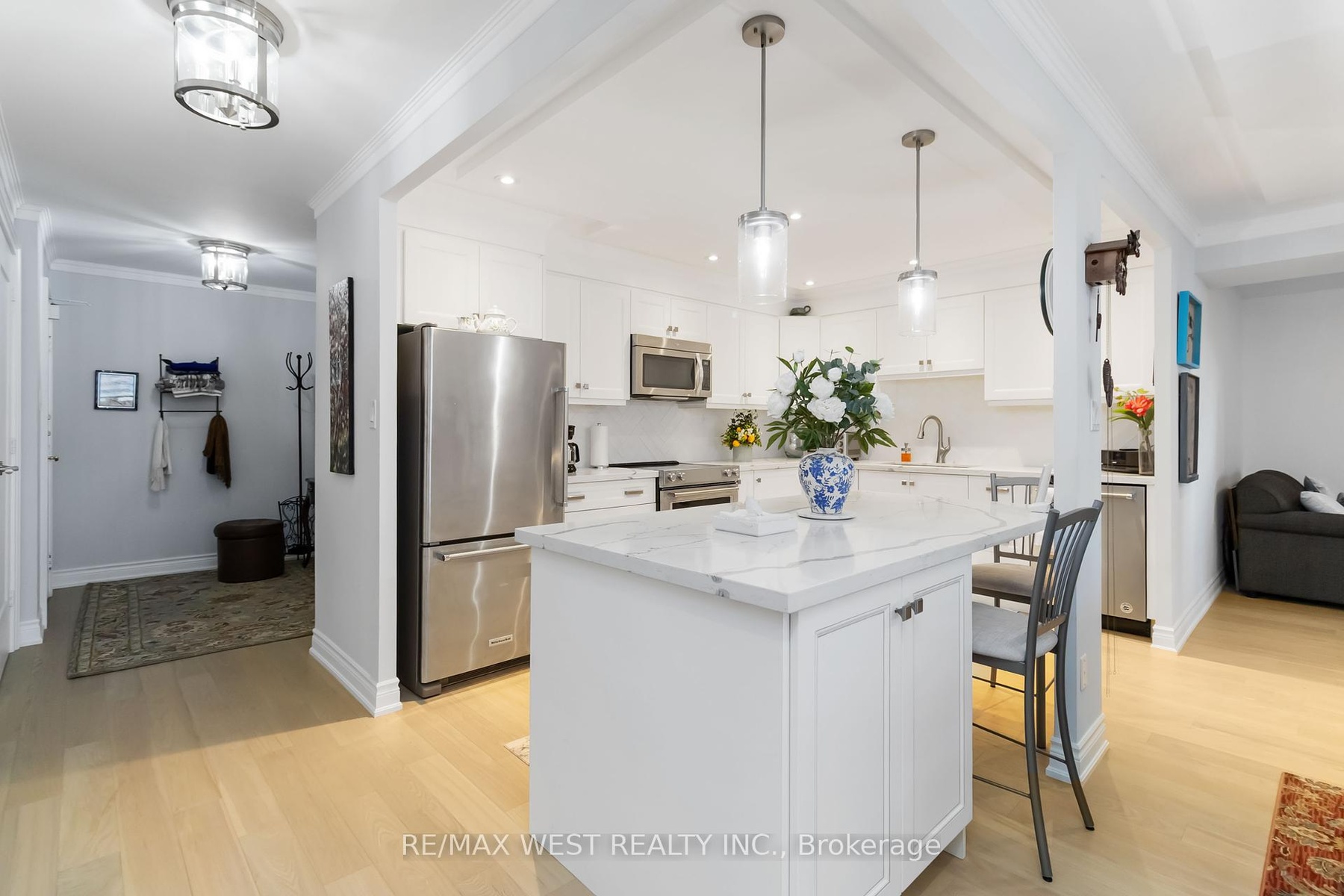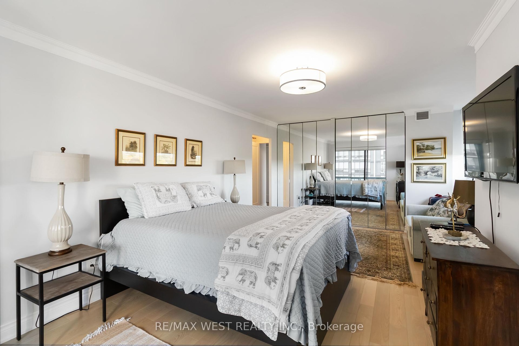 Exquisitely redesigned 2 Bed + Den corner unit in the prestigious Ennisclare on the Lake! Professionally renovated in 2020, this 1,576 sq. ft. home features floor-to-ceiling windows throughout, hardwood floors, custom cabinetry, imported Italian marble, quartz countertops, and premium stainless steel appliances. The chefs dream kitchen overlooks the sunken living room, perfect for entertaining. Enjoy three walkouts with abundant natural light. The massive primary bedroom includes a spa-like ensuite with detailed tile shower, while the oversized second bedroom has a double closet. The unit also has its own laundry room, a separate storage room, one parking space, and one locker. A beautiful combination of luxury, style, and comfort in one of Oakvilles most desirable lakefront communities.