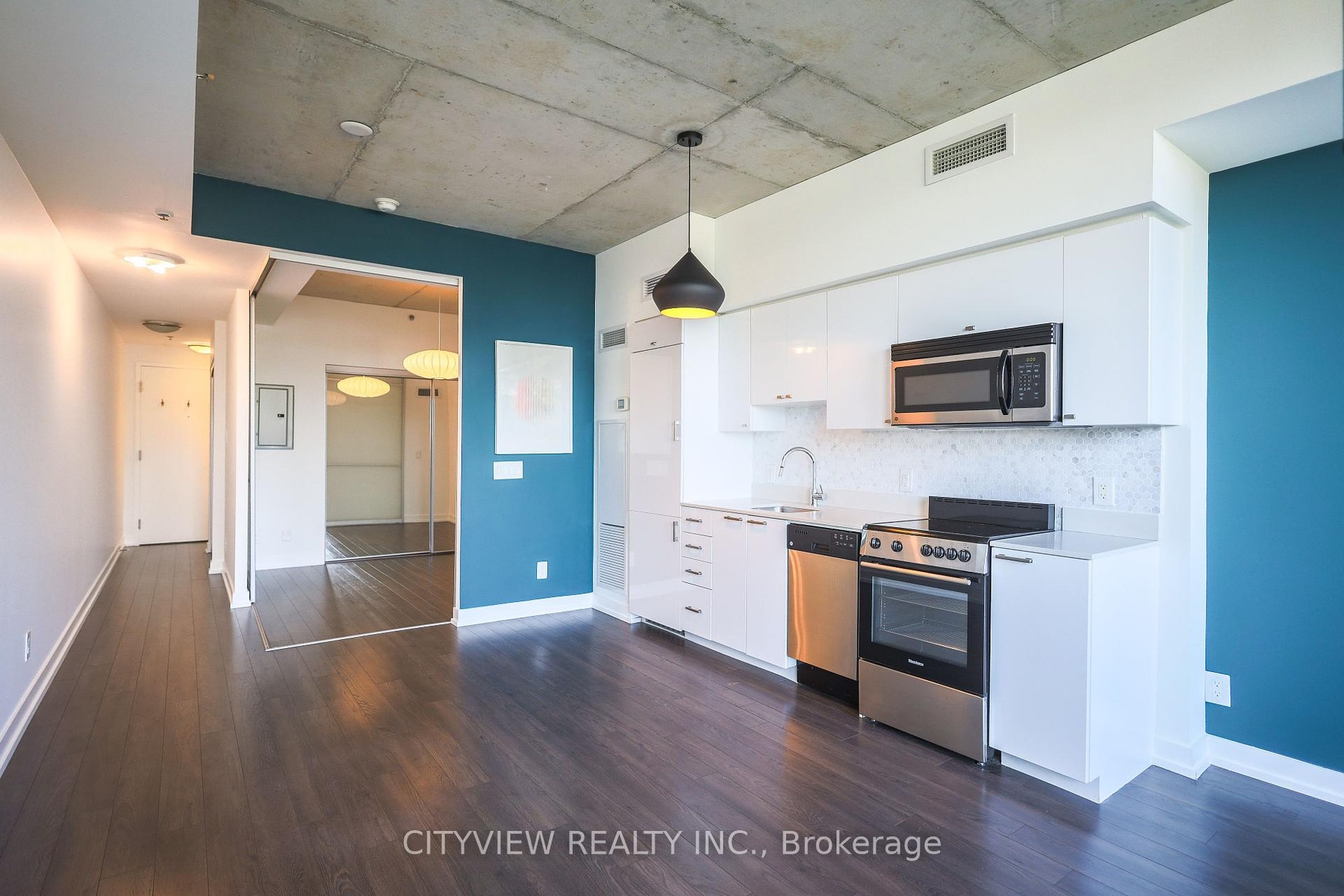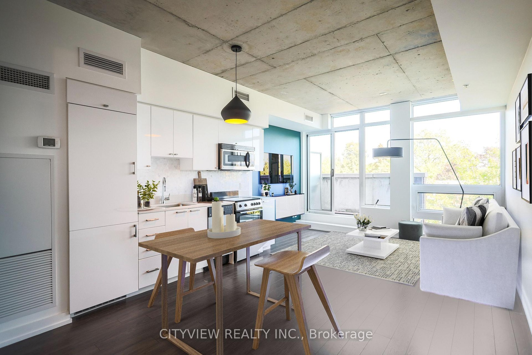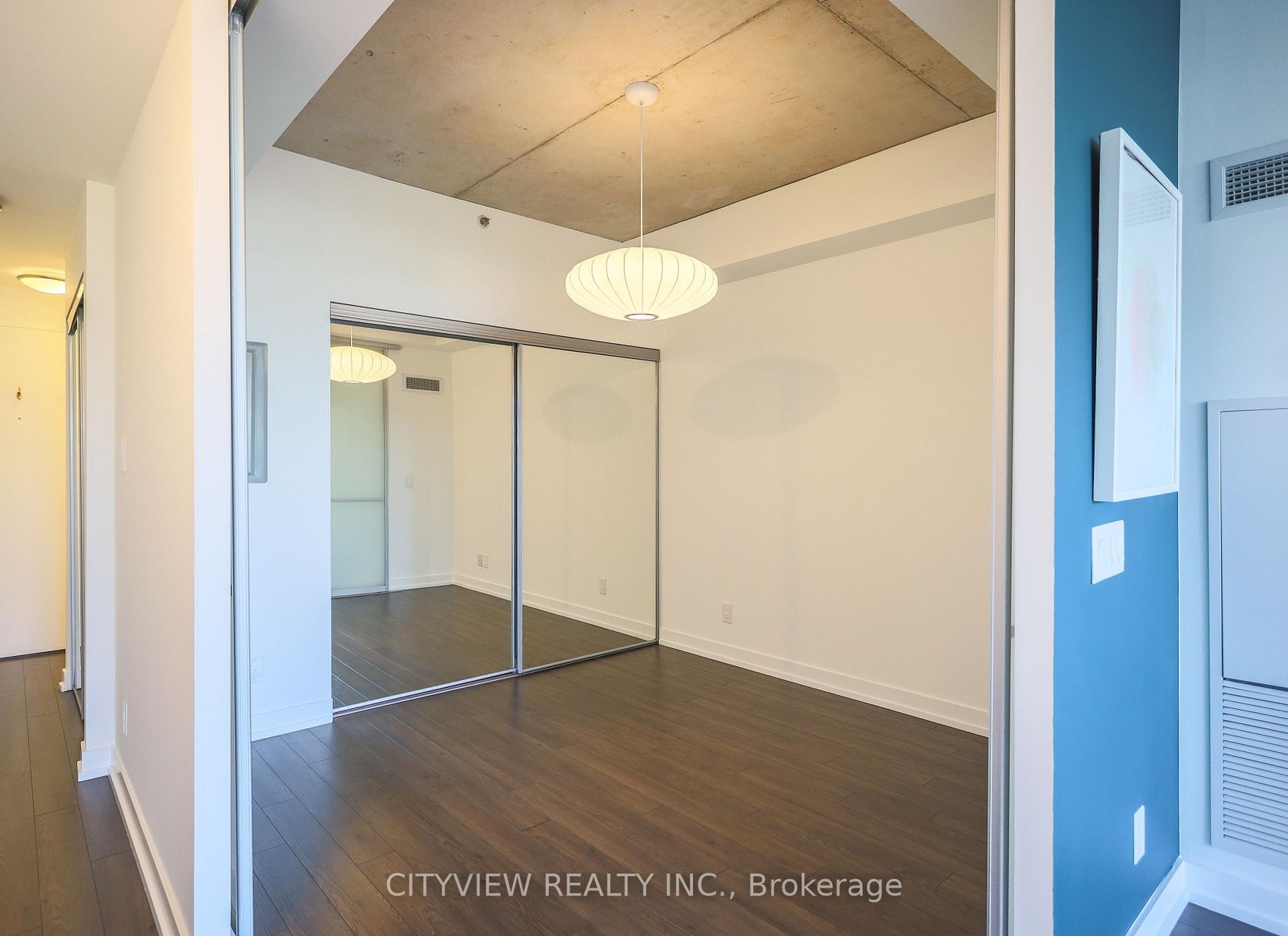 Welcome to 707 Lofts Located at Dovercourt and Bloor! A Stunning well maintained One bedroom in the heart of the northwest corner of the Little Italy neighborhood! The interior showcase's a classic loft-inspired open-concept design with nine-foot exposed concrete ceilings, laminate flooring, floor-to-ceiling windows, compact kitchen with stainless steel appliances and a private balcony with a CN Tower view! Open concept living/dining room combined with kitchen. Spacious primary bedroom with tons of closet space. Freshly painted unit ready to move in including 1 Parking 1 Locker. Steps to Subway, just two-minutes from Bloor Street West and the Bloor court Village near shops, restaurants, entertainment and much more!