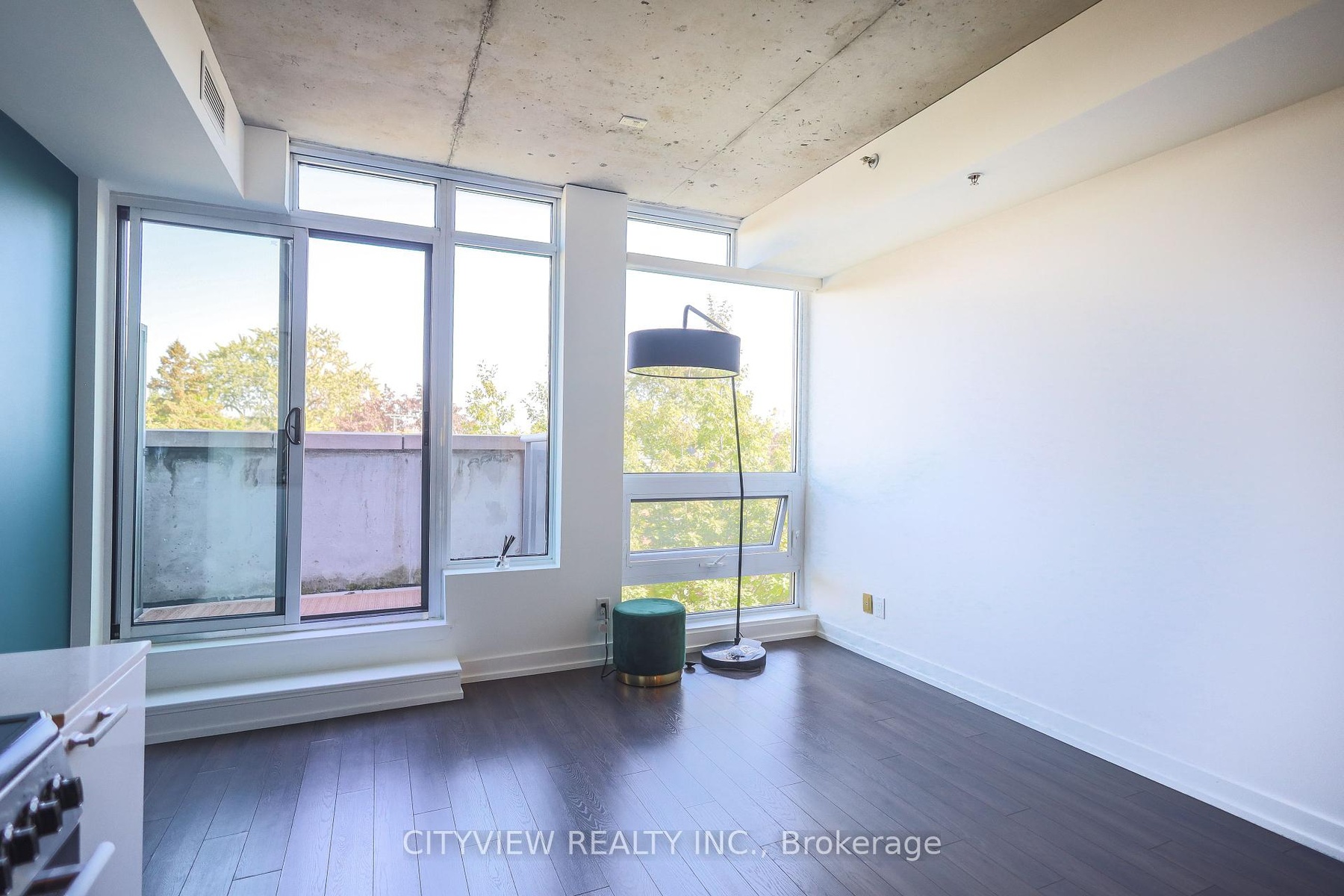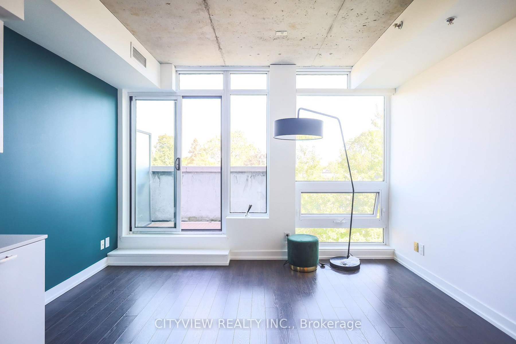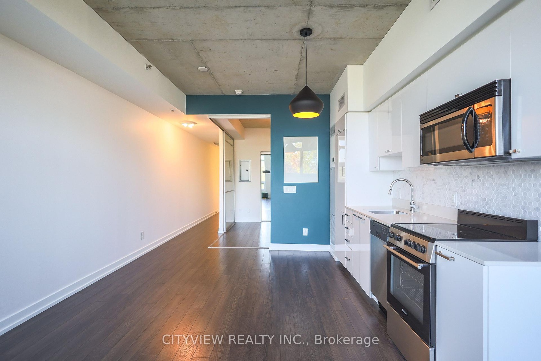 Welcome to 707 Lofts Located at Dovercourt and Bloor! A Stunning well maintained One bedroom in the heart of the northwest corner of the Little Italy neighborhood! The interior showcase's a classic loft-inspired open-concept design with nine-foot exposed concrete ceilings, laminate flooring, floor-to-ceiling windows, compact kitchen with stainless steel appliances and a private balcony with a CN Tower view! Open concept living/dining room combined with kitchen. Spacious primary bedroom with tons of closet space. Freshly painted unit ready to move in including 1 Parking 1 Locker. Steps to Subway, just two-minutes from Bloor Street West and the Bloor court Village near shops, restaurants, entertainment and much more!