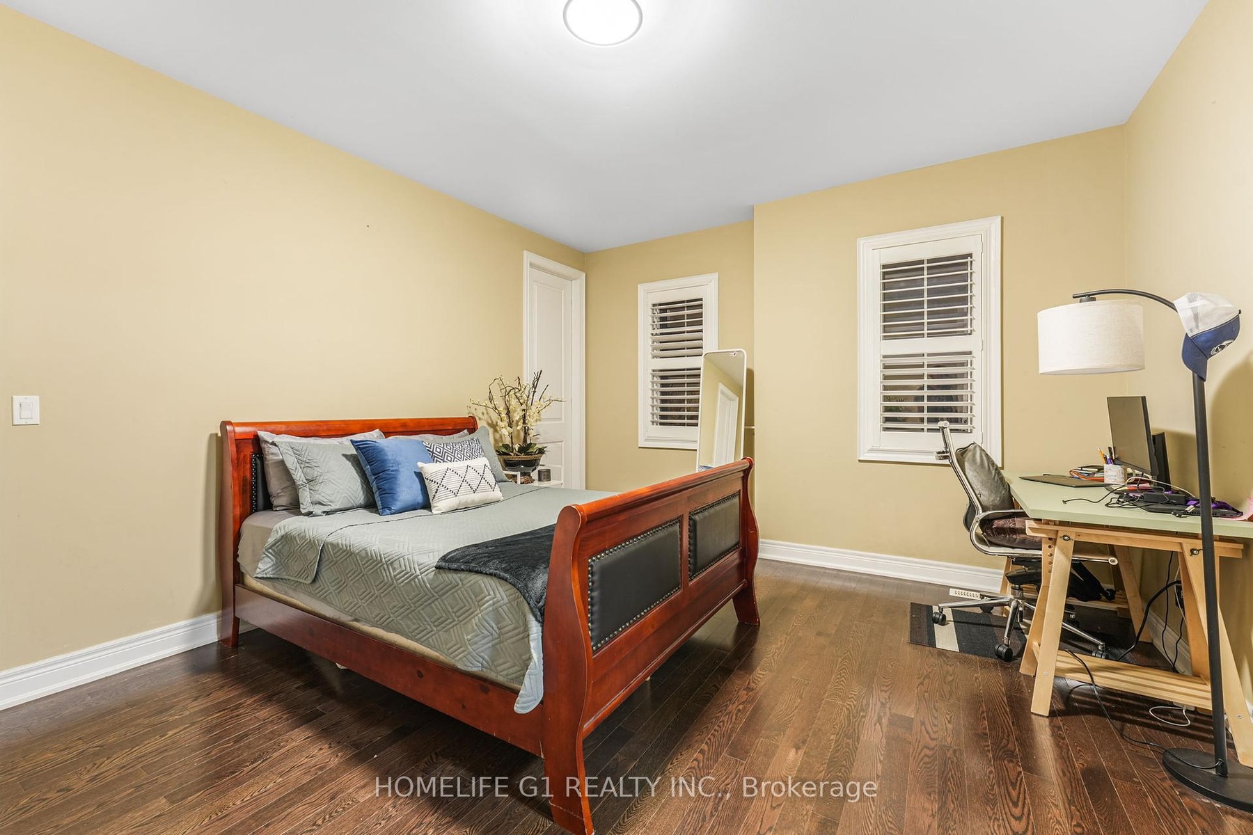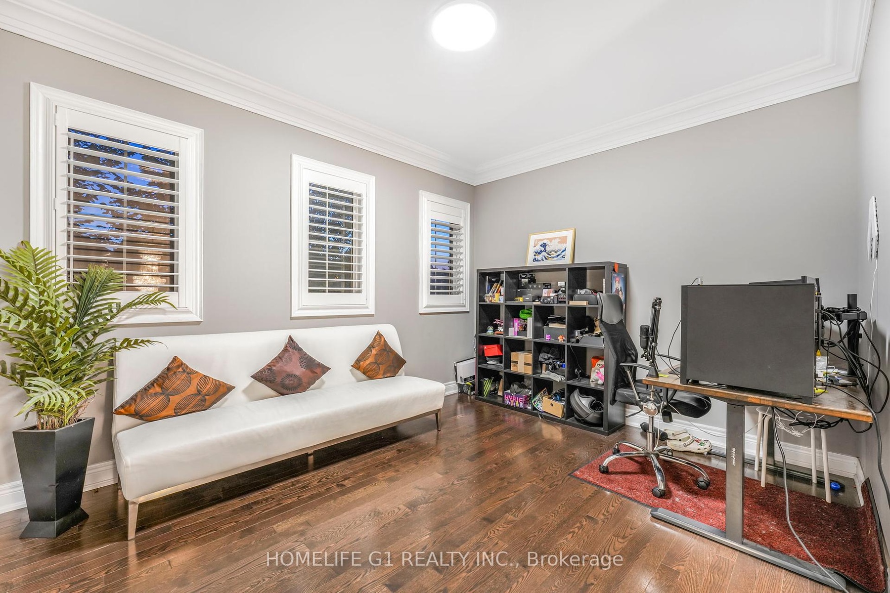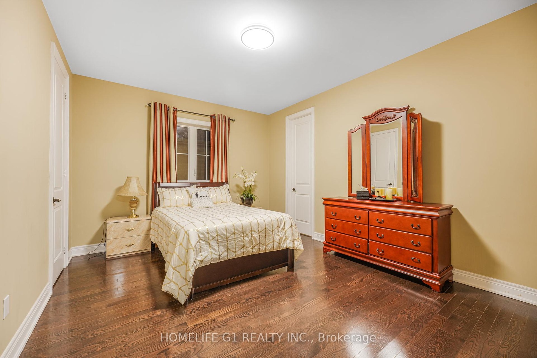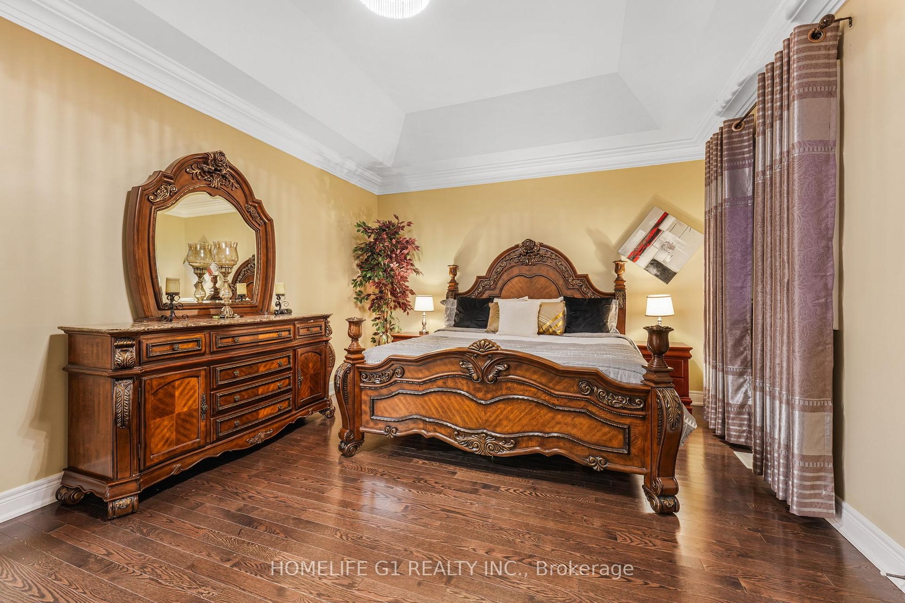 Welcome to this extraordinary executive home, perfectly situated on a premium cul-de-sac in the Prairewood enclave built by Sorbara. Offering 5,200 sq. ft. of exquisitely finished living space, this residence blends timeless elegance with thoughtful upgrades, creating the perfect setting for both comfortable family living and effortless entertaining. The exterior makes a striking first impression with a professionally manicured lawn, upgraded porch, interlocking stone driveway and walkway, and a full 6-zone in-ground sprinkler system** that keeps the property lush and green. Inside, the main floor boasts smooth ceilings throughout and an impressive 10-foot coffered ceiling, creating an open and airy feel. A dedicated office/library with a powder room offers a quiet space for work or study. The chef-inspired kitchen is a true showpiece, featuring crown moldings, upgraded cabinetry, a 6-burner gas cooktop with marble backsplash and pot filler, Jenn-Air built-in appliances (microwave, oven, dishwasher), a wine cellar, and a large island perfect for gatherings and entertaining. Upstairs, youll find 9-foot ceilings, five generously sized bedrooms, and three beautifully designed bathrooms, including a luxurious primary suite. The finished basement with 9-foot ceilings is an entertainers dream, complete with two additional rooms, a full bathroom, a second full kitchen, and a built-in theatre system perfect for hosting guests or creating a private retreat for extended family. Outdoor living is elevated with a covered deck featuring tile flooring, providing an incredible space to host friends and family. The backyard is professionally landscaped and designed to impress. Additional highlights include California shutters throughout, a 2-car garage, 51-foot frontage, and end-of-street privacy a rare combination that delivers both curb appeal and tranquility. This exceptional home truly has it all. You have to see this property to appreciate everything it offers!