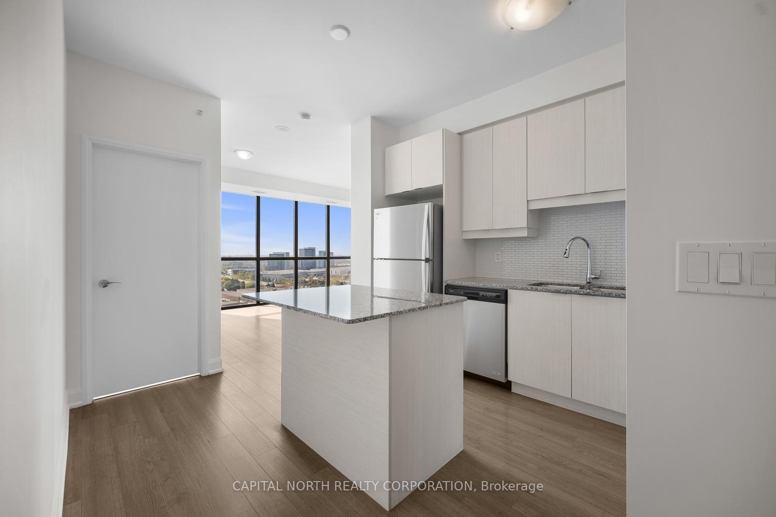 Stunning 2-bedroom, 2-bathroom corner suite with panoramic south and west city views. This bright and spacious unit features floor-to-ceiling windows, 9' ceilings, modern finishes, and laminate flooring throughout. The upgraded kitchen boasts granite countertops, a large center island with breakfast bar, and an ensuite laundry room. Enjoy a rare oversized primary bedroom with a 4-piece ensuite, plus a second bedroom with its own ensuite. Located just steps from the subway for unmatched convenience.