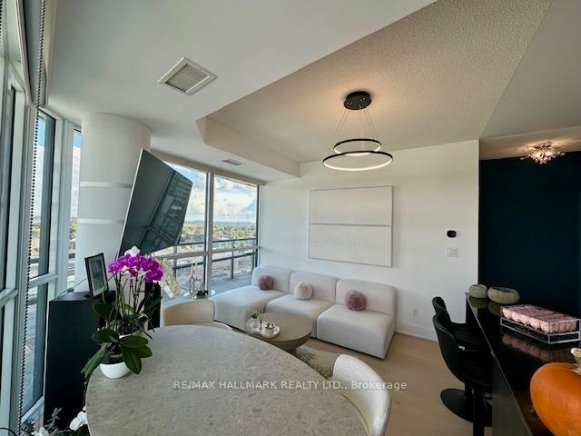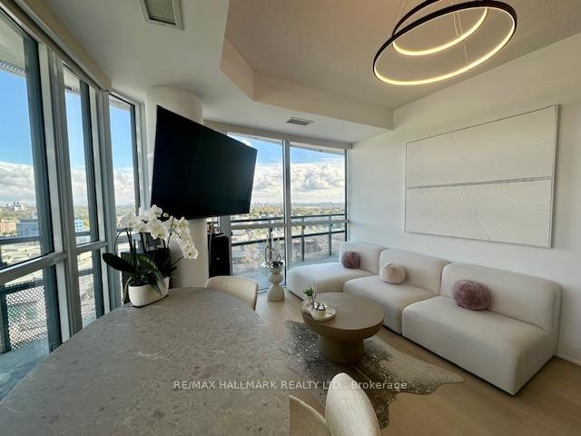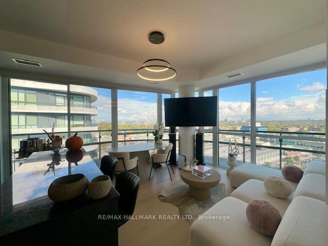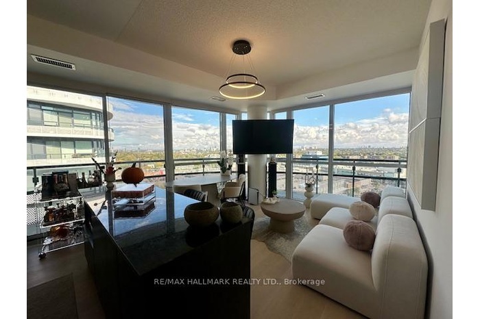 Step into luxury living at Flaire Condos the premier residence at the Shops at Don Mills.This stunning, ultra-modern corner suite offers a bright and versatile split 2-bedroom, 2-bathroom layout with soaring 9-ft ceilings and floor-to-ceiling windows that fill the space with natural light. Enjoy unobstructed city views from your expansive wraparound balcony.Residents enjoy a full suite of upscale amenities including a 24-hour concierge, rooftop terrace with BBQs, state-of-the-art fitness centre, party and theatre rooms, and beautifully landscaped outdoor spaces.Live steps away from the vibrant Shops at Don Mills offering premier dining, shopping, and entertainment right at your doorstep.