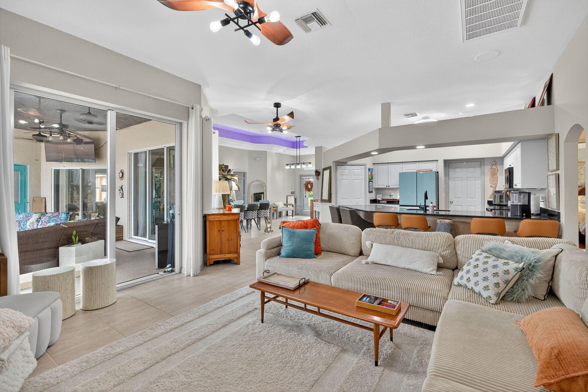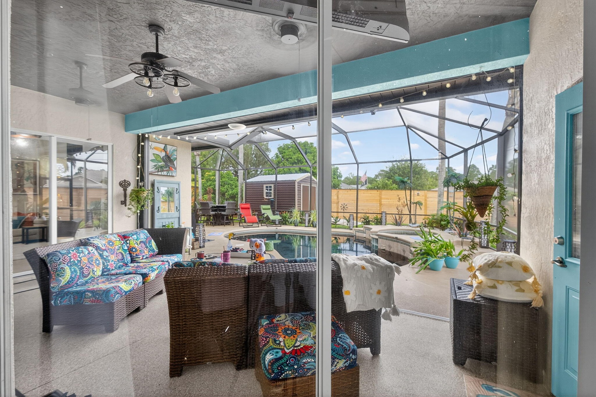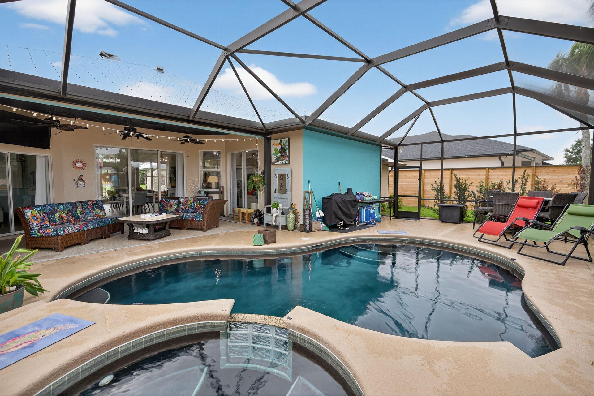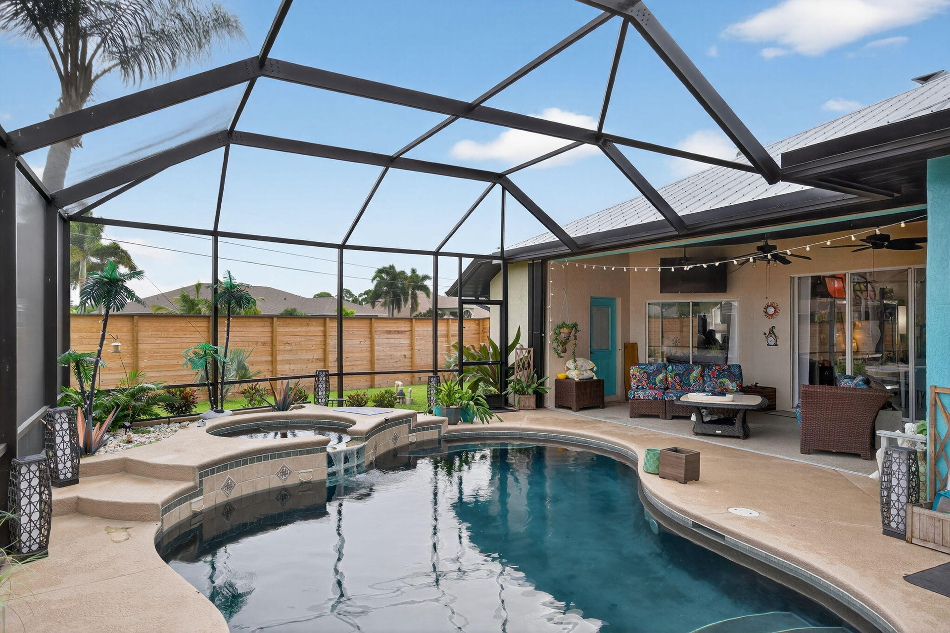 Stunning 3BR/2.5BA, 2-car garage CBS pool home with over $125K in upgrades! Featuring a 2023 metal roof and gutters, 2024 accordion shutters. Backyard offers ultimate privacy with a 2025 custom built 8' horizontal fence w/ reinforced gates. oversized corner lot, 2024 Shed with ramp wired for electrical hookup. Guinite black-bottom custom tile pool w/ spa, new 2024 pool heater & pump, and a refurbished screened pool cage. Custom-painted lanai & cabana bath w/ updated lighting & faucet. Professionally landscaped. Driveway custom painted & sealed w/ decorative border. House wired for generator hookup. Tile flooring throughout, new Samsung Bespoke appliances, 2024 interior & exterior painted. Updated lighting & fixtures. With too many upgrades to list, you have to see it to believe it!