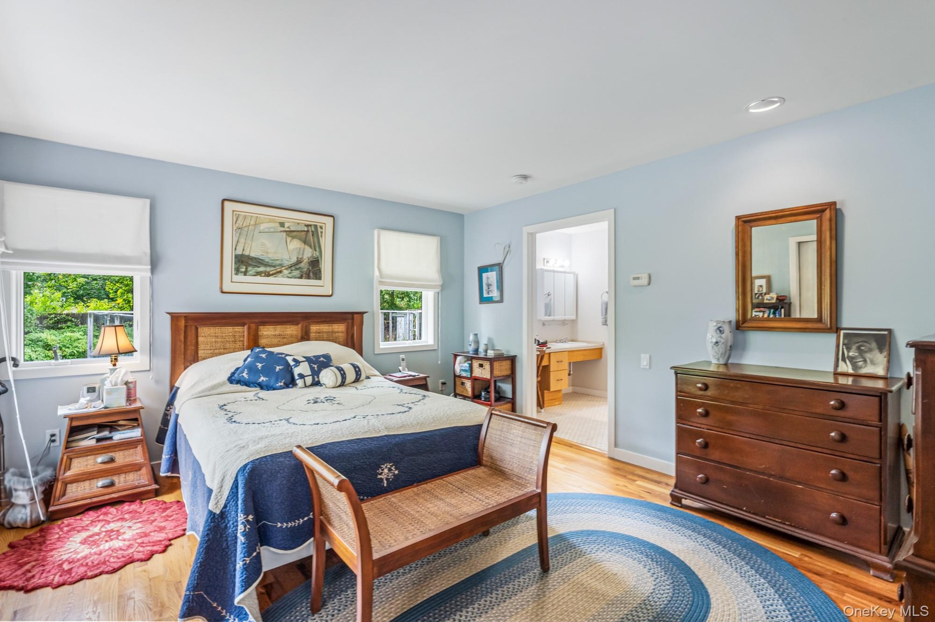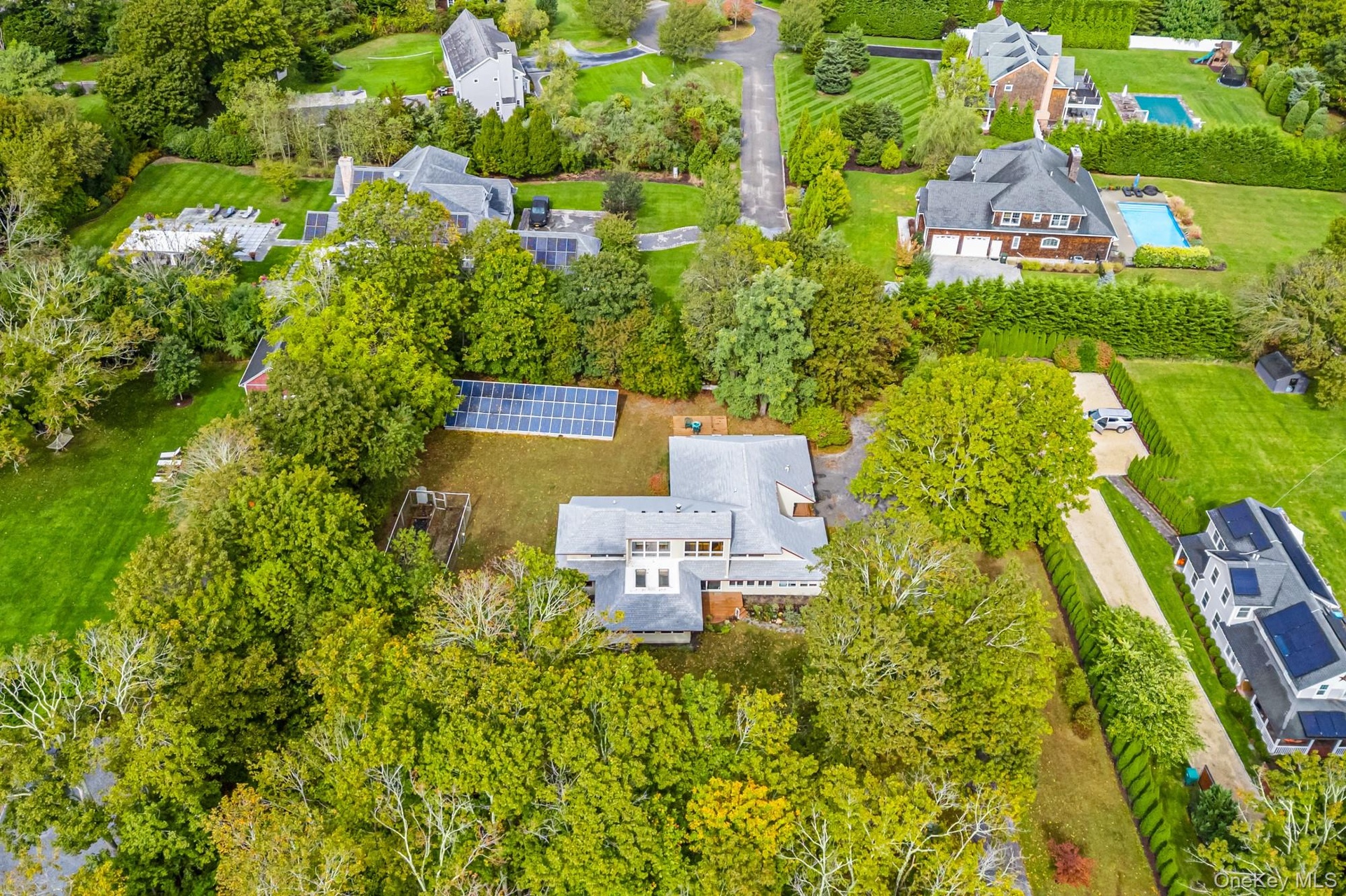 Just 24 years young, this bright contemporary home is no ordinarily constructed home. Rather, it is a spacious, custom build with attention to space, sunlight and ADA accessibility offering an open floor plan about its 3,000+ interior square feet. Built in 2001, this handsome residence is sited extra deeply on one full acre with an abundance of natural flora about its periphery. Sun drenched by design to include oversized windows and skylights, the home offers an inviting living room with impressive wood burning stove complete with soap stone surround for heat retention. It enjoys a bright, dedicated dining area and attractive, newly remodeled kitchen (ADA accessible) with gorgeous, stylish, custom cabinetry and hardware. There is both a first floor primary ensuite along with a guest en suite. A great bonus is the generously sized great room equipped with an Endless® pool, available for you to keep should you wish or deconstruct to utilize the room as a game room or even a den. A 2nd floor guest en-suite along with an open loft is enhanced by majestic windows projecting glorious daylight about the wide stairwell and open hallway. Thoughtfully constructed and designed, this home is extremely efficient in lowering its carbon foot print employing an impressive array of 48 solar panels. An oversized, 1 1/2 car attached garage is an added bonus and leads to a full, unfinished basement. Yes, you too, can own in The Hamptons! Experience this most surprising home, ready to be customized for your ownership. Priced to sell.