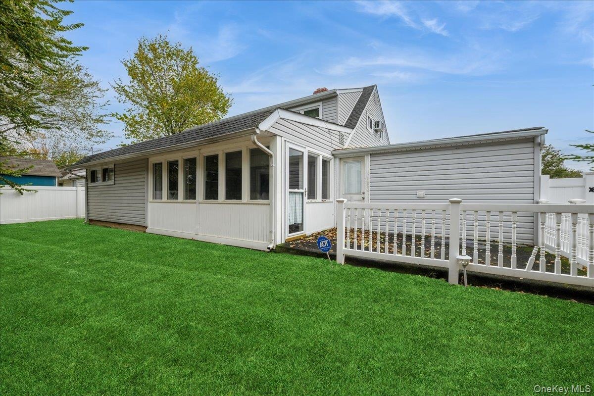 Welcome to this spacious and beautifully expanded Levitt ranch, offering 7 versatile rooms and 4/5 bedrooms - perfect for growing families or those seeking flexible living space. This charming home features 1 1/2 baths, a convenient attached garage and a cozy porch ideal for relaxing or entertaining year round. Enjoy the privacy of a fully fenced backyard complete with a patio, perfect for summer barbecues and outdoor gatherings. Blending classic Levittown charm with thoughtful updates and ample room to make it your own, this home delivers comfort, functionality, and endless potiential in a desirable neighborhood setting.