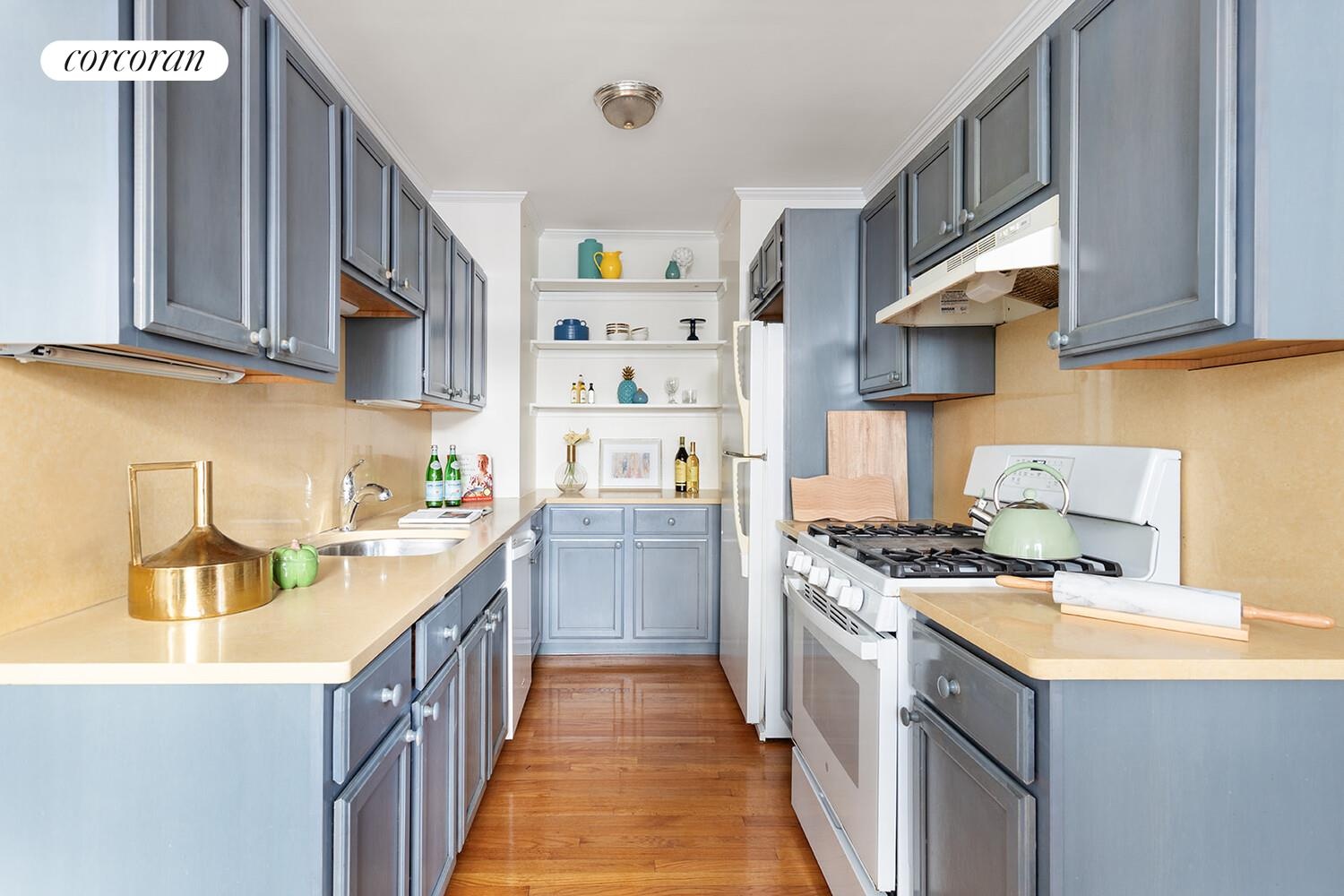 Come live in Hudson View Gardens! Light and beauty abound in this gorgeous one-bedroom home in the elevatored B building. You will dream about coming home to the expansiveness that greets you as you enter the foyer and then draws you in. The 18-foot long living room, with its historical casement windows, not only spacious enough for entertaining, it also houses a built-in desk and Murphy Bed to serve as an extra place for sleeping. The beautifully renovated kitchen has plenty of counter space and abundant wooden KraftMaid cabinetry. To further enhance your culinary experiences, the 10.5 by 8-foot dining area easily lends itself to host your dinner parties or for quiet meals by northern daylight which gently flows in all day long. Rounding out this serene abode is a renovated bathroom and a sizable bedroom which can hold a king size bed with room to walk around in addition to a huge closet system built out of the two original closets (see floor plan). Speaking of closets, there are two more, a linen closet outside the bathroom and a coat closet in the foyer. Reach out to the listing broker today for a private showing of B32 and all the amenities Hudson View Gardens has to offer. Pet friendly.