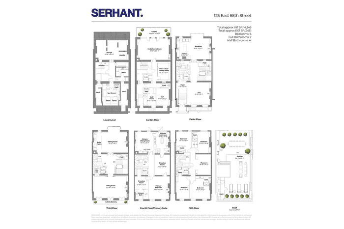 35-Foot-Wide Mansion - approximately 14,300 Interior SF + 3,500 Exterior SF - 6 Beds - 11 Baths - Rooftop Oasis - Garden - Wellness Level