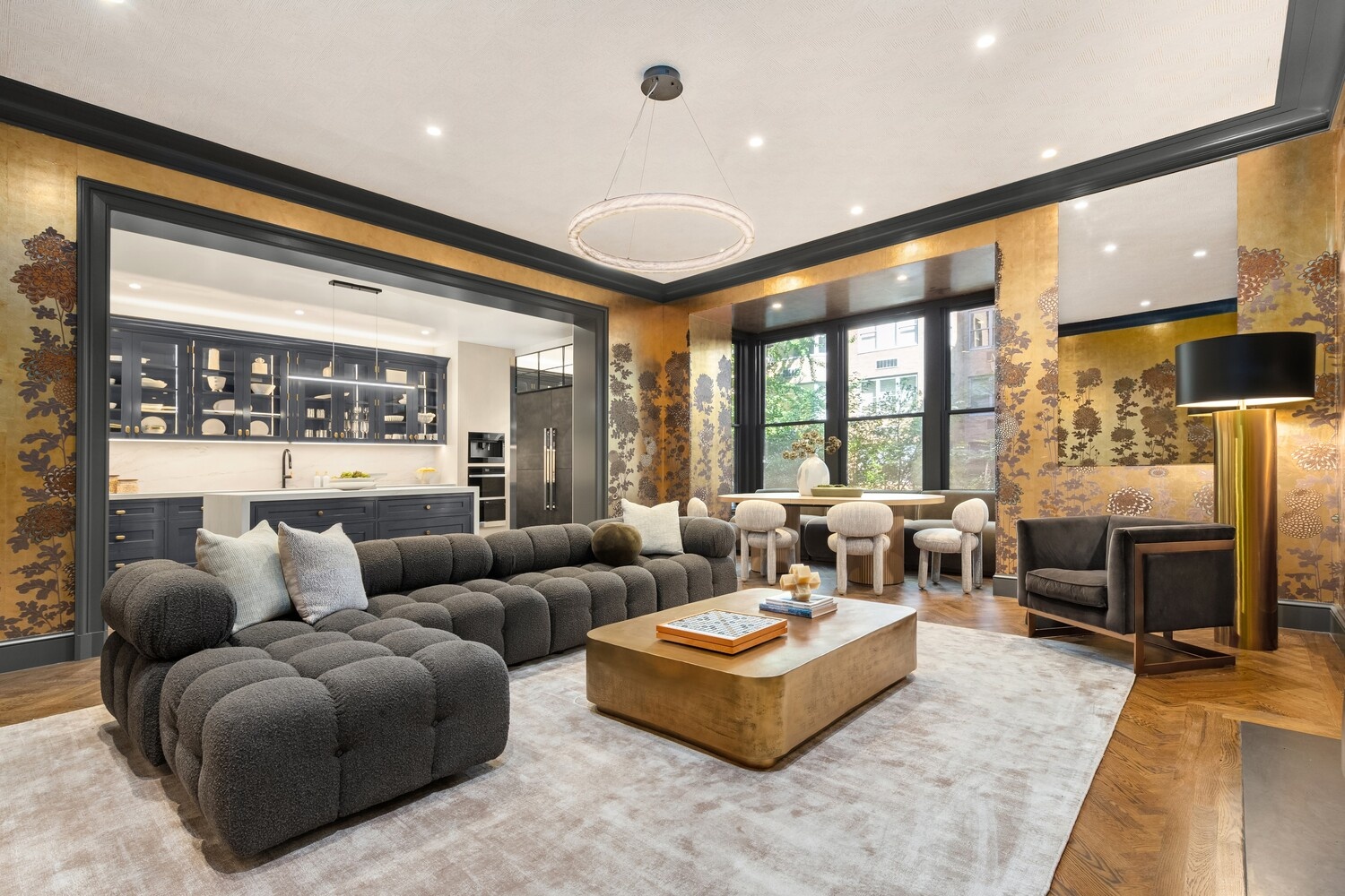 This home has exceptional scale spanning approximately 14,300 interior square fee across six expansive levels, with an additional 3,500 square feet of private outdoor space. This extraordinary townhouse features six bedrooms, eleven bathrooms , and five fireplaces . Designed for grand entertaining, the home has a 30 foot + x 20 living room with 11-foot beamed ceilings, and a formal dining room that comfortably seats sixteen.