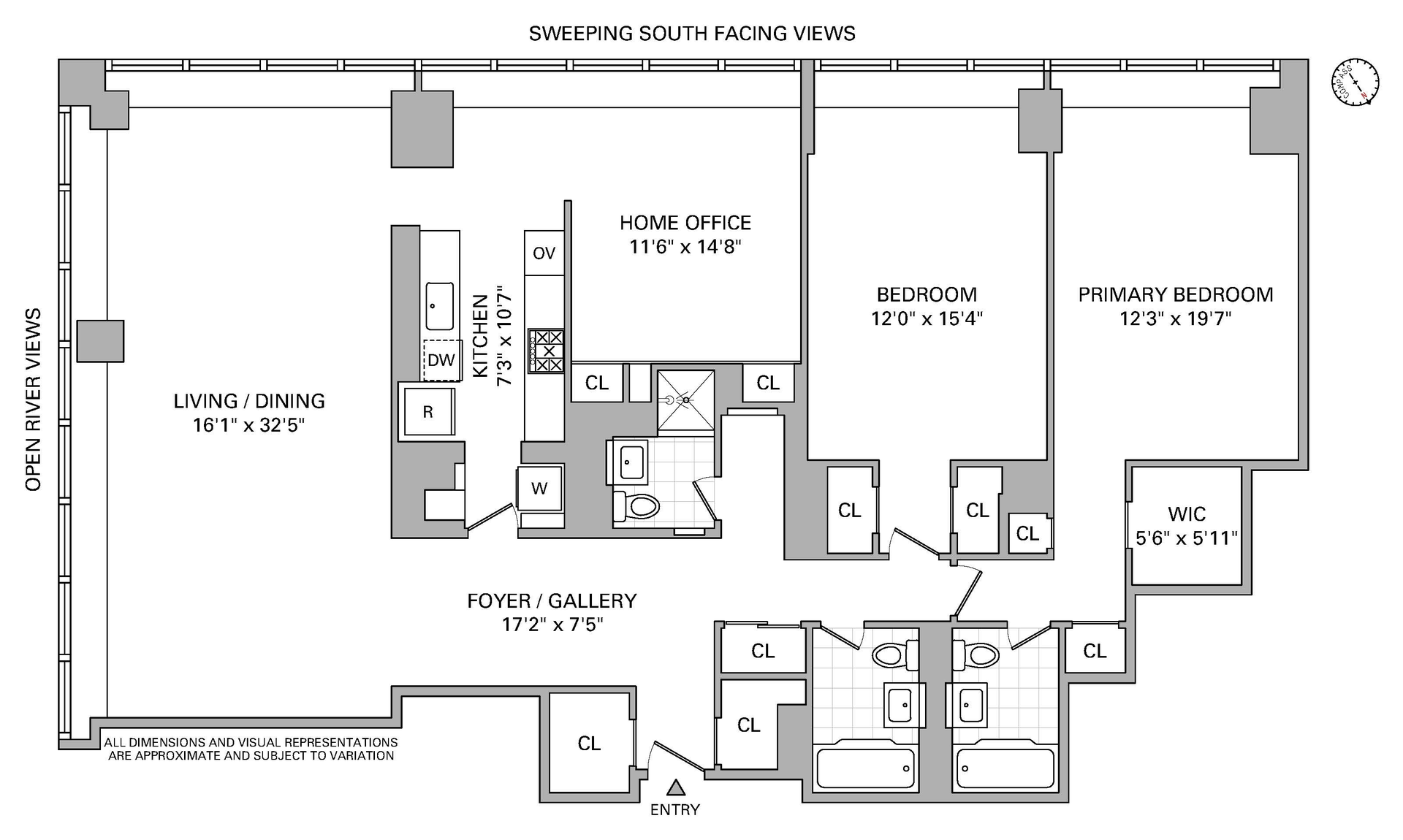 Step into history with this remarkable corner residence offering approximately 2,000 SF* of expansive living with walls of windows that frame unobstructed, sweeping views of the East River, Queens, Brooklyn, and Manhattan. This 2-bedroom (convertible to 3), 3-bathroom home combines scale, flexibility, and timeless charm- ready to be transformed into a modern dream home.