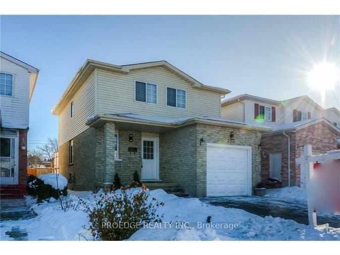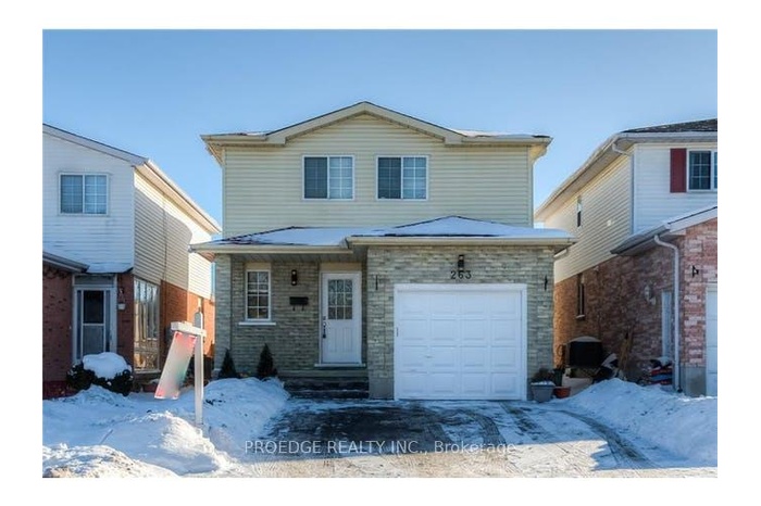 Welcome to 263 Bankside Drive, a stunning and fully updated home that's move-in ready! This spacious property features 3 bedrooms, 3 bathrooms, a finished basement, and a sunroom leading to a large 170-ft deep backyard with no rear neighbours perfect for relaxing or entertaining. Enjoy an open-concept main floor with a modern kitchen, dining area, and cozy living room with walk-out to the sunroom and deck. The upper level offers three generous bedrooms, including a master with walk-in closet and cheater ensuite. The finished basement boasts a bright rec room, 3-piece bathroom, and a cold room. ***Extras include: new flooring, A/C, large front porch, and double driveway. Recent improvements/upgrades on Laundry, Roof, Furnace, Blinds, Fence One Side, Water Softener!*** *Located near the expressway, shopping, community center, and more! *Ready for occupancy in December 2025 don't miss this fantastic rental opportunity!