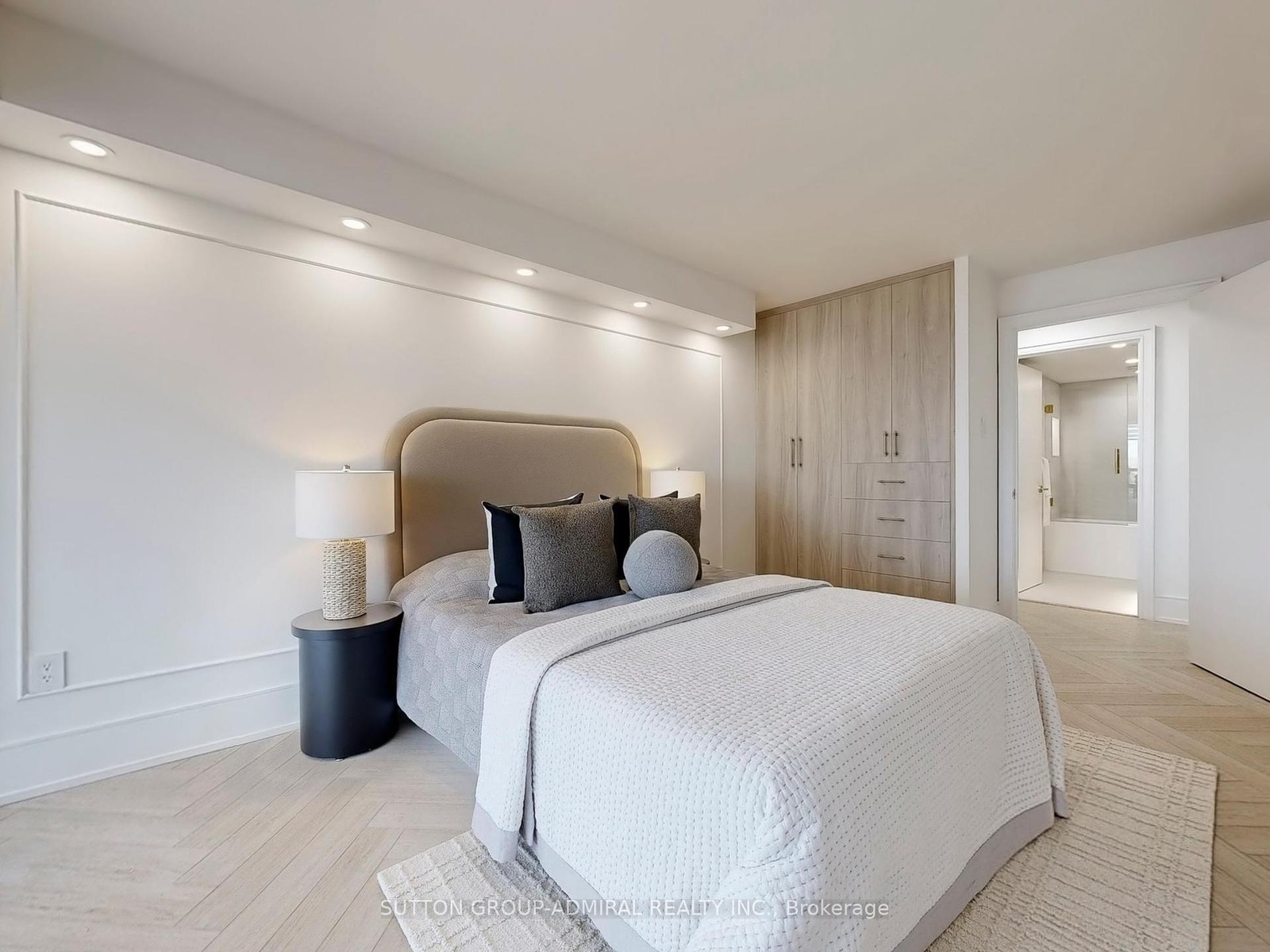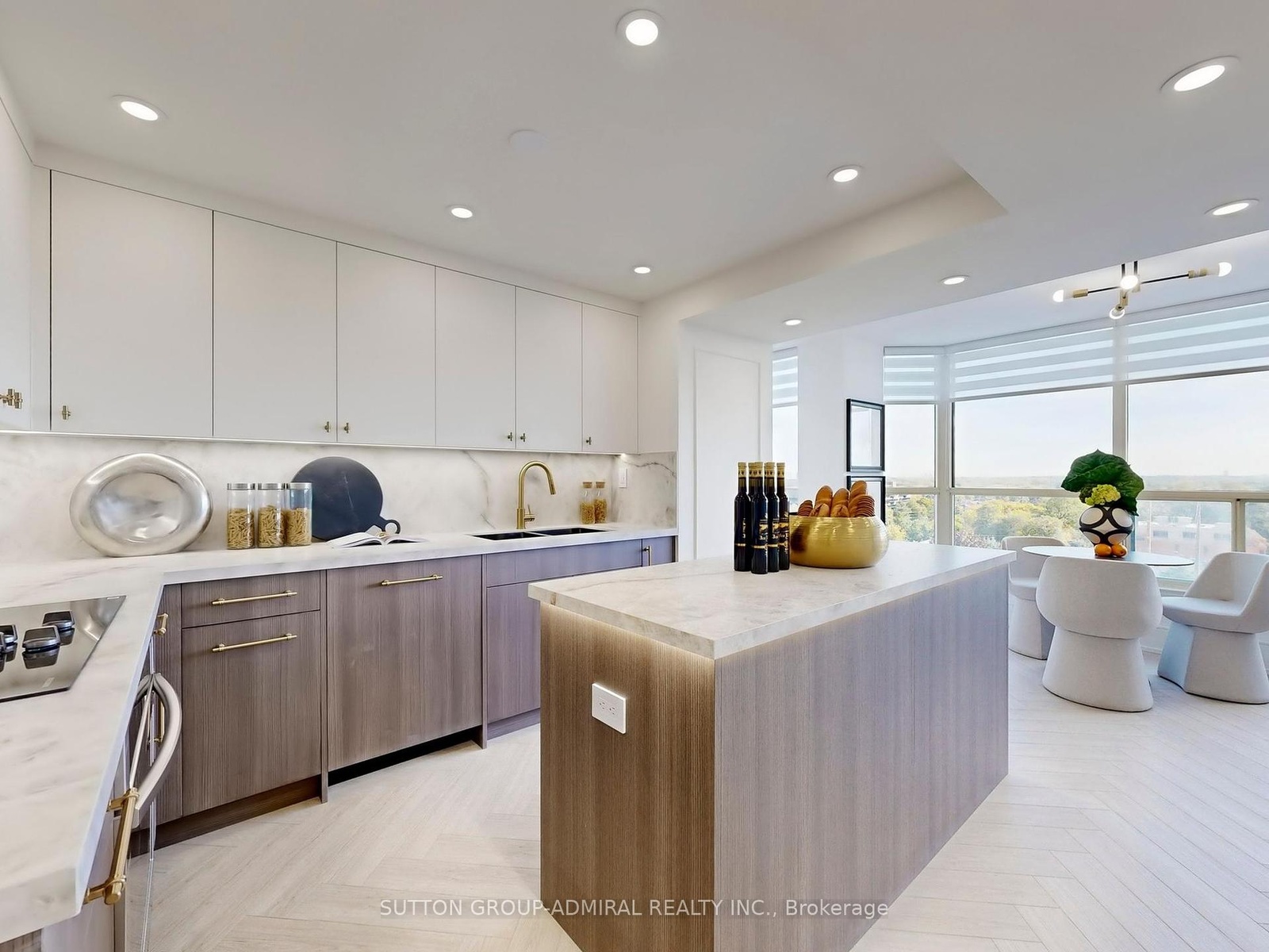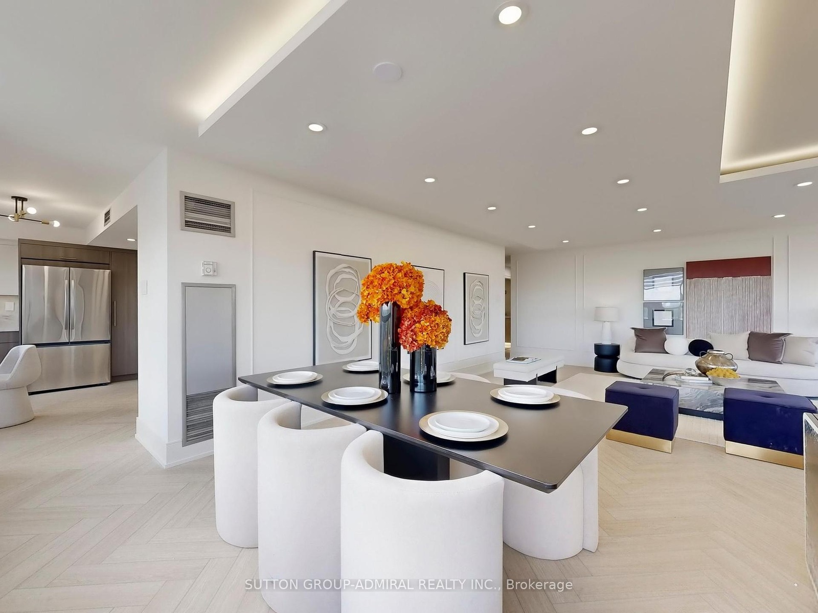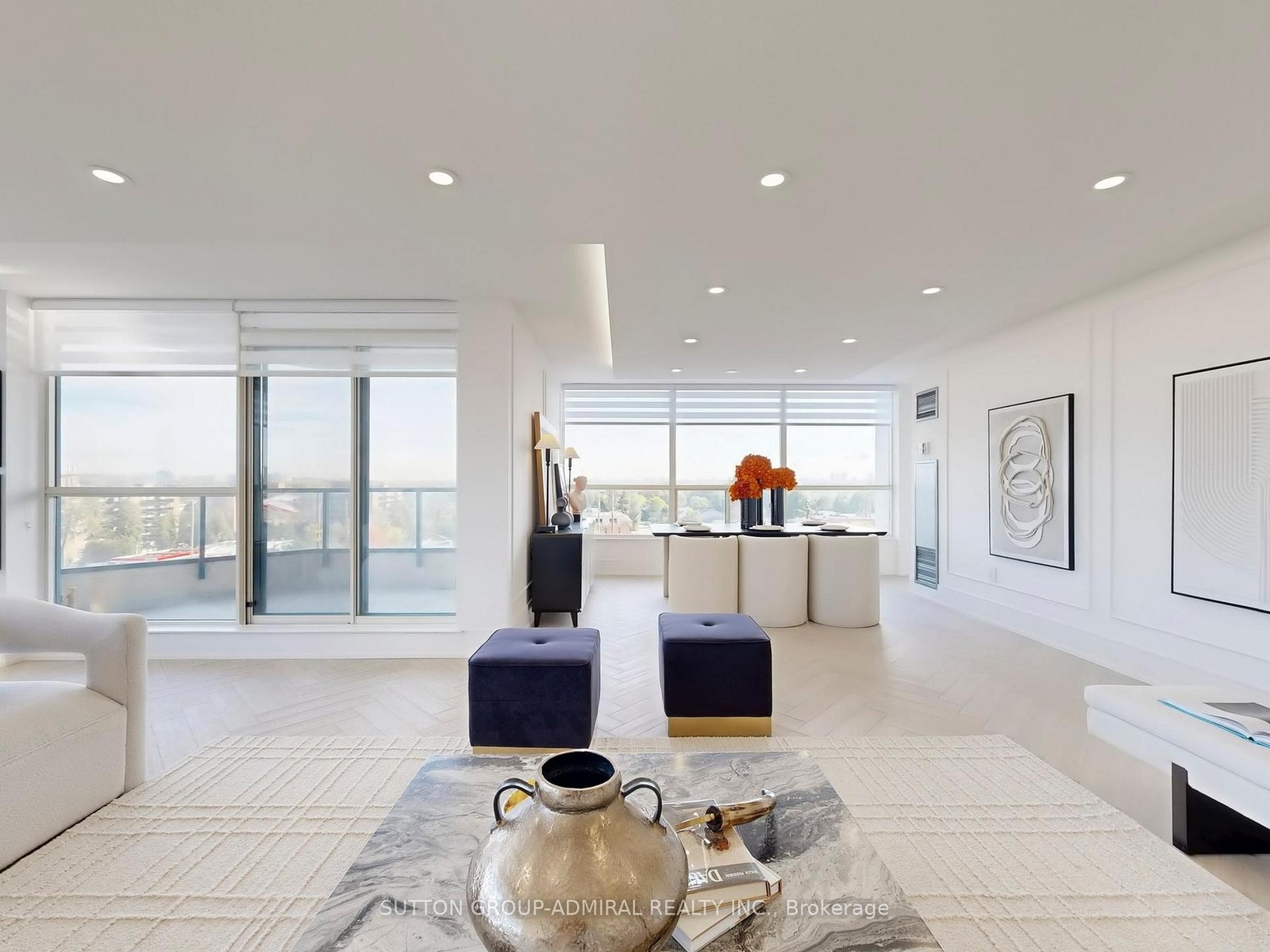 Exceptional Corner Unit Fully Renovated with Premium Finishes Discover this rare opportunity to own a stunning 1,855 sq ft corner unit that combines luxury living with thoughtful design. Key Features Spacious Layout: 2+1 bedrooms, 2 full bathrooms. Prime Location, Corner unit with unobstructed views and abundant natural light. Premium Finishes, Elegant herringbone vinyl flooring, sophisticated wood paneling, and Italian porcelain tile in washrooms. Open-Concept Oversized living and dining area perfect for entertaining Gourmet Kitchen, Modern design featuring porcelain countertops, matching backsplash, and brand-new stainless steel appliances. Master Suite, Generously sized with custom walk-in closet and spa-inspired ensuite bathroom, Built-in closets and additional locker room for maximum organization. Design Elements Large windows with stylish zebra blinds maximize natural light Smooth illuminated floating ceilings with pot lighting create elegant ambiance, Private balcony for outdoor relaxation, Every detail carefully curated with top-quality materials and finishes, Building Amenities Concierge Services: 24-hour front desk support, Recreation, Indoor pool, spa facilities, and fully equipped fitness center, Dedicated party and game rooms for residents, Newly renovated lobby and elevator systems Convenience: 2 parking spaces included Why This Property Stands Out This meticulously renovated home represents a rare find in today's market combining premium location, luxury finishes, and exceptional building amenities. The thoughtful design maximizes both space and natural light, creating an inviting atmosphere perfect for modern living. Perfectly located with top-rated schools, parks, shopping, and community amenities nearby. Schedule your private viewing today to experience this exceptional property firsthand.